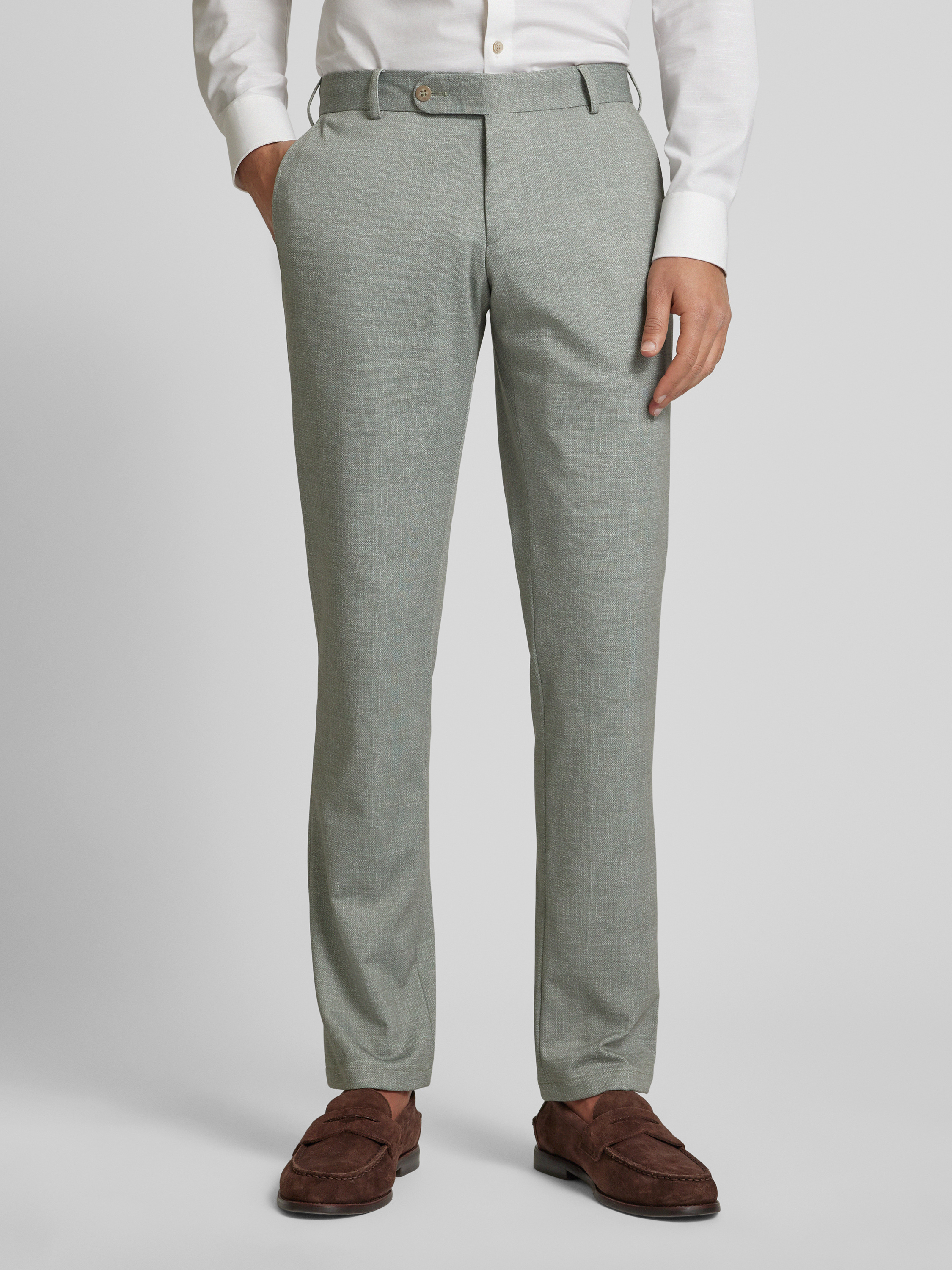 Spodnie materiałowe z wpuszczanymi kieszeniami w stylu francuskim - jasnozielony
