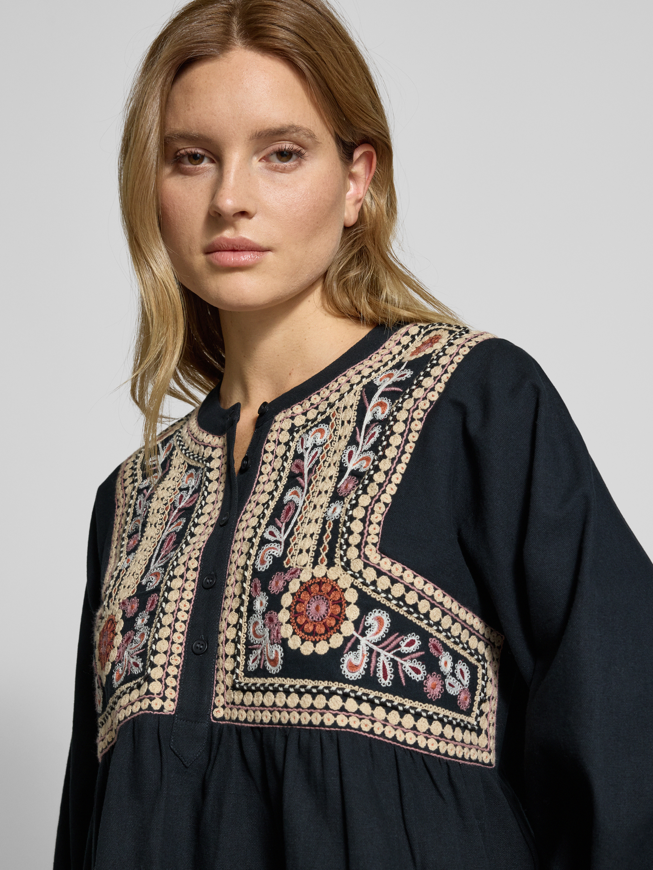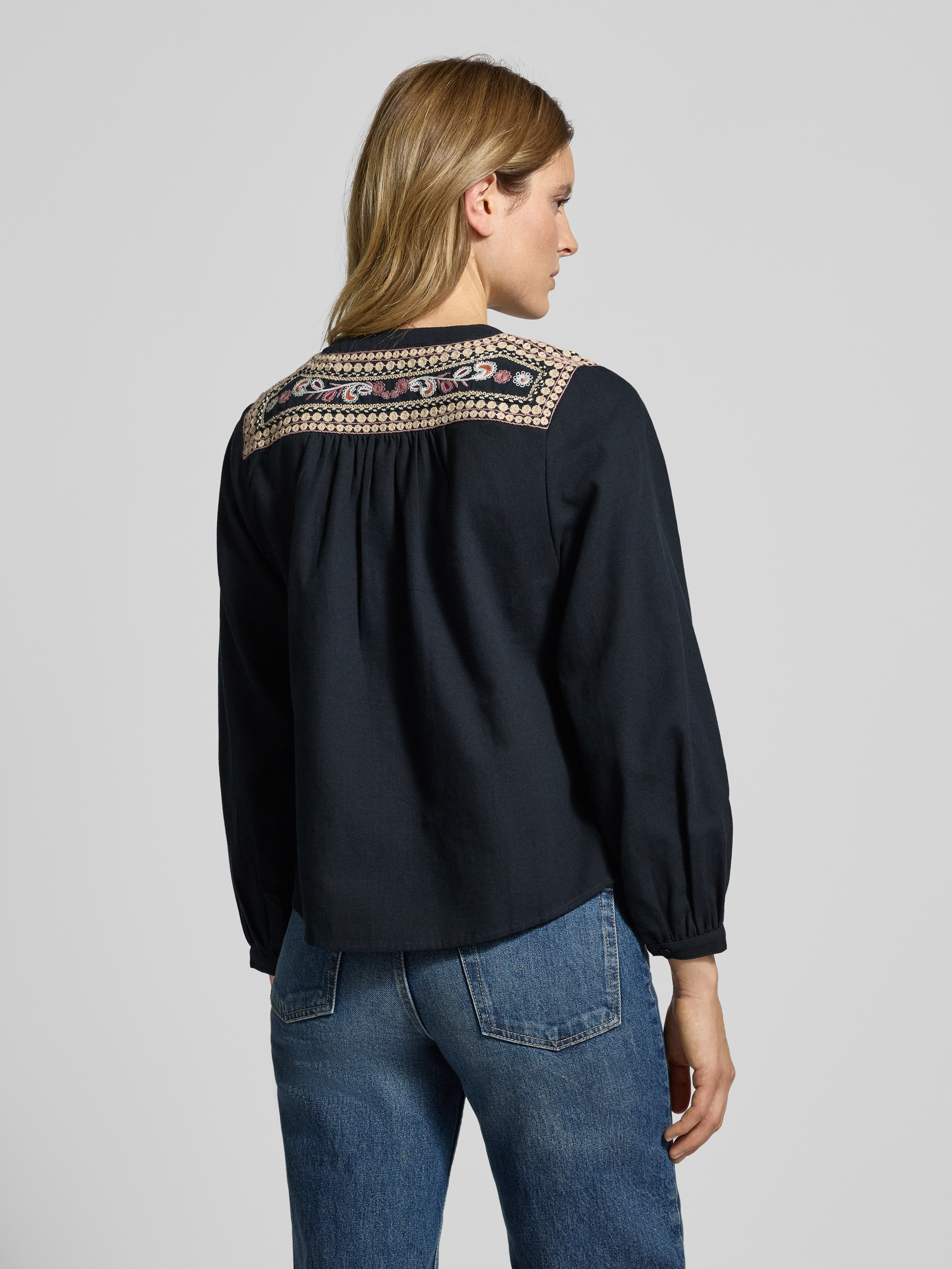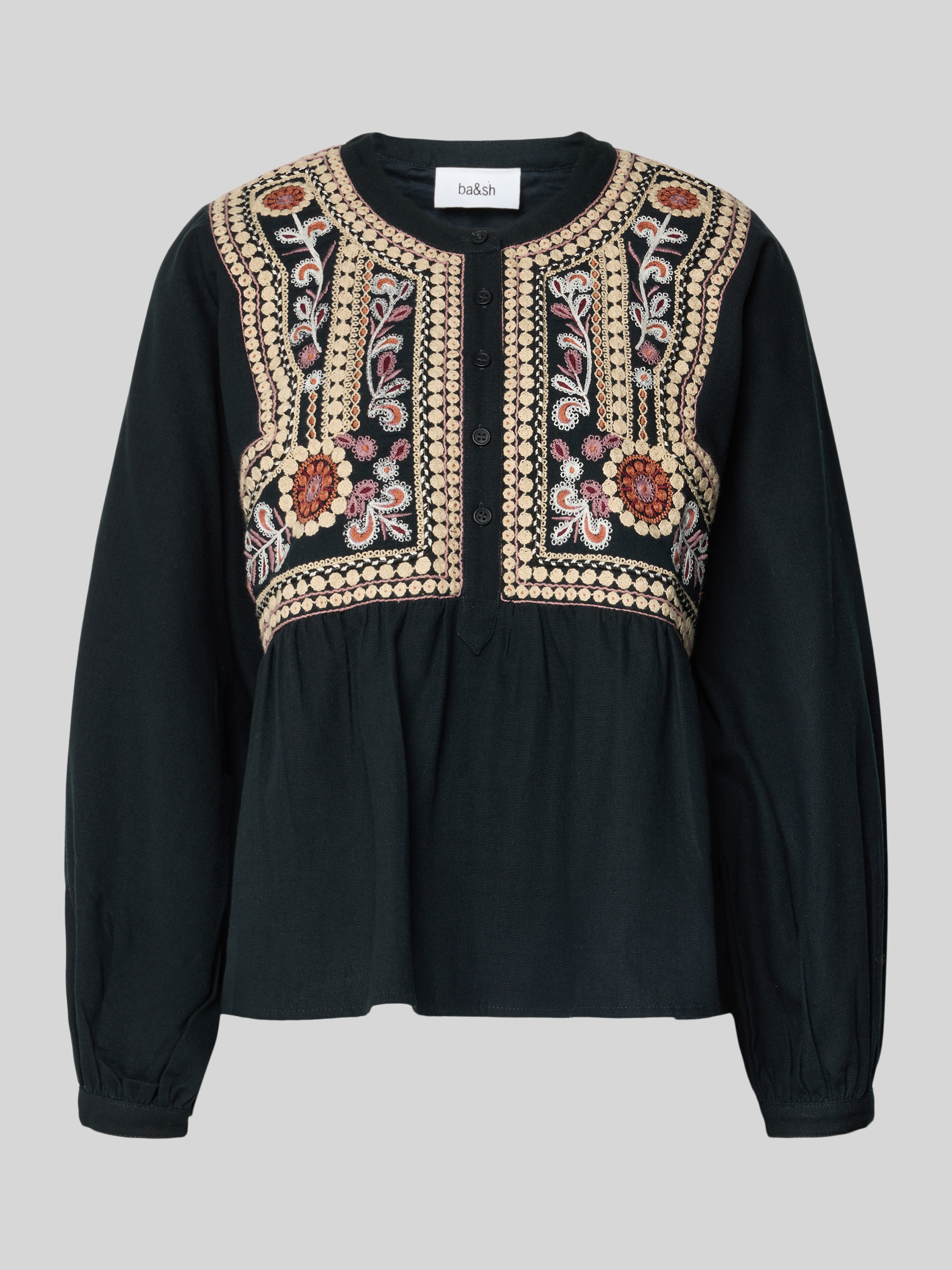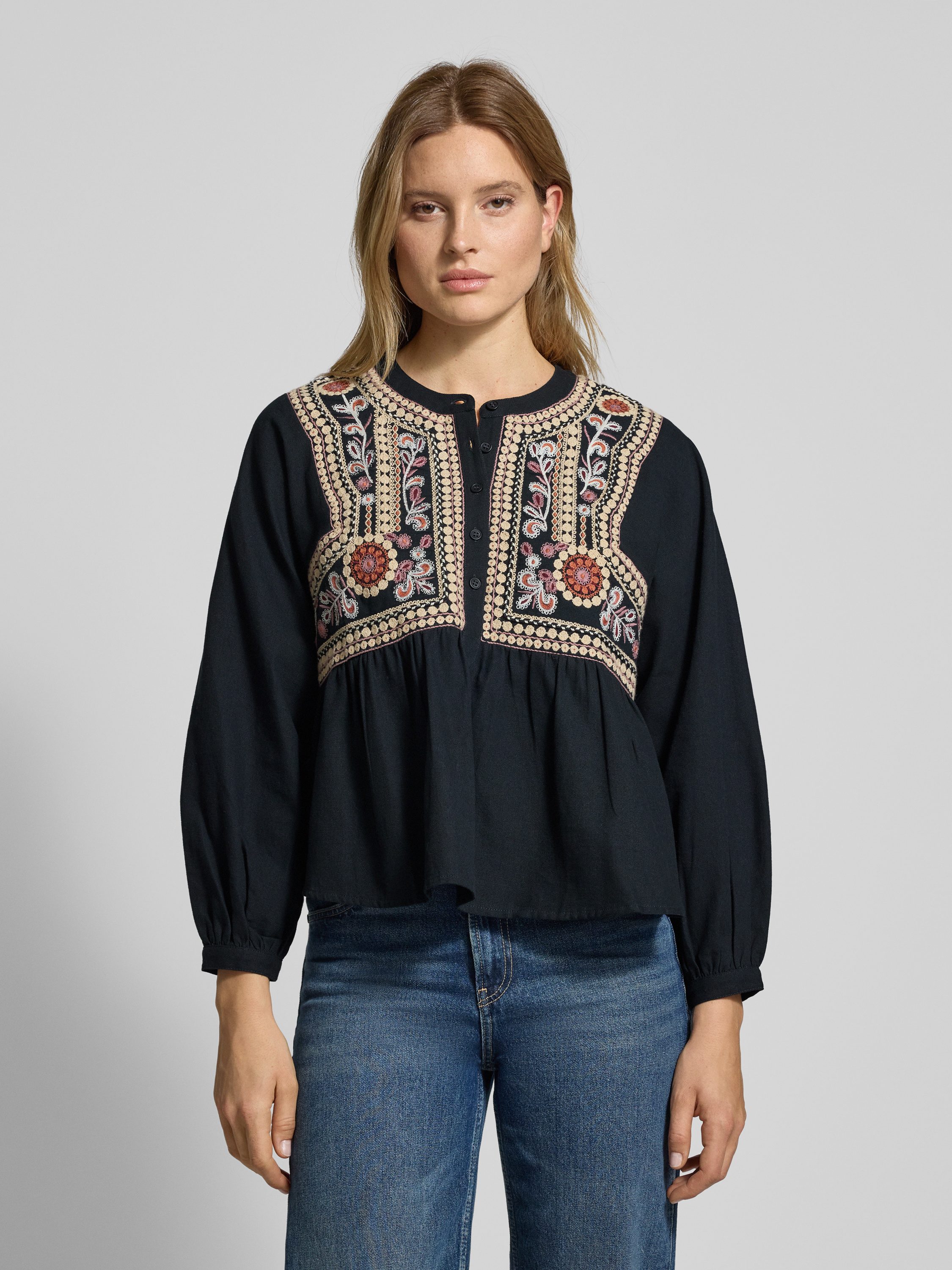 Bluzka o kroju regular fit z kwiatowym haftem model ‘Alec’ -