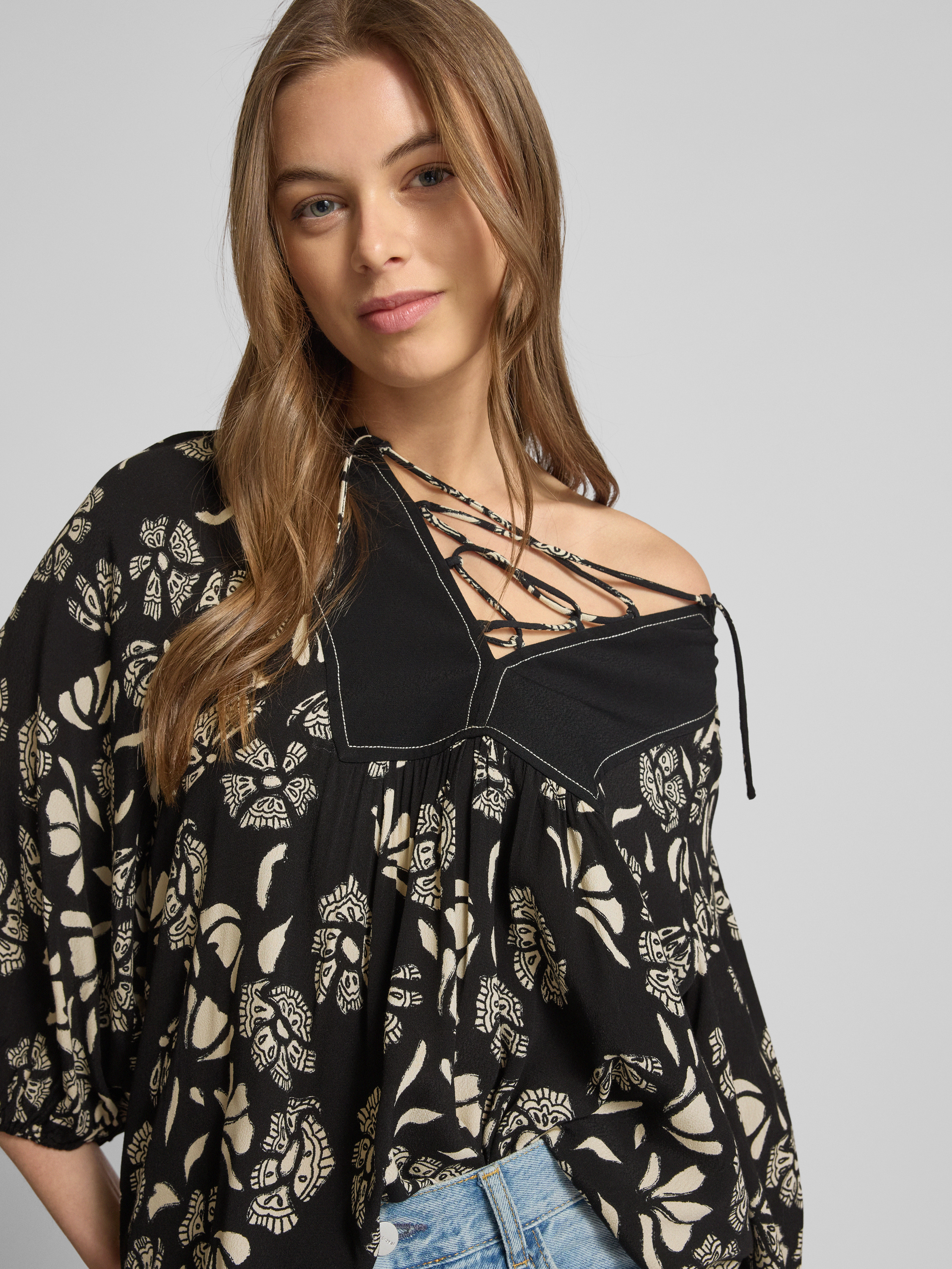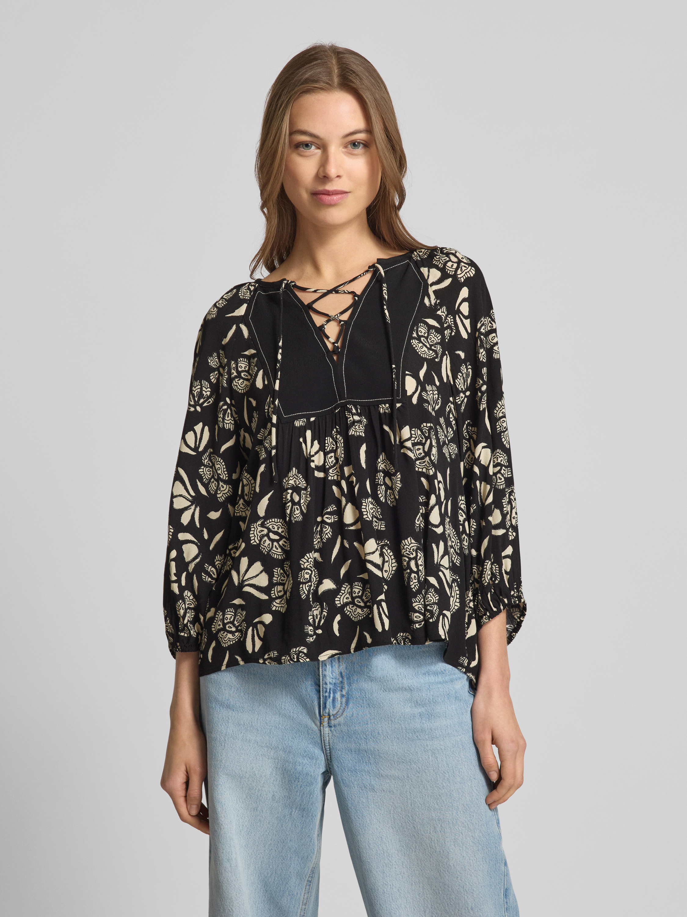 Bluzka o kroju relaxed fit z rękawem o dł. 3/4 model ‘AURA’ - czarny