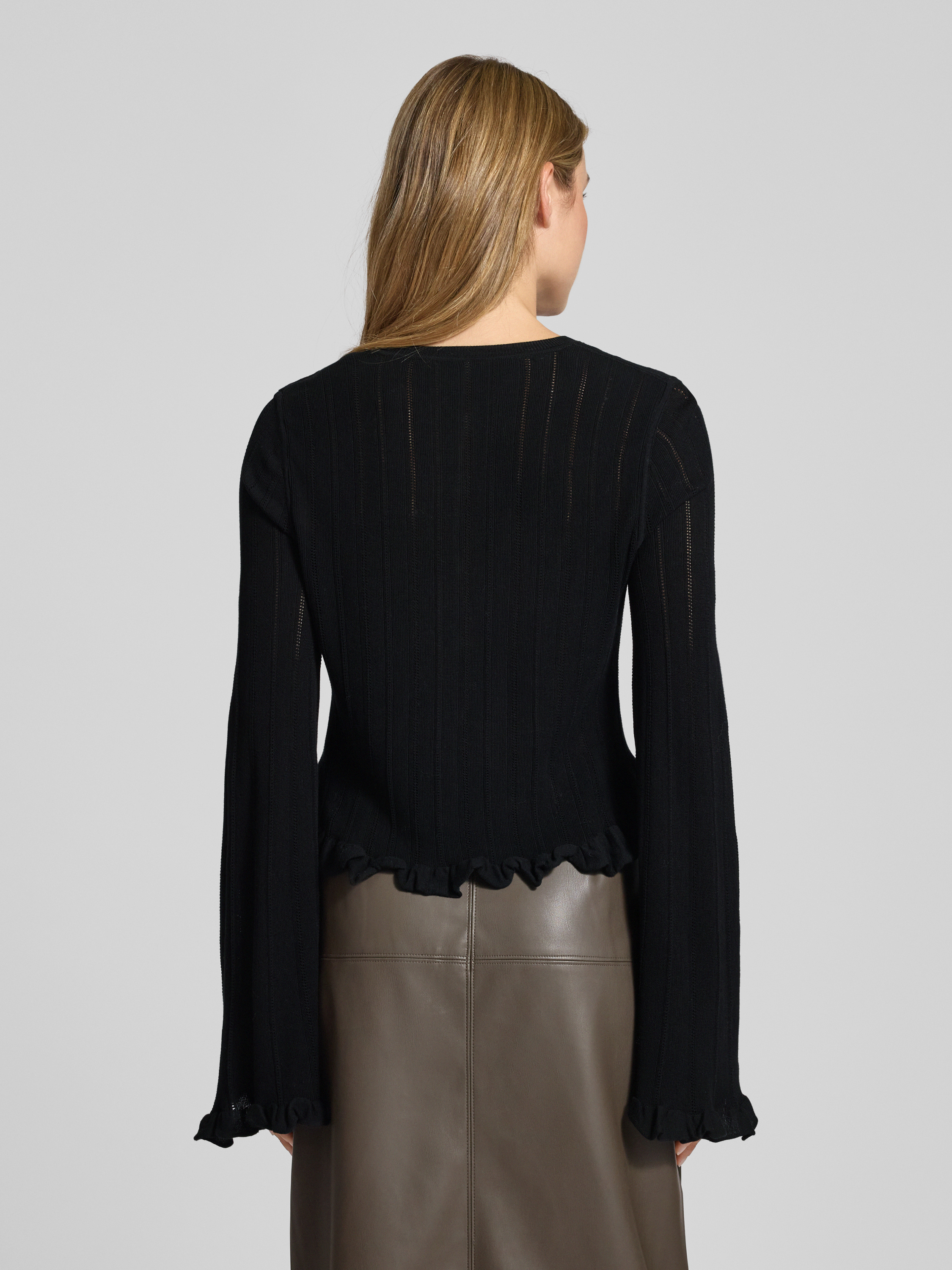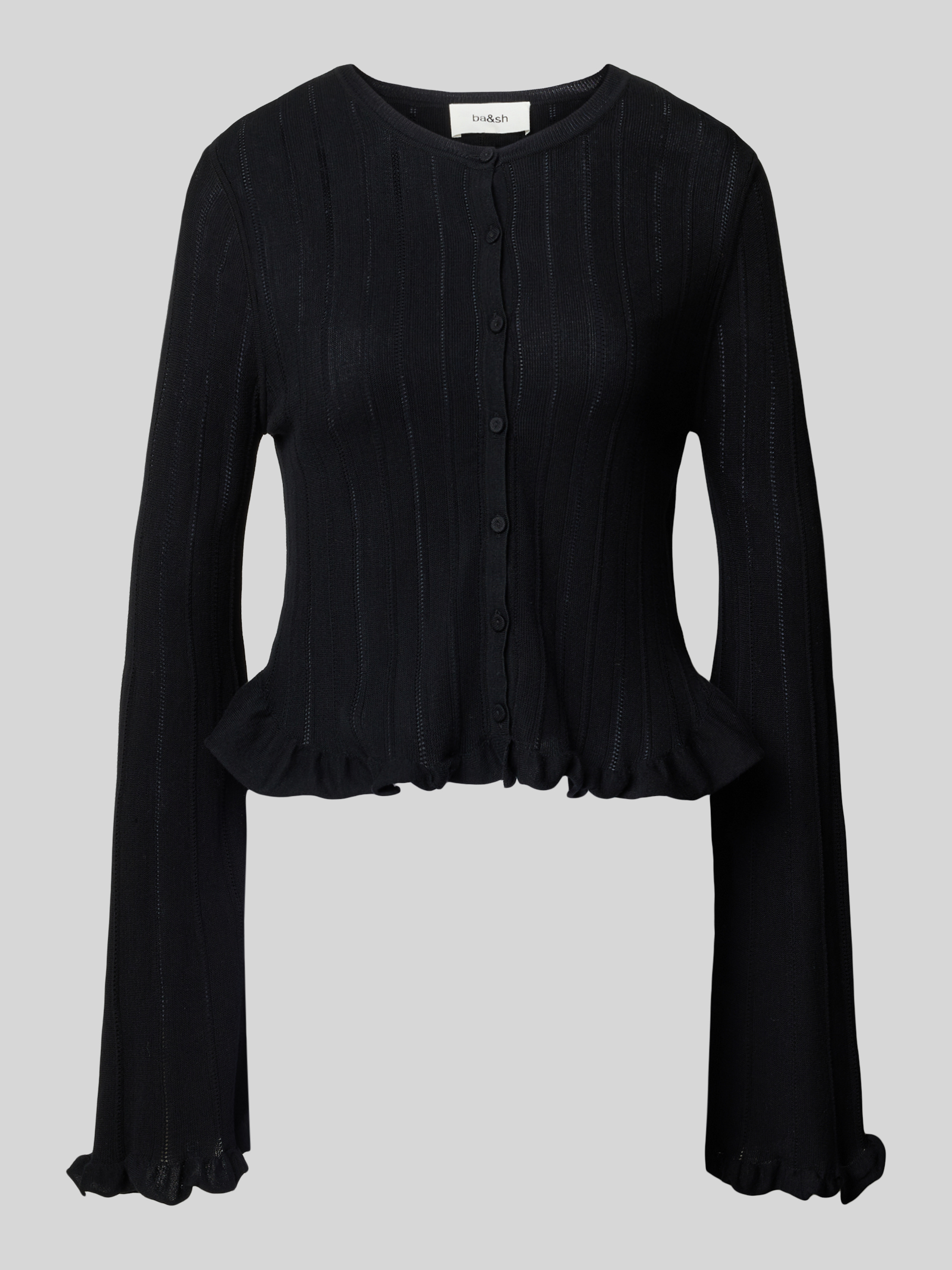 Kurtka z dzianiny o kroju slim fit z ażurowym wzorem model ‘Vitis’ - czarny