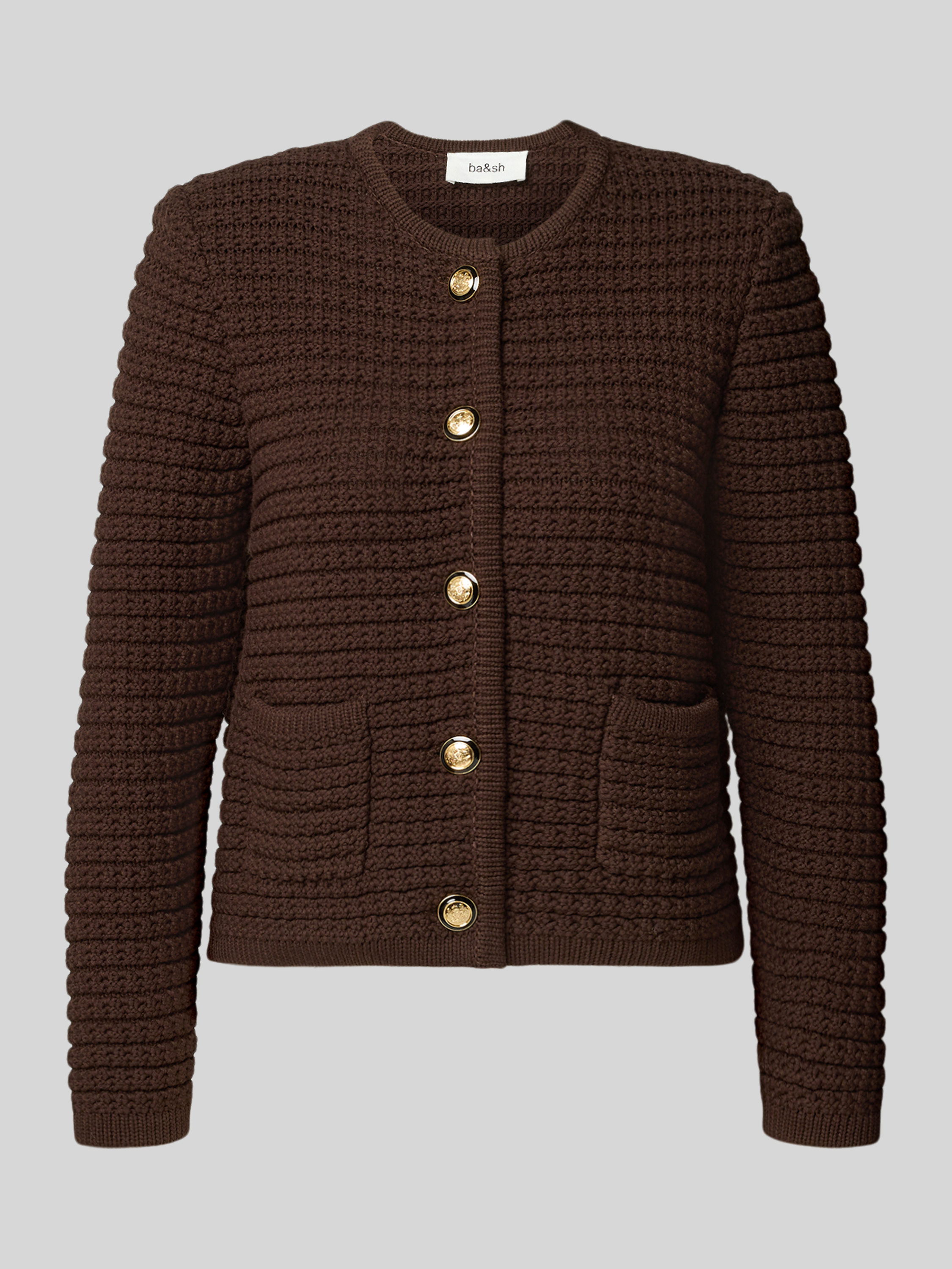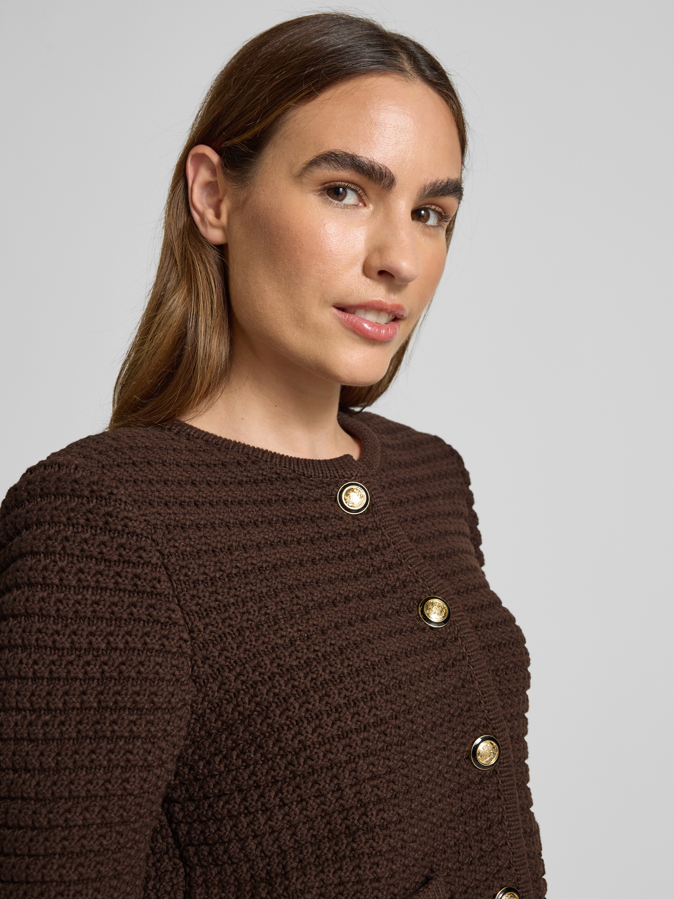 Kurtka z dzianiny z wpuszczanymi kieszeniami model ‘GASPARD’ - czekoladowy