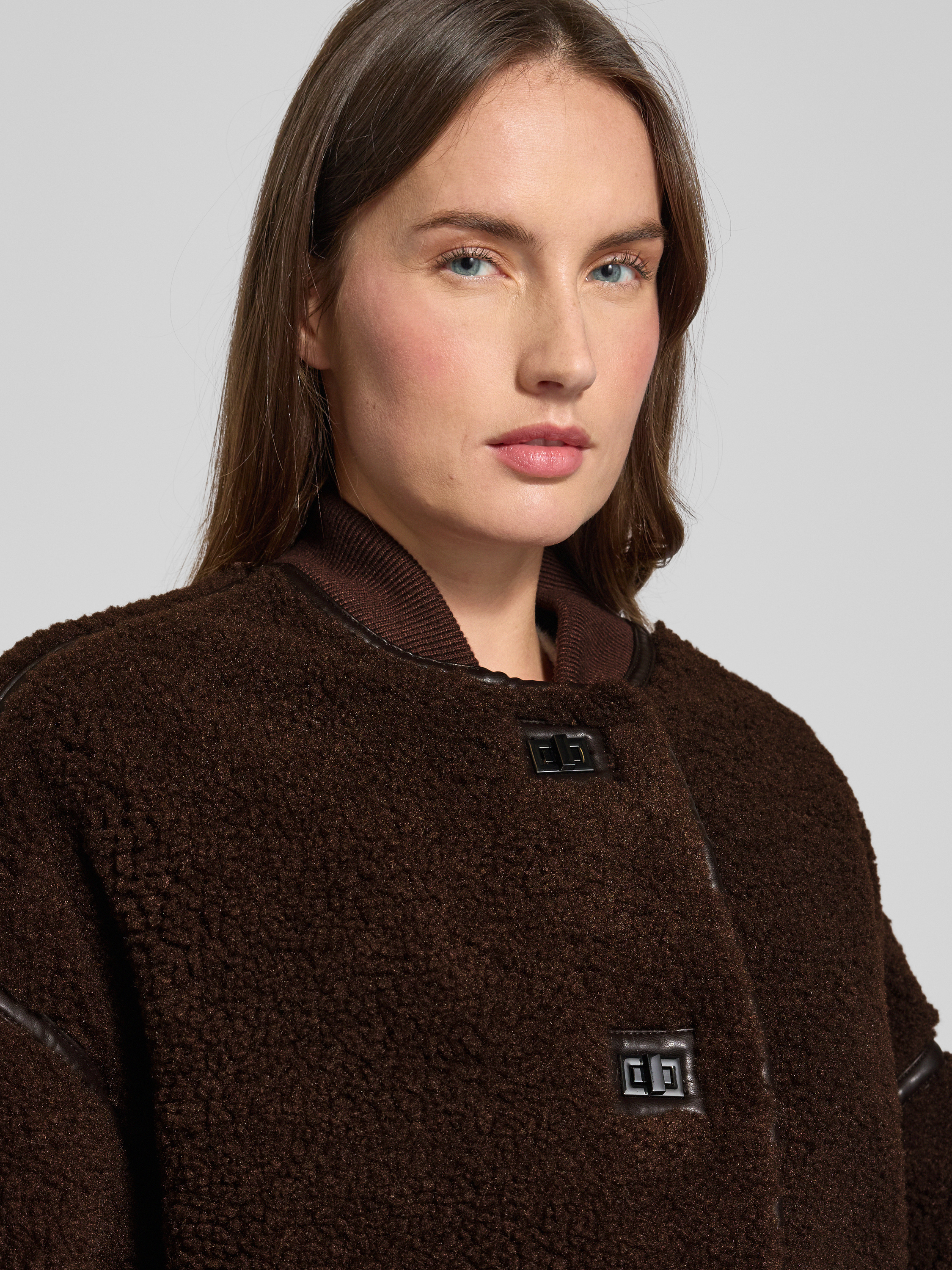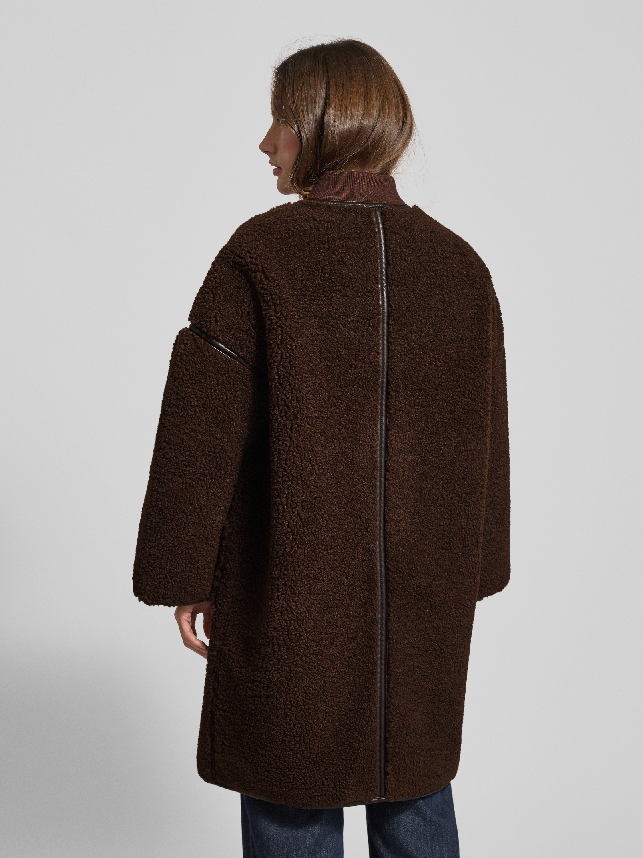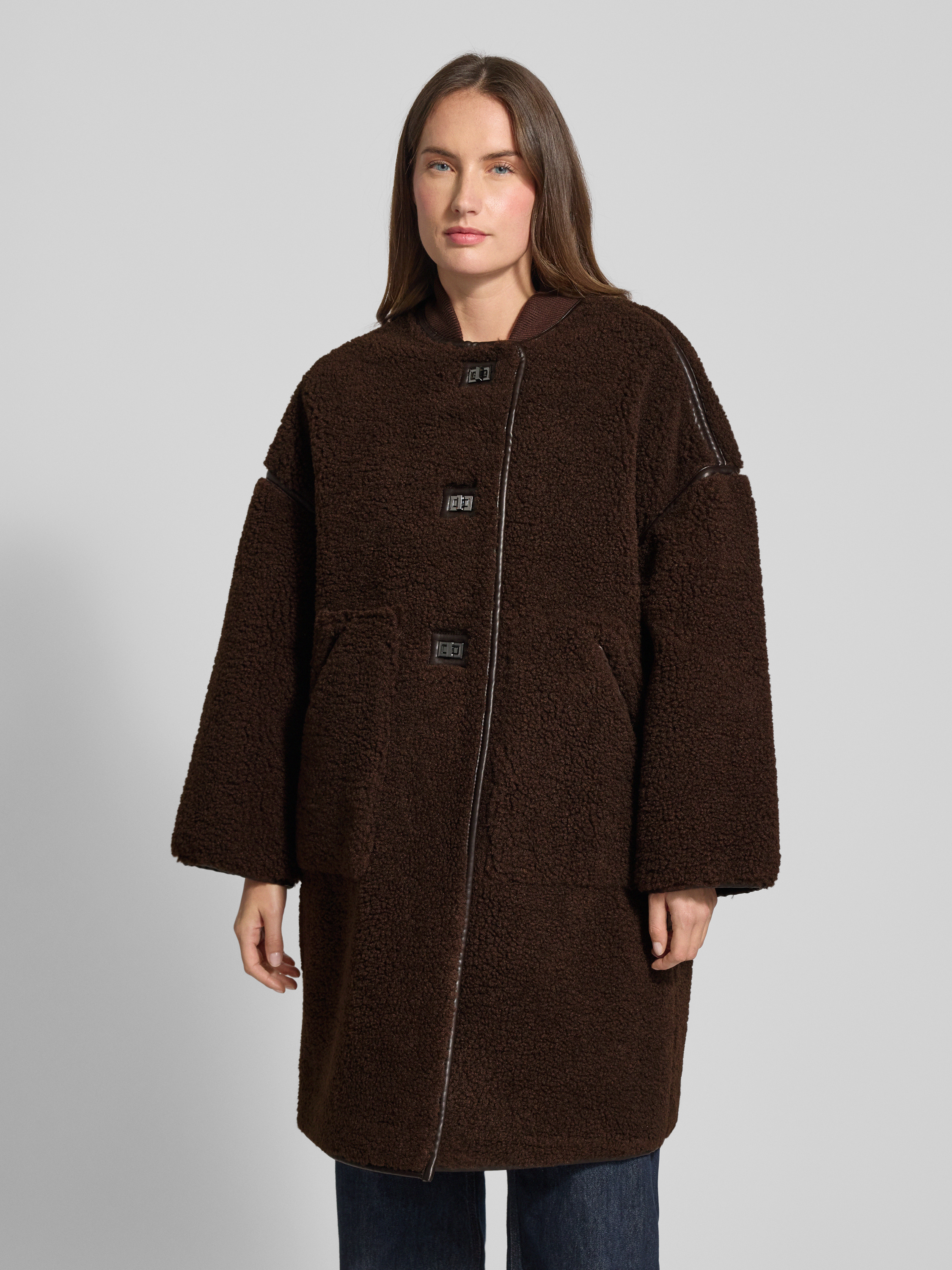 Płaszcz o kroju relaxed fit z futerka model ‘Millie’ - ciemnobrązowy