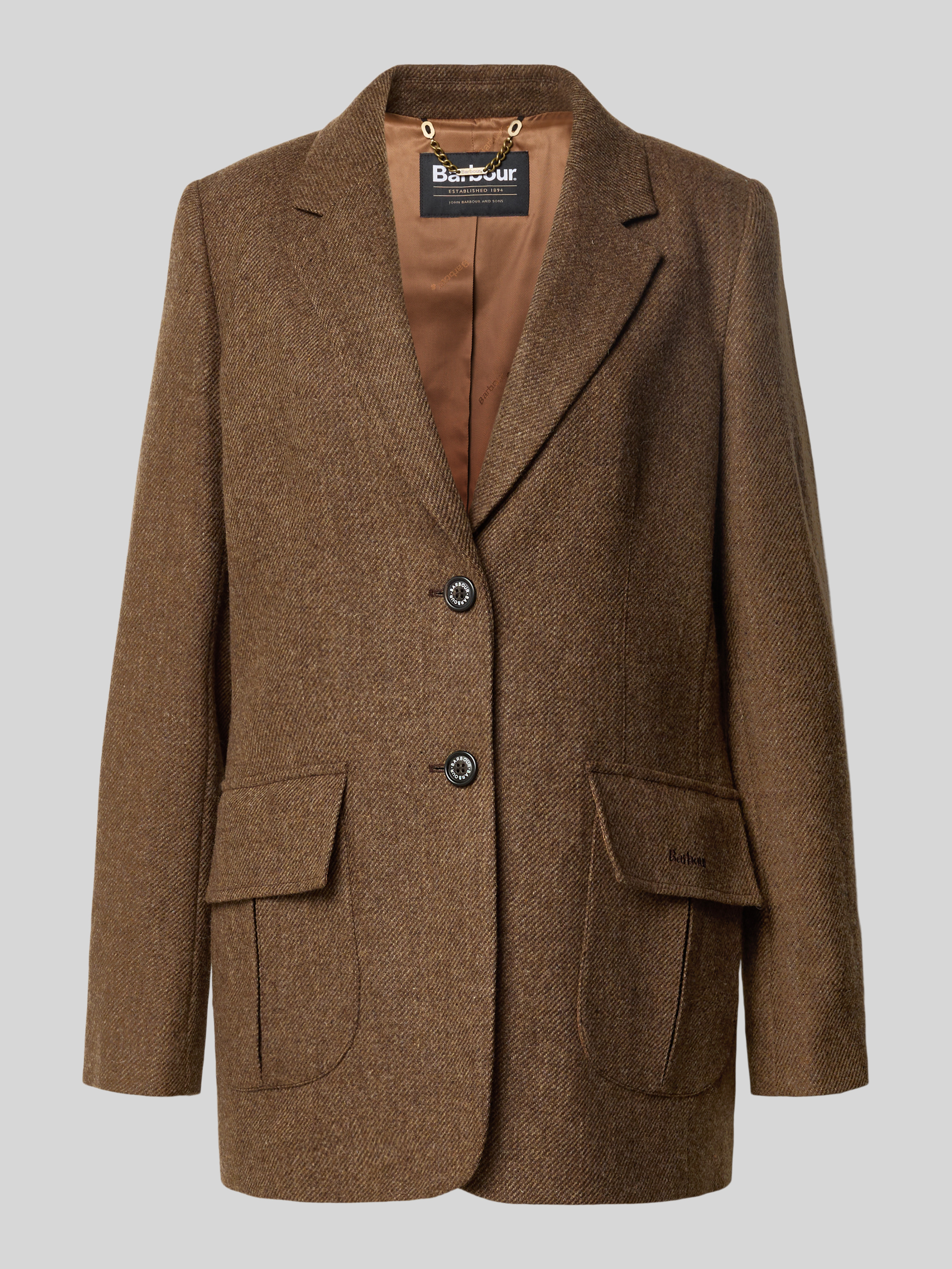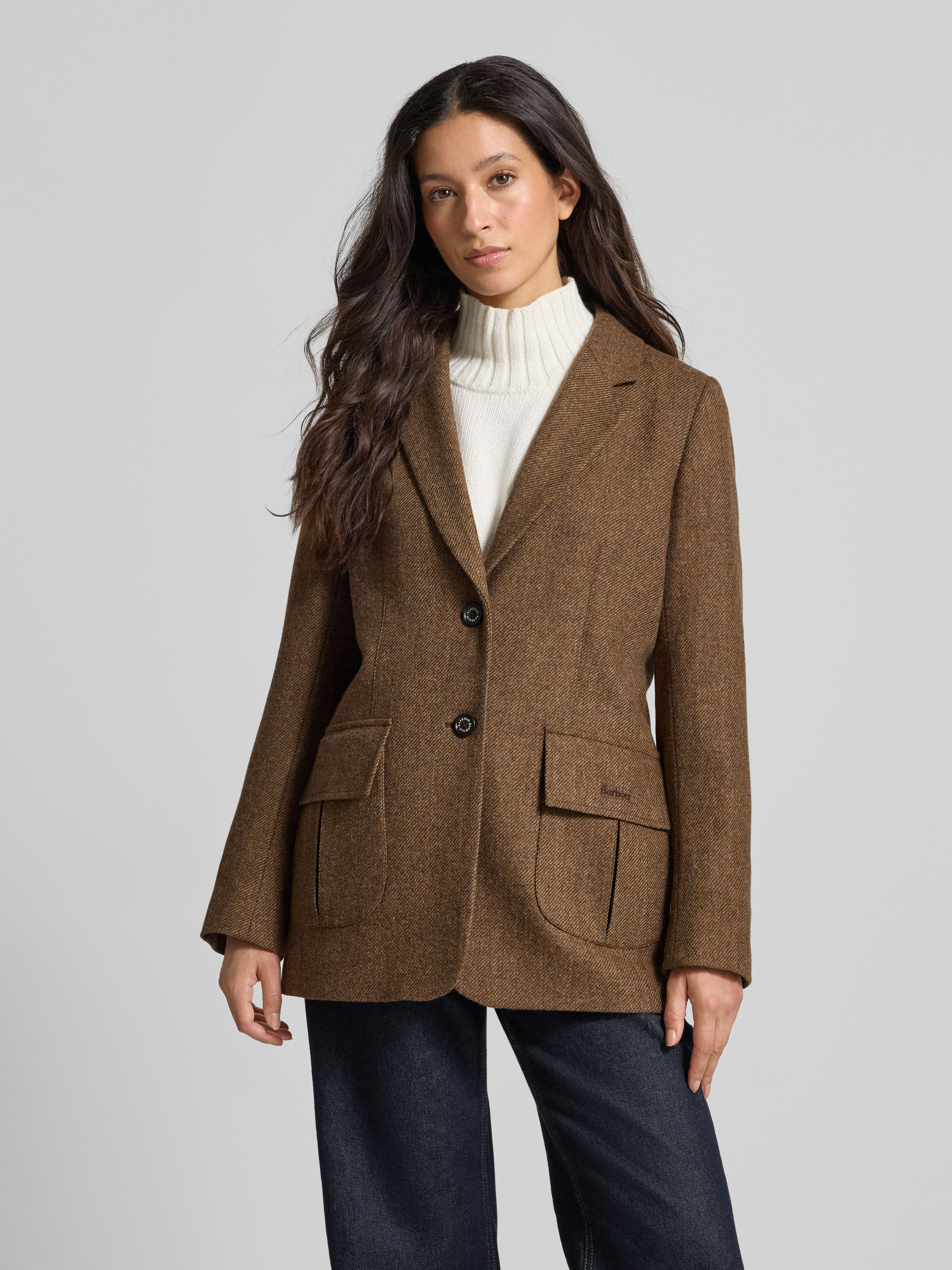 Długi żakiet o kroju shaped fit z czystej wełny model ‘ELM’ - koniakowy