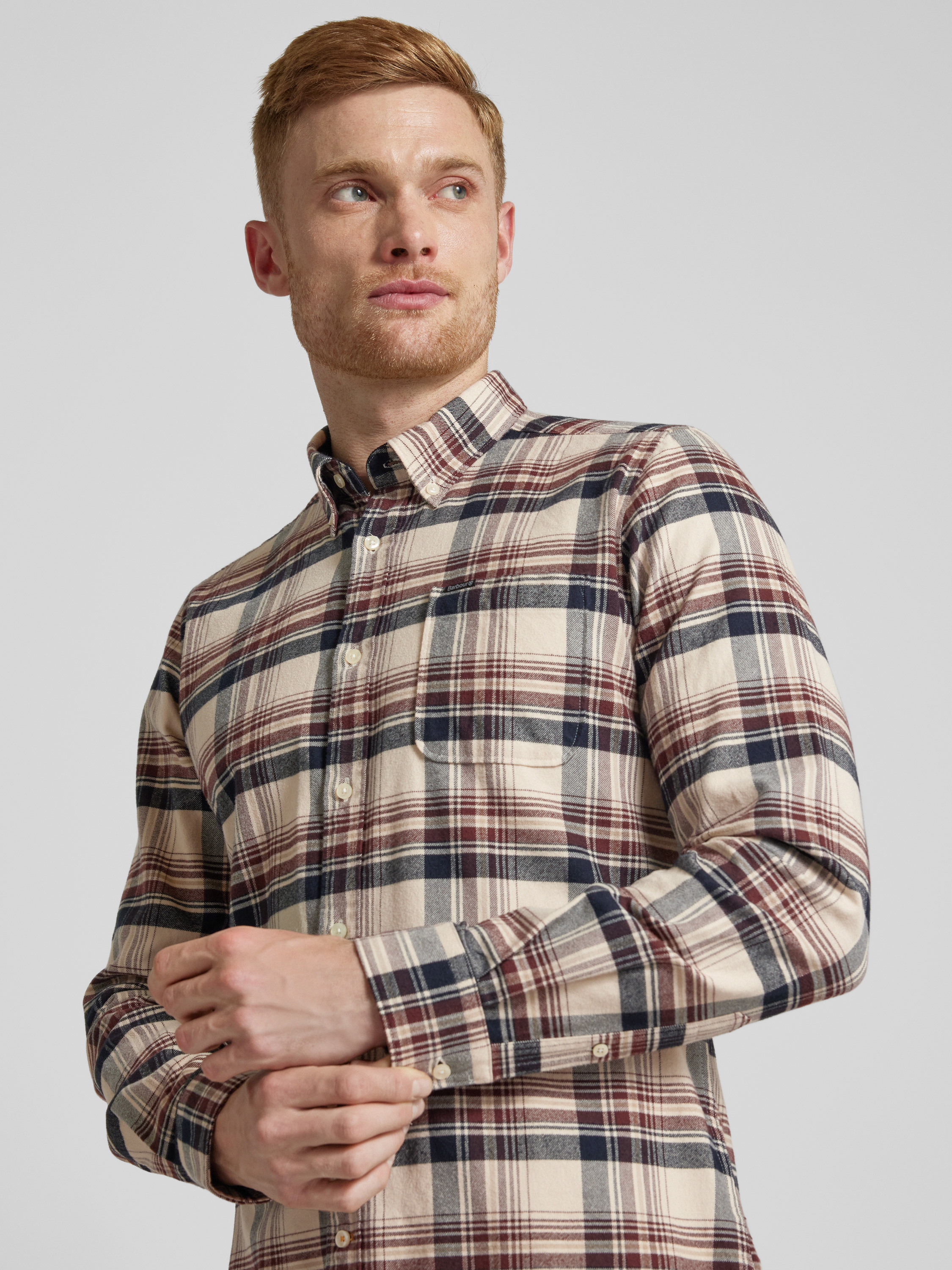 Koszula casualowa o kroju tailored fit z kołnierzykiem typu button down - piaskowy