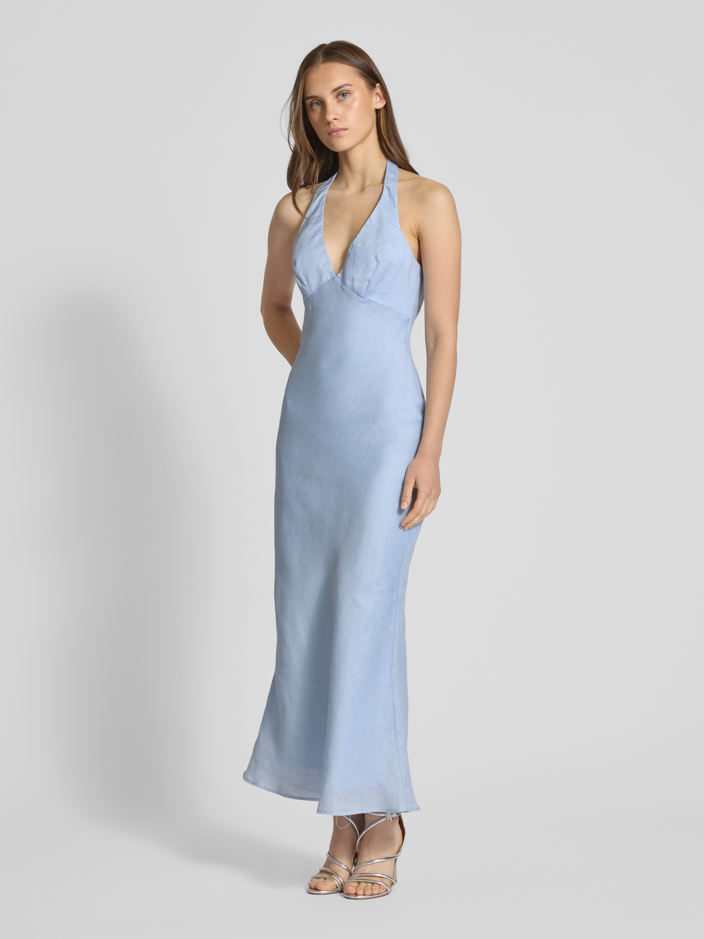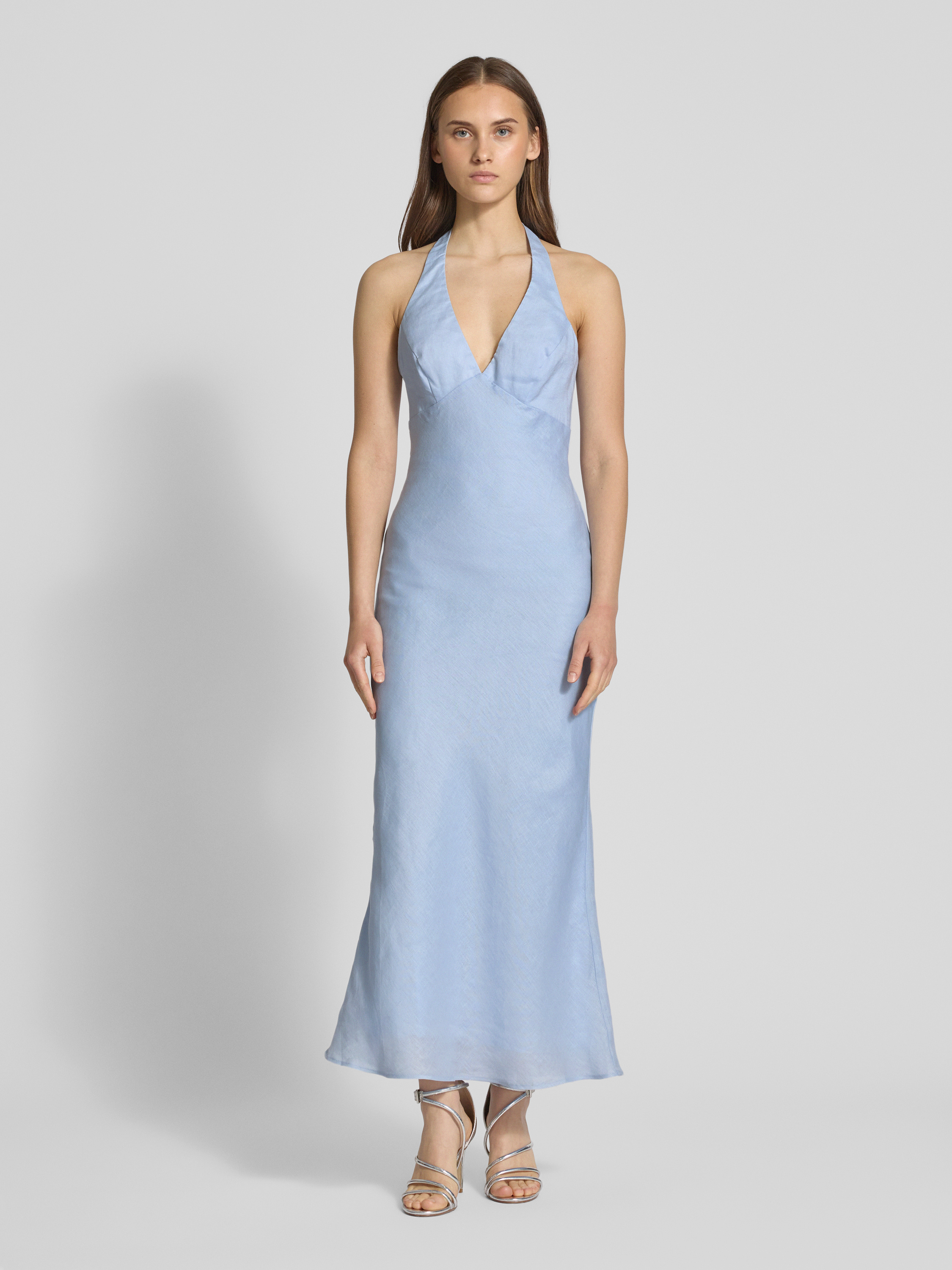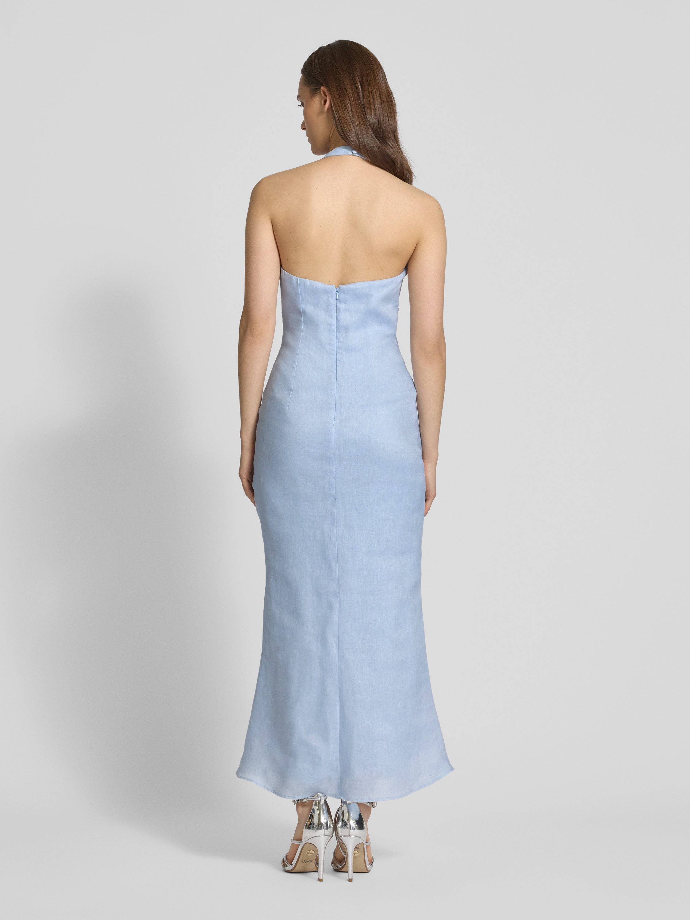 Sukienka koktajlowa z wiązaniem na szyi model ‘PAOLA’ - jasnoniebieski