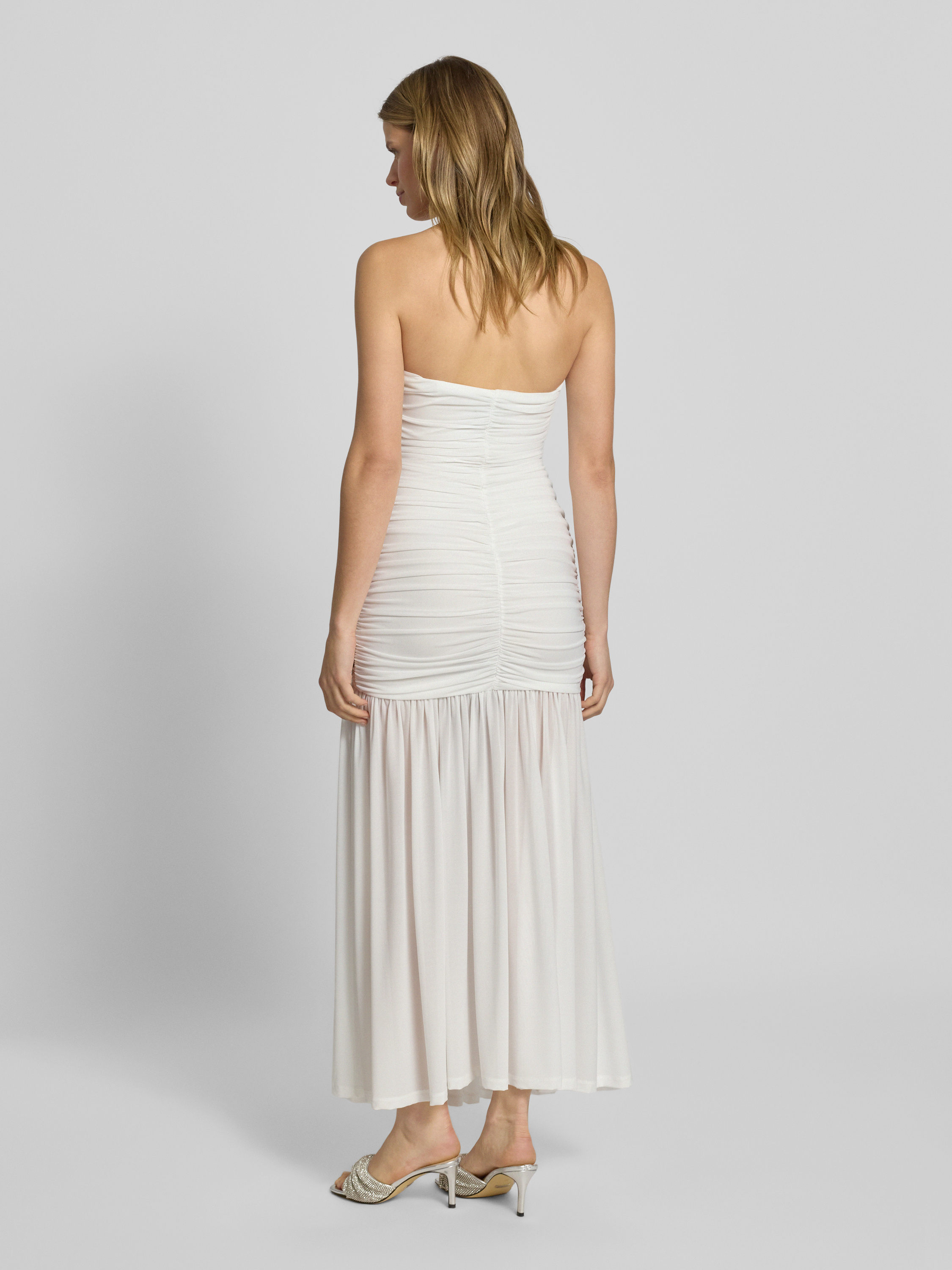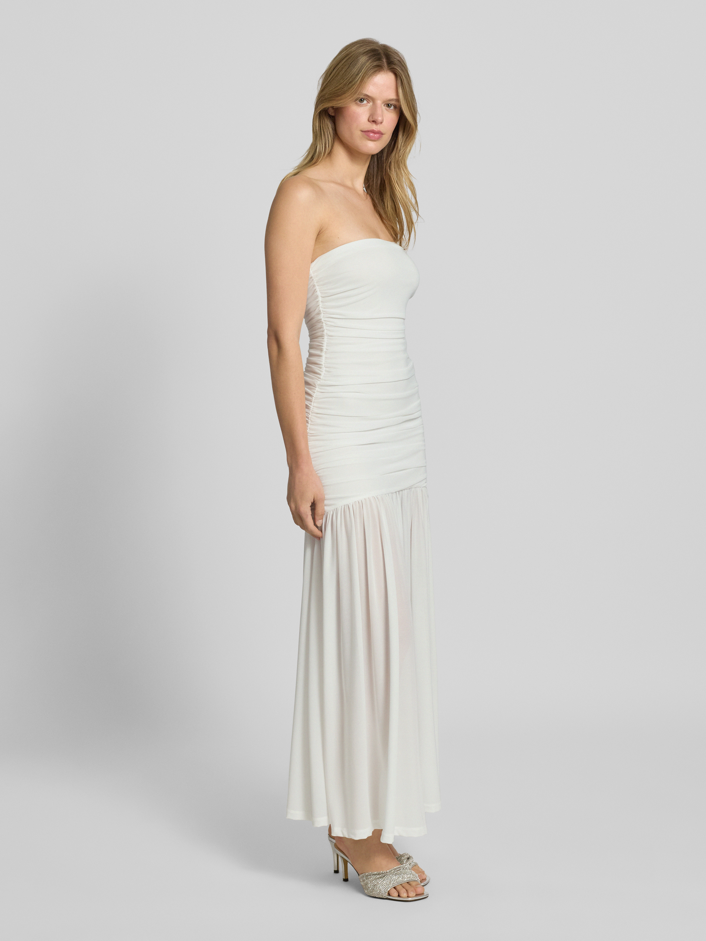 Sukienka wieczorowa z marszczeniami model ‘SOLANA’ - złamany biały