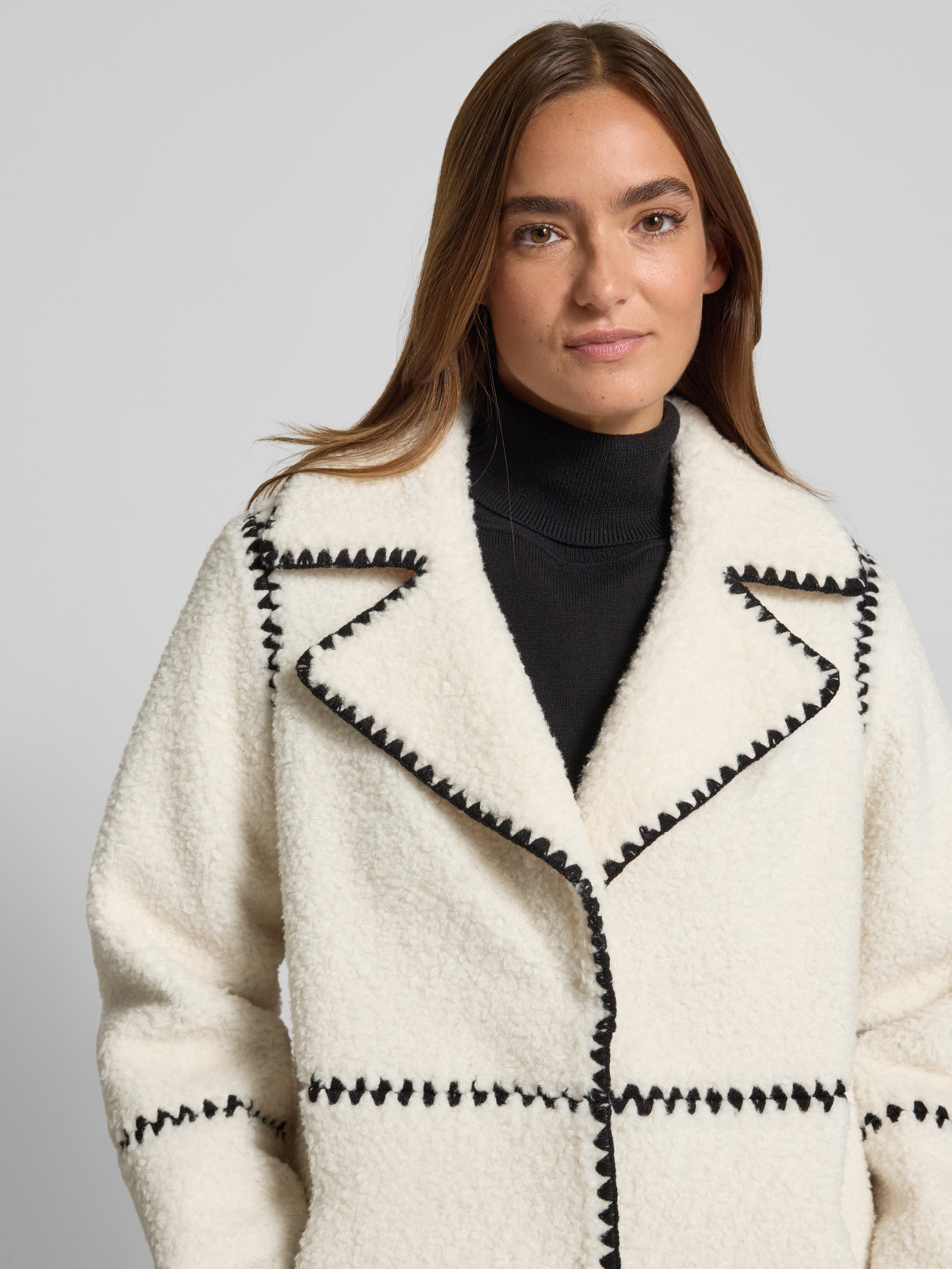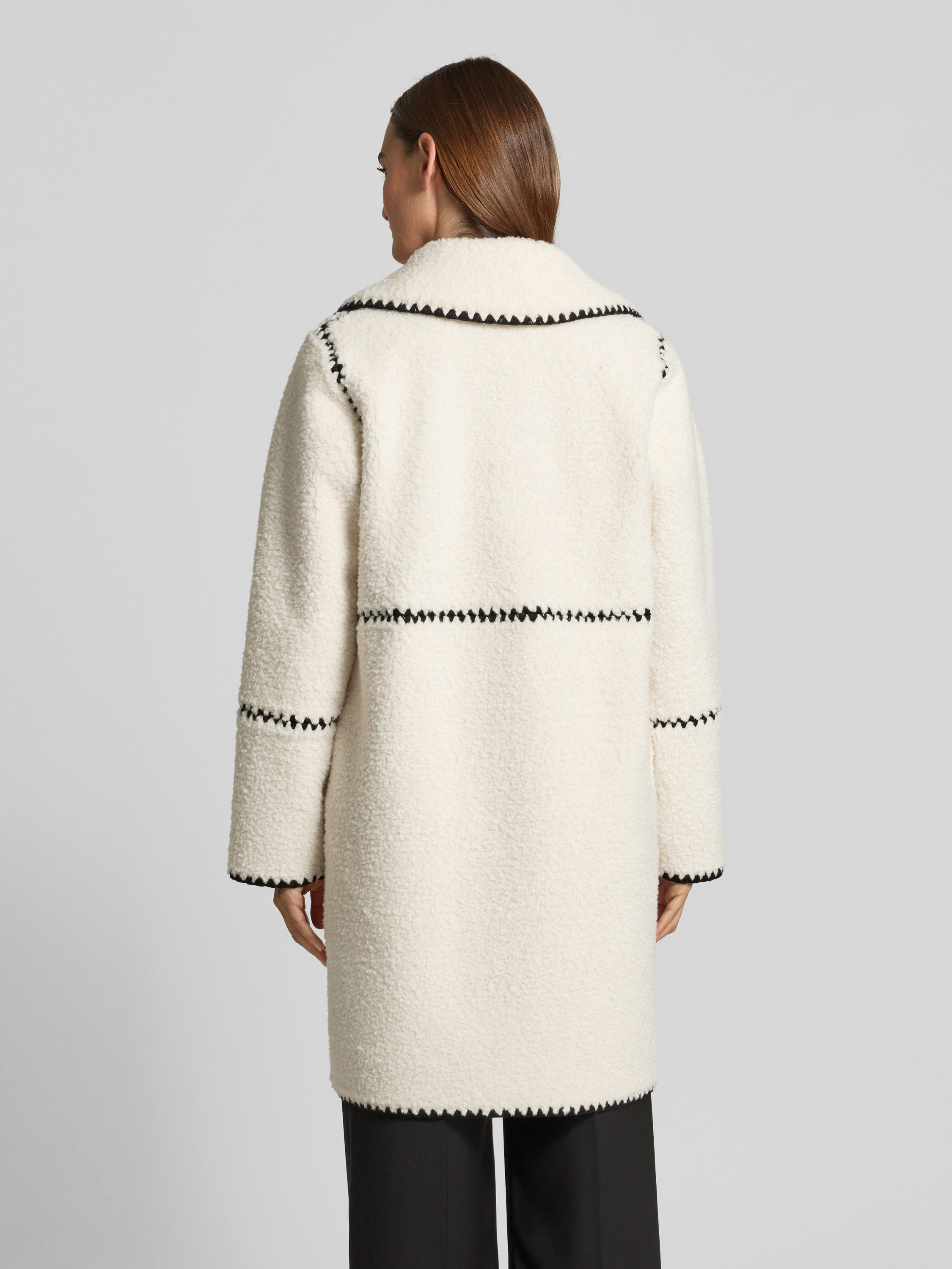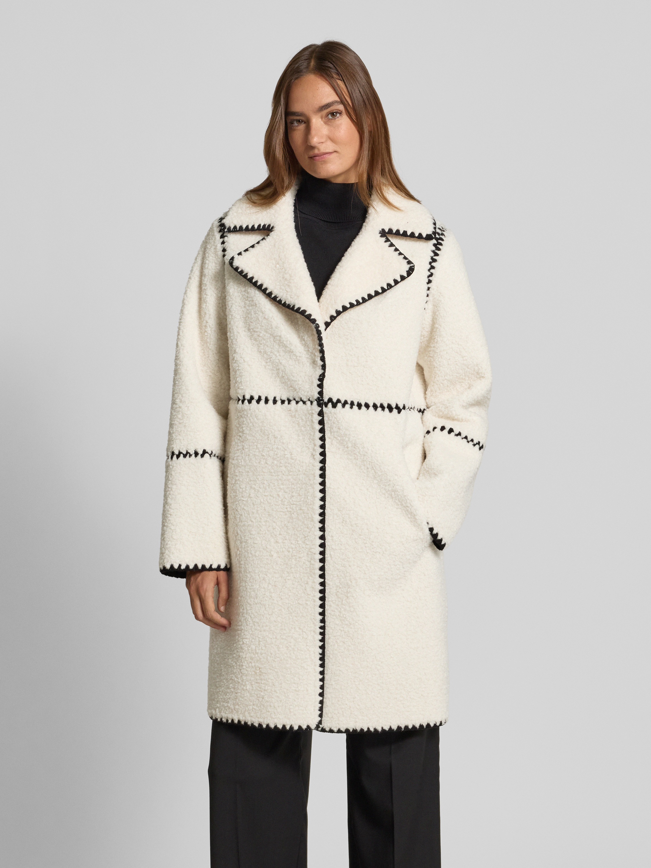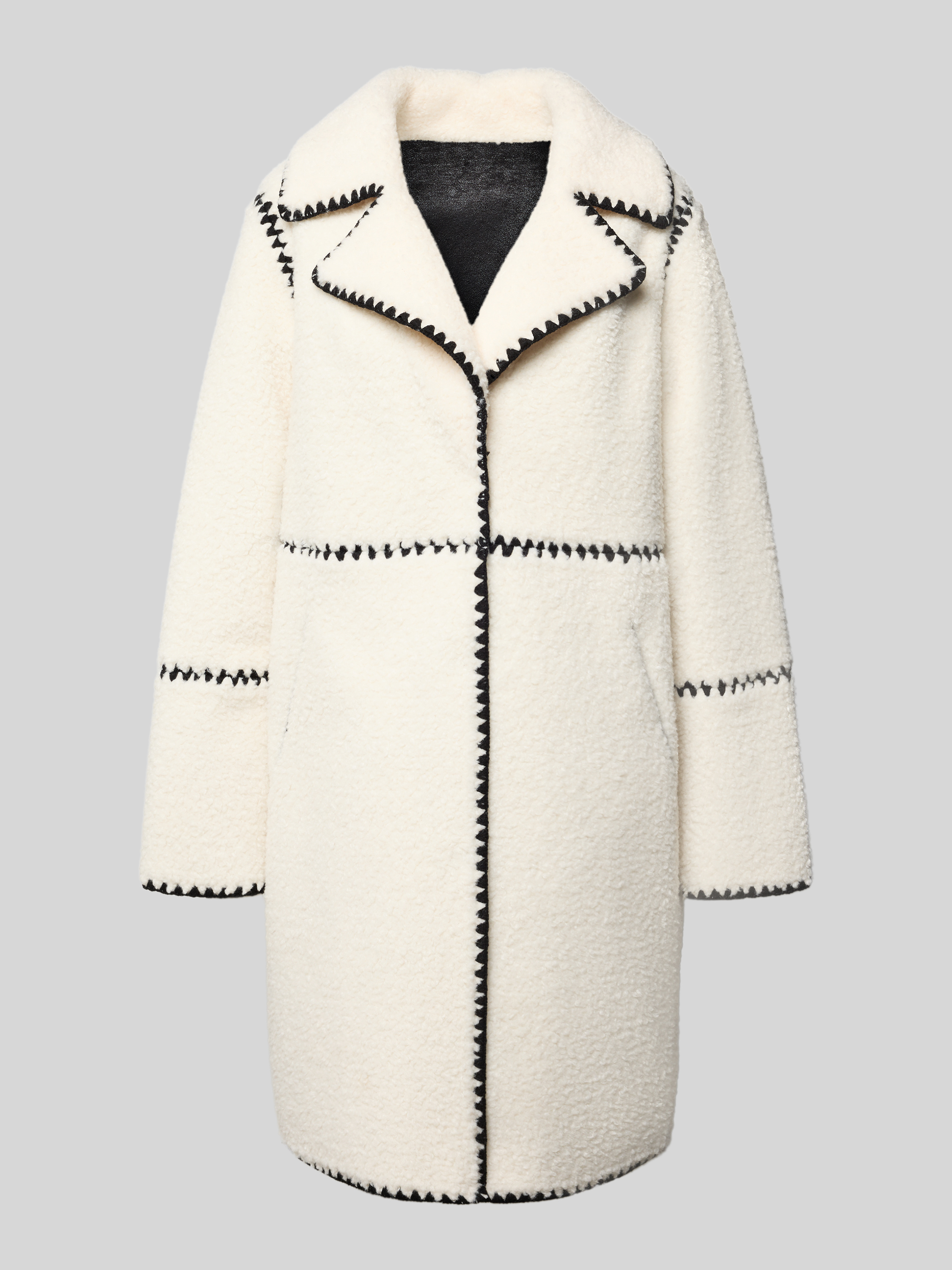 Płaszcz z polaru z haftami i wpuszczanymi kieszeniami - złamany biały