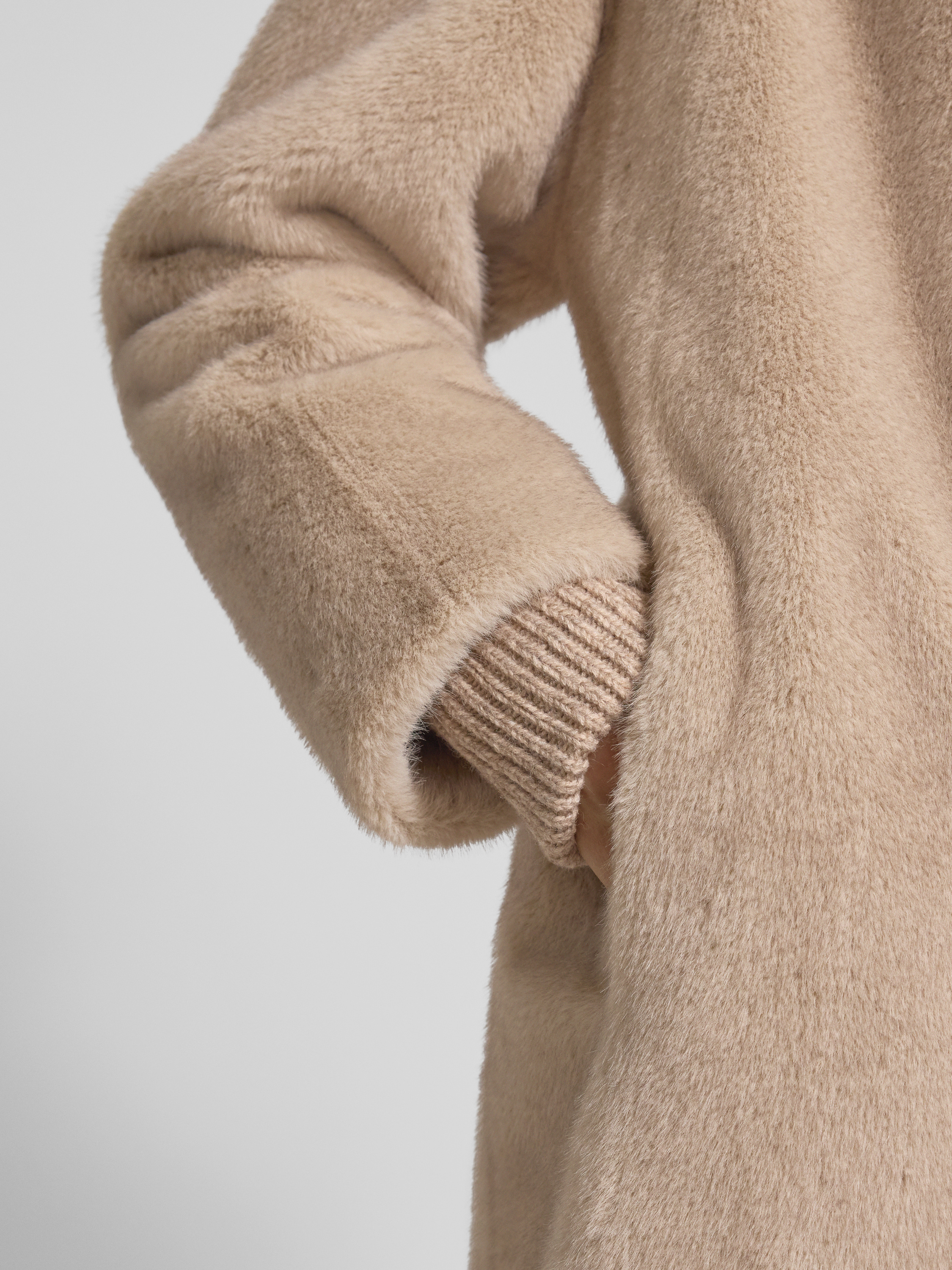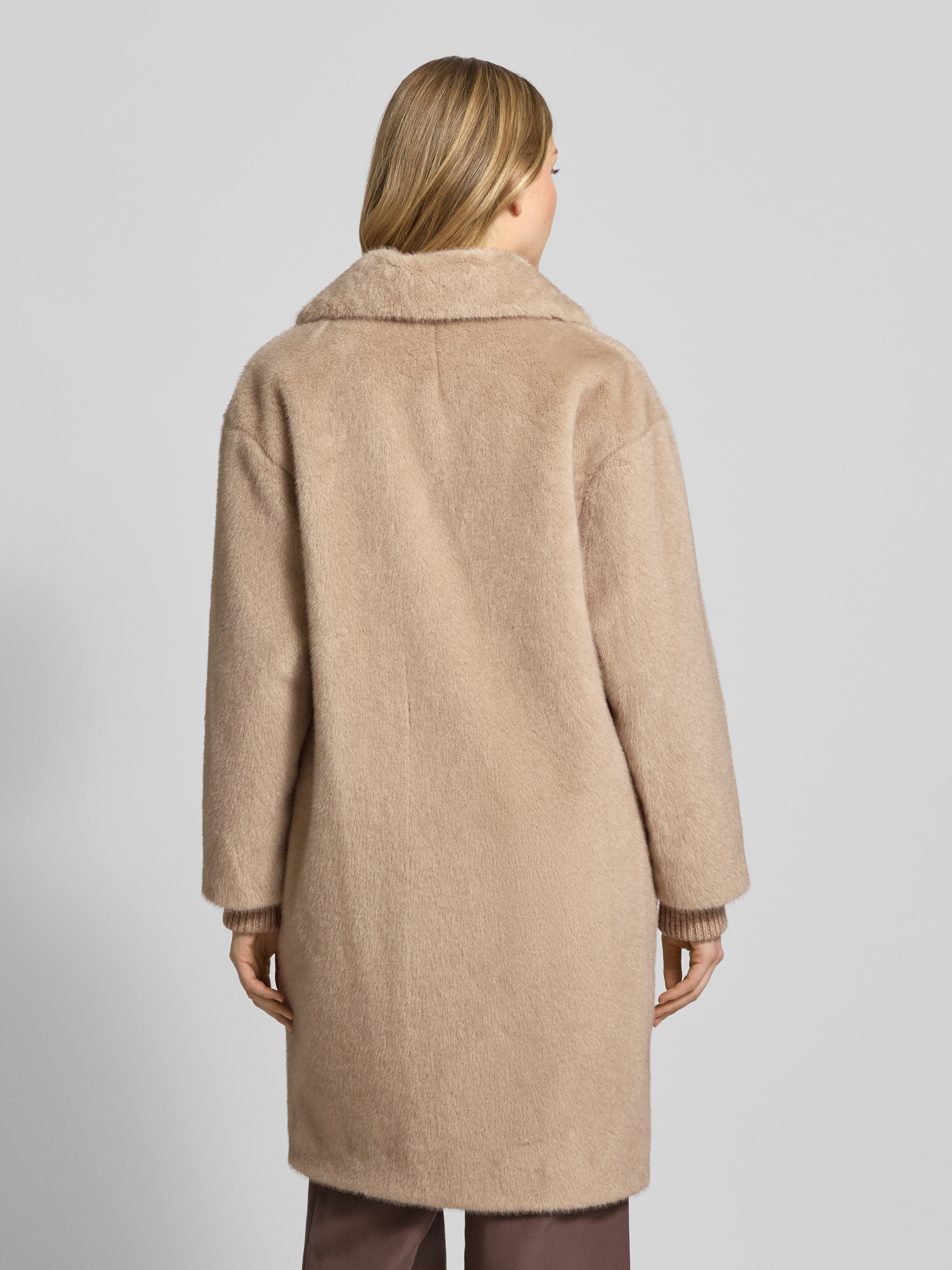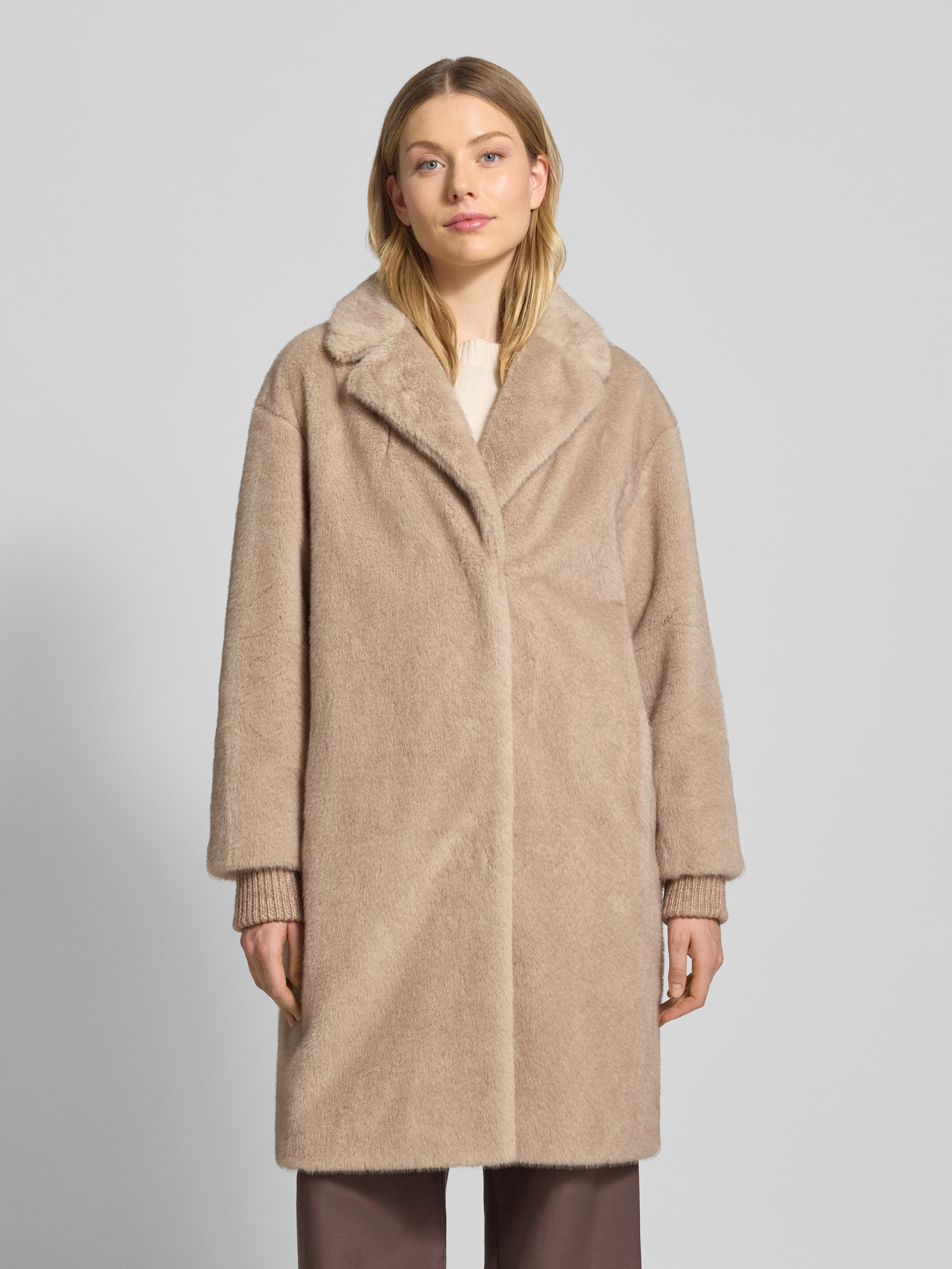 Płaszcz ze sztucznego futra z kołnierzem z połami - beżowy