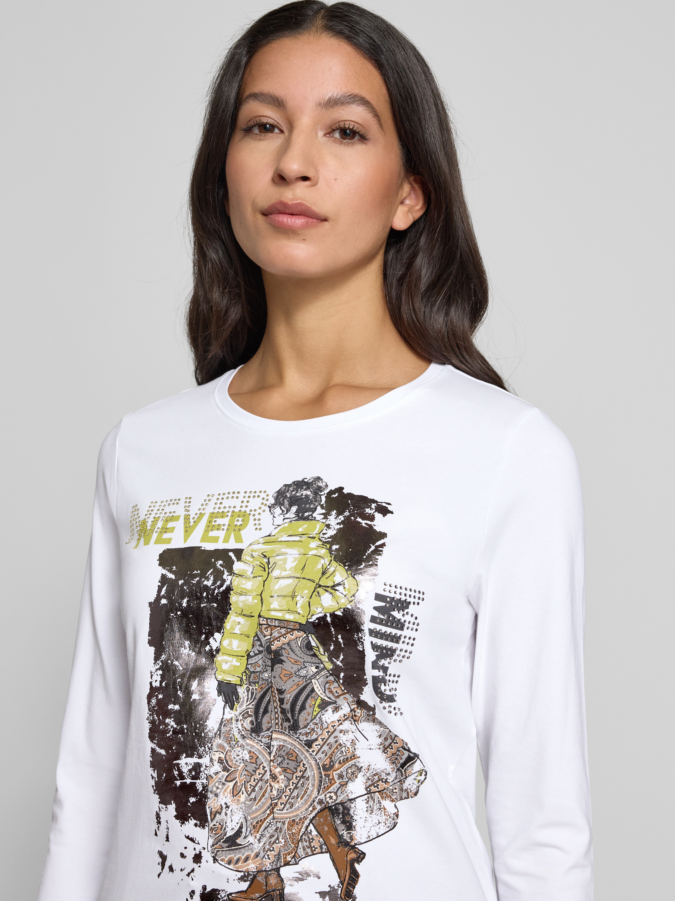 Bluzka o kroju regular fit z długim rękawem i nadrukiem z napisem model ‘September’ - biały