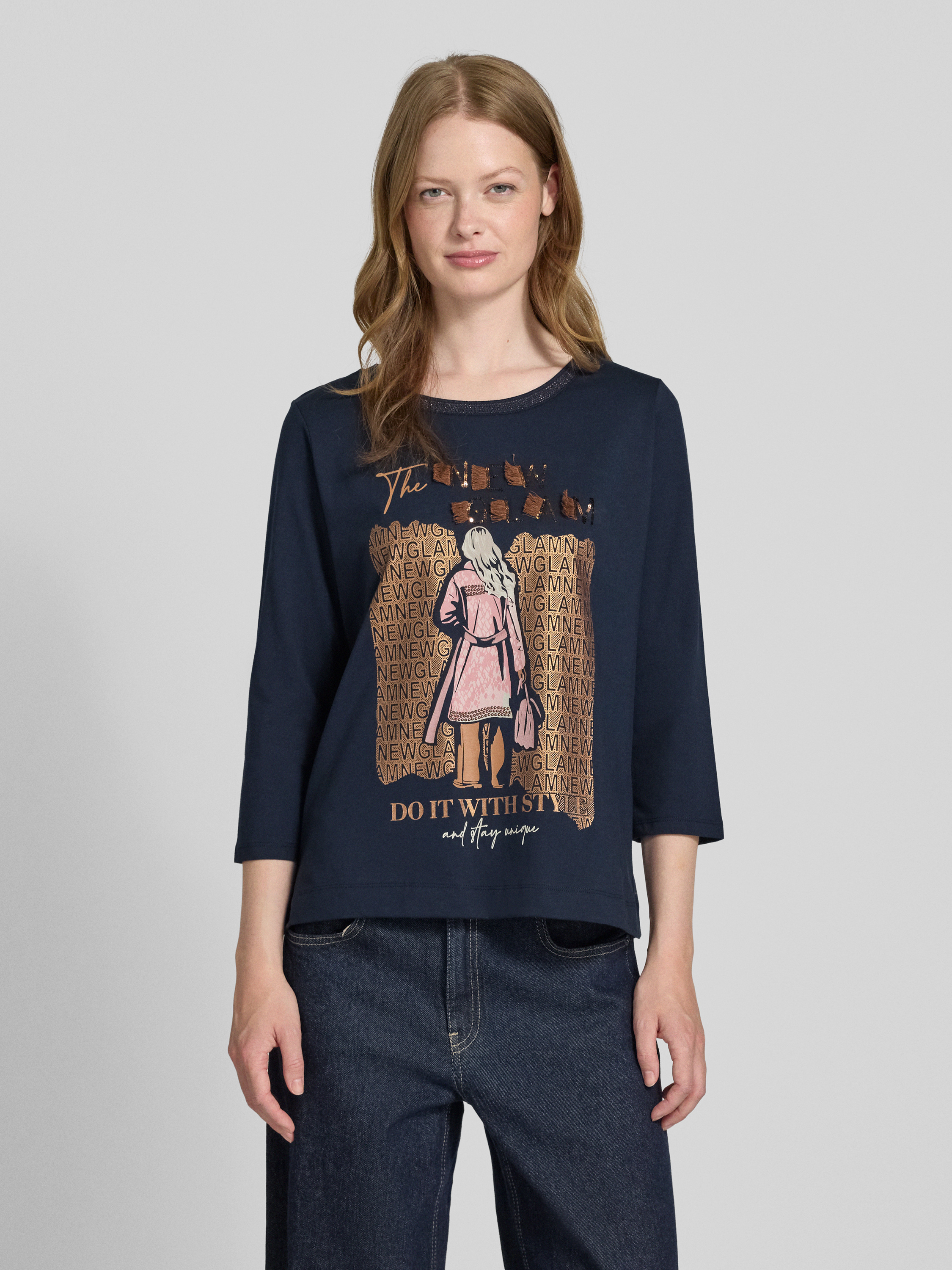 Bluzka z rękawem o dł. 3/4 - granatowy