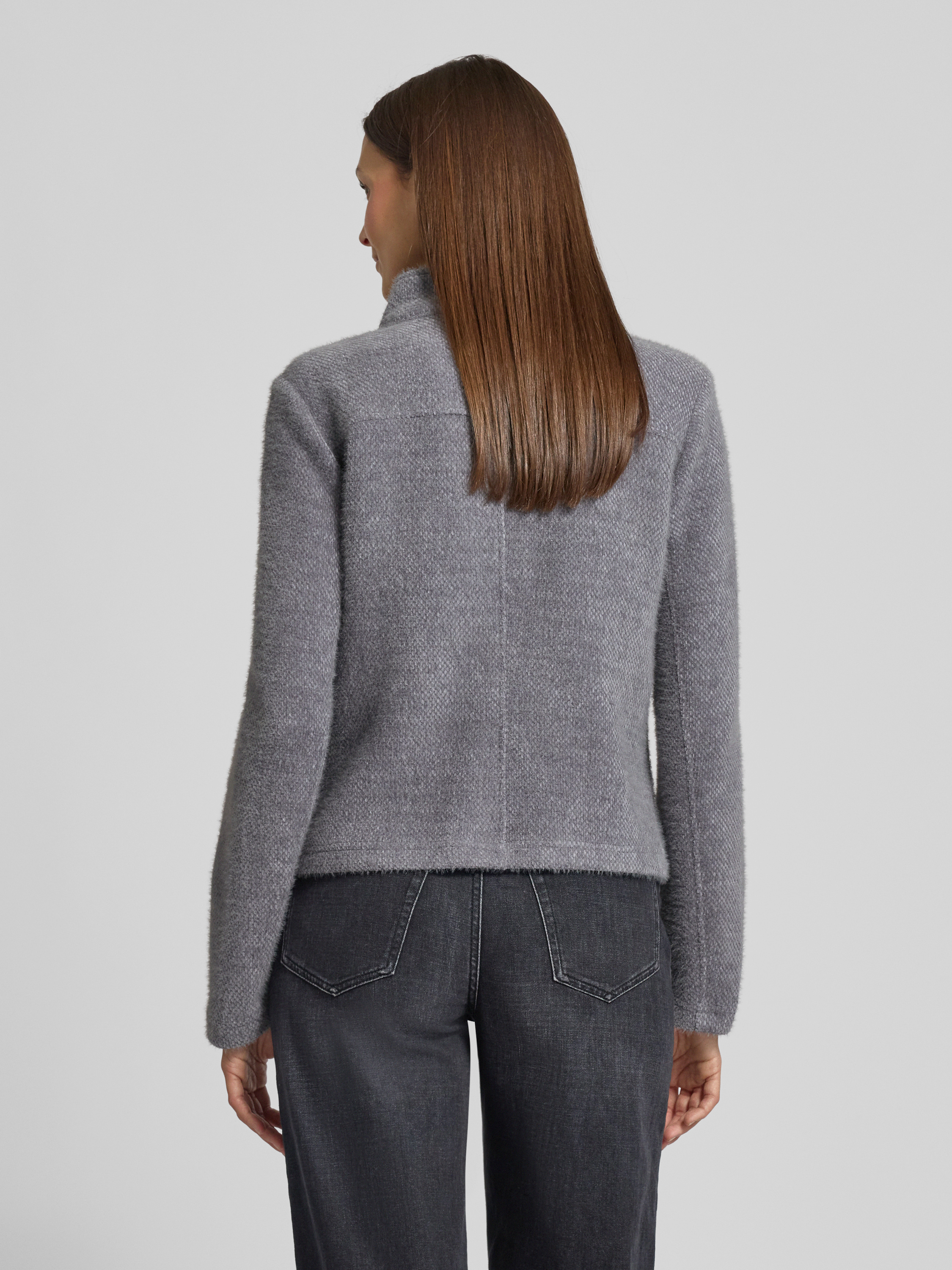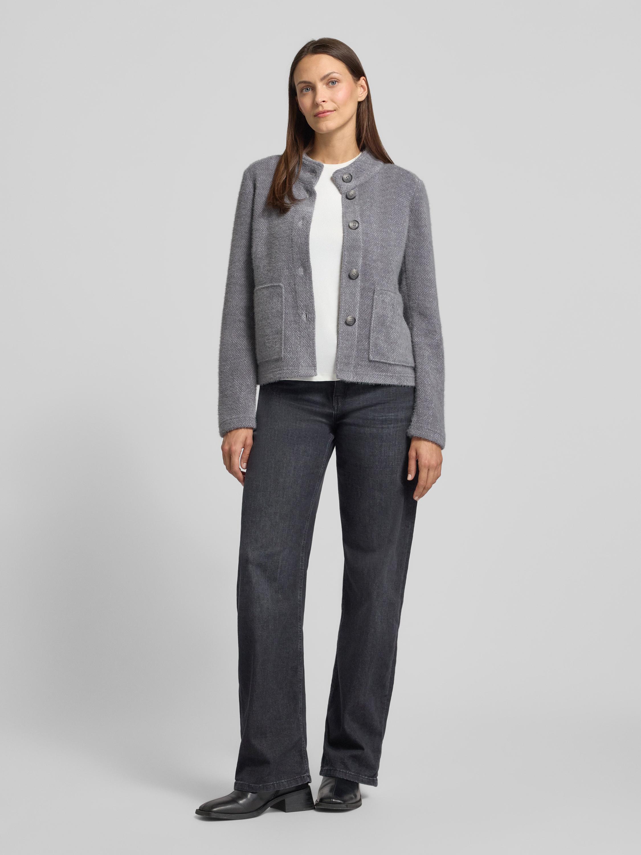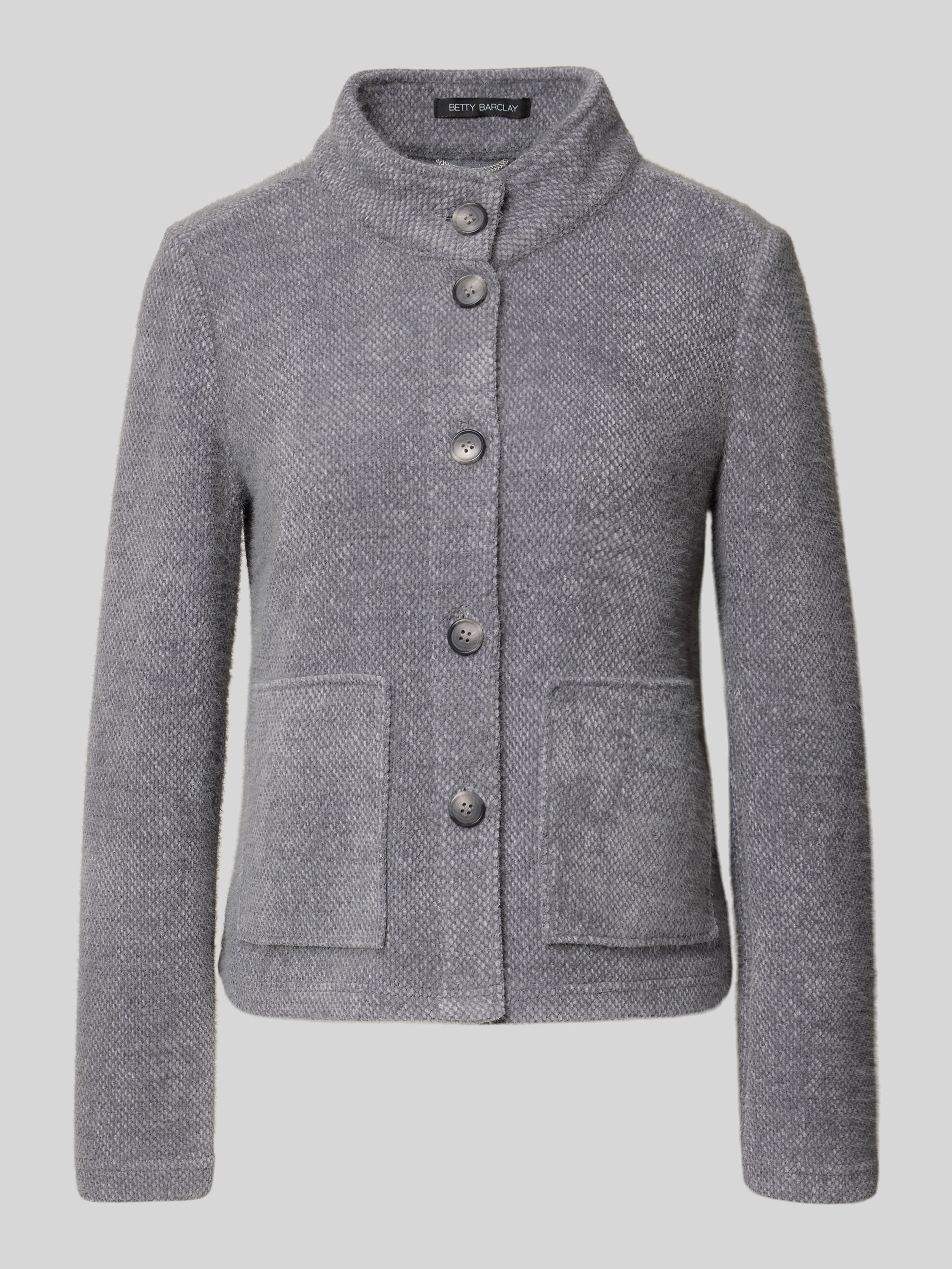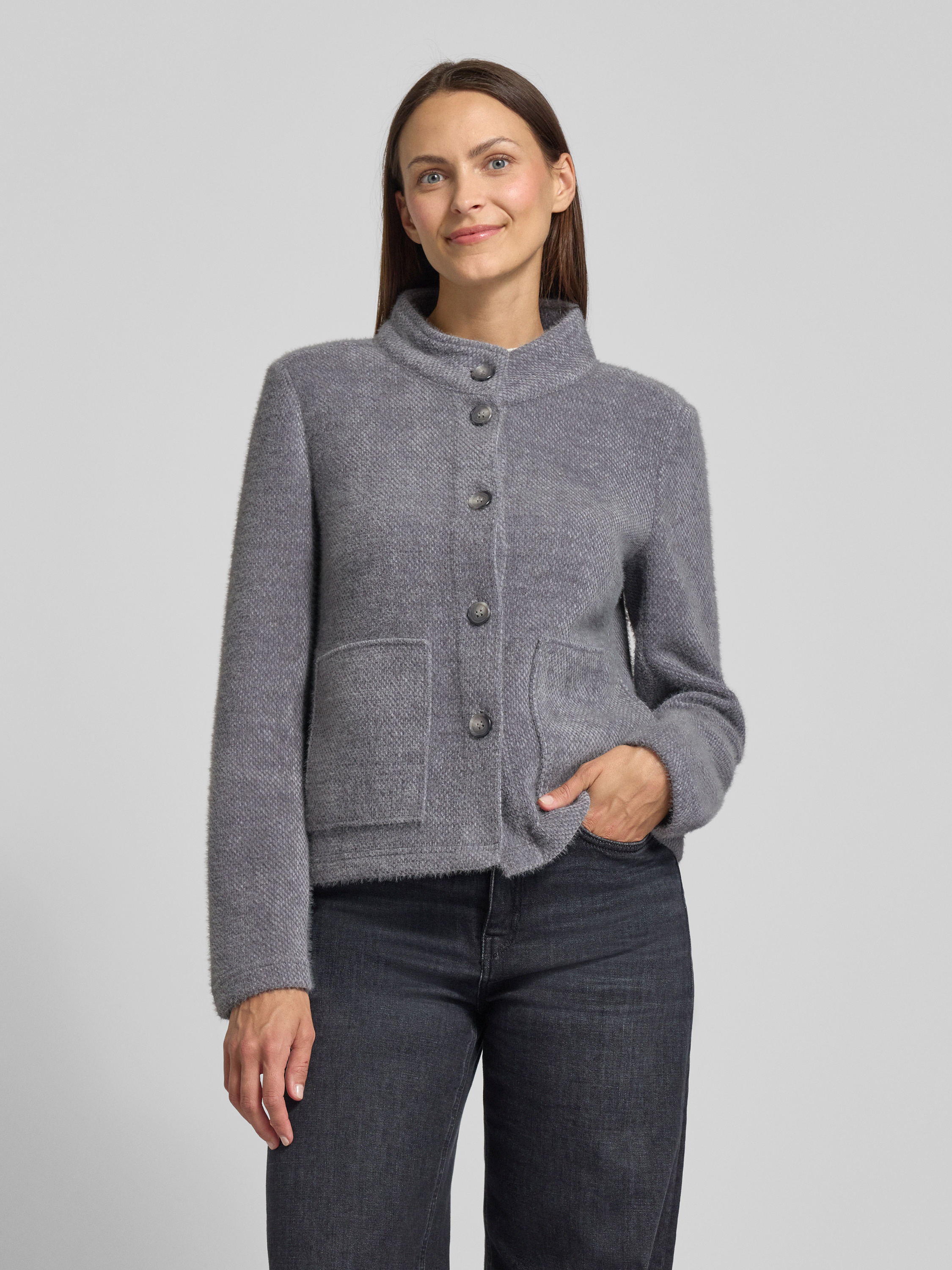 Kurtka z dzianiny ze stójką z nakładanymi kieszeniami - średnioszary