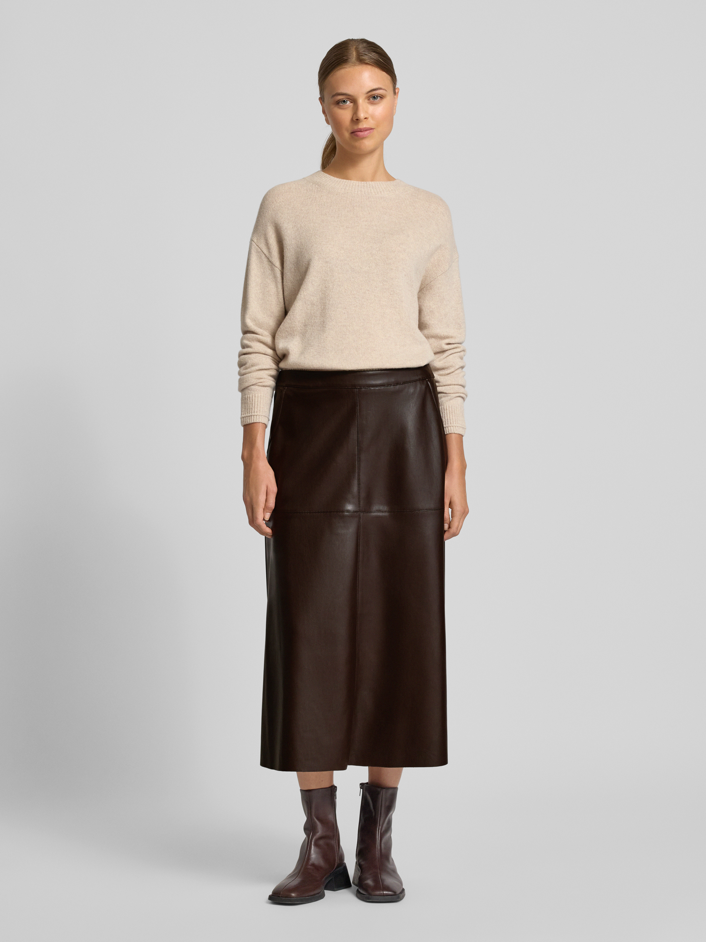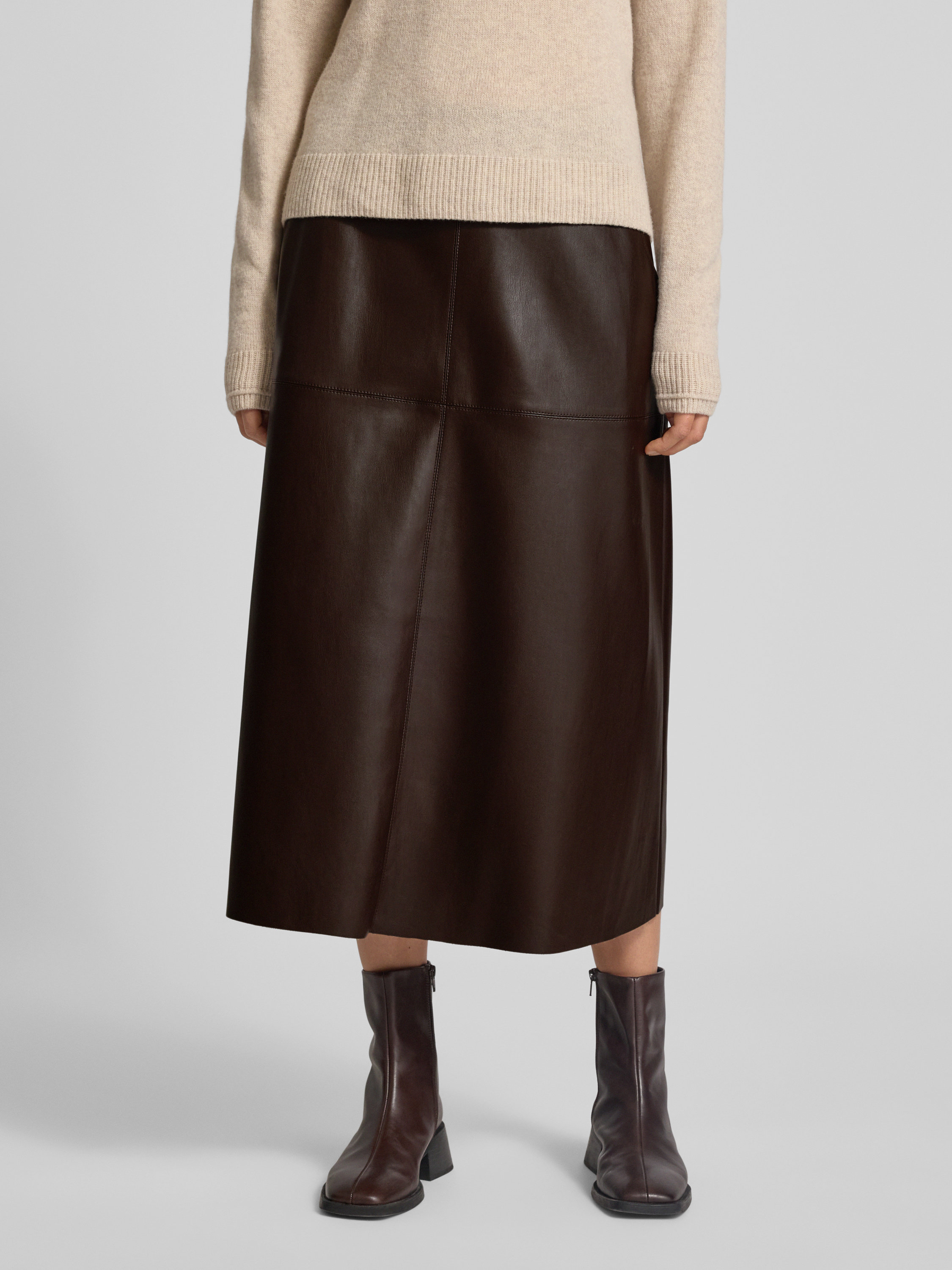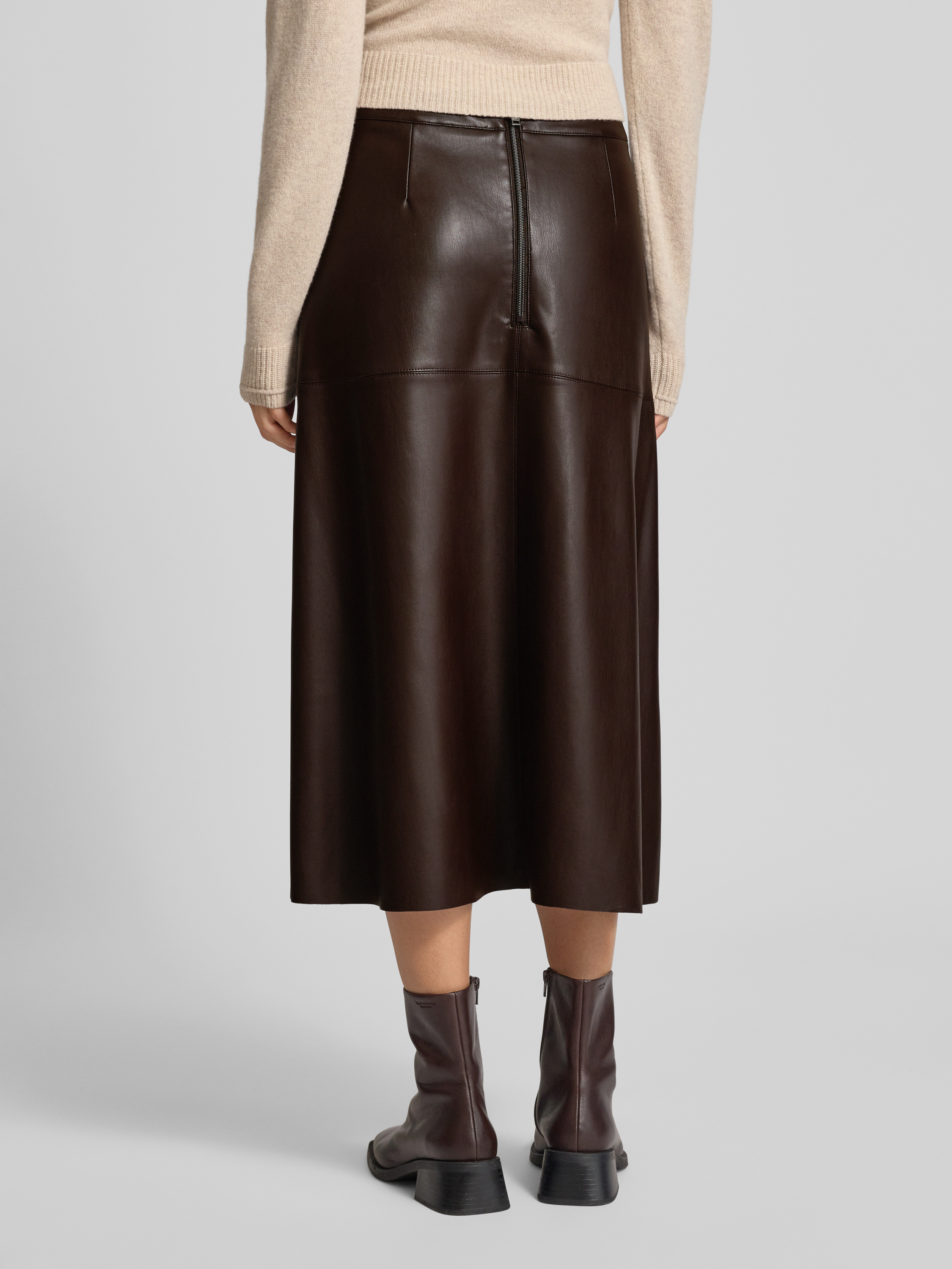 Spódnica midi z imitacji skóry model ‘August’ - ciemnobrązowy