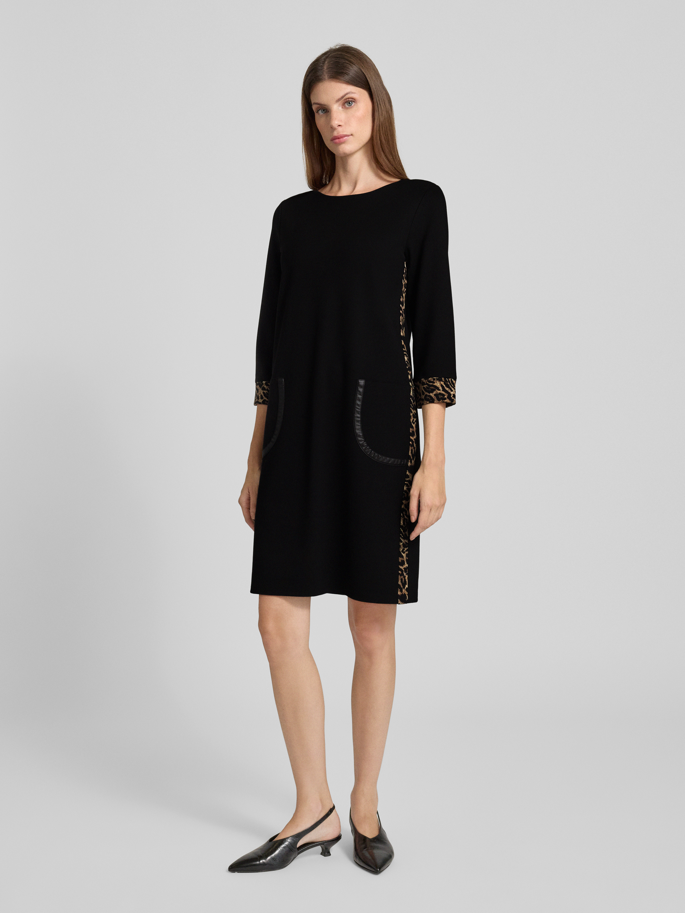 Sukienka o długości do kolan z wpuszczanymi kieszeniami - czarny