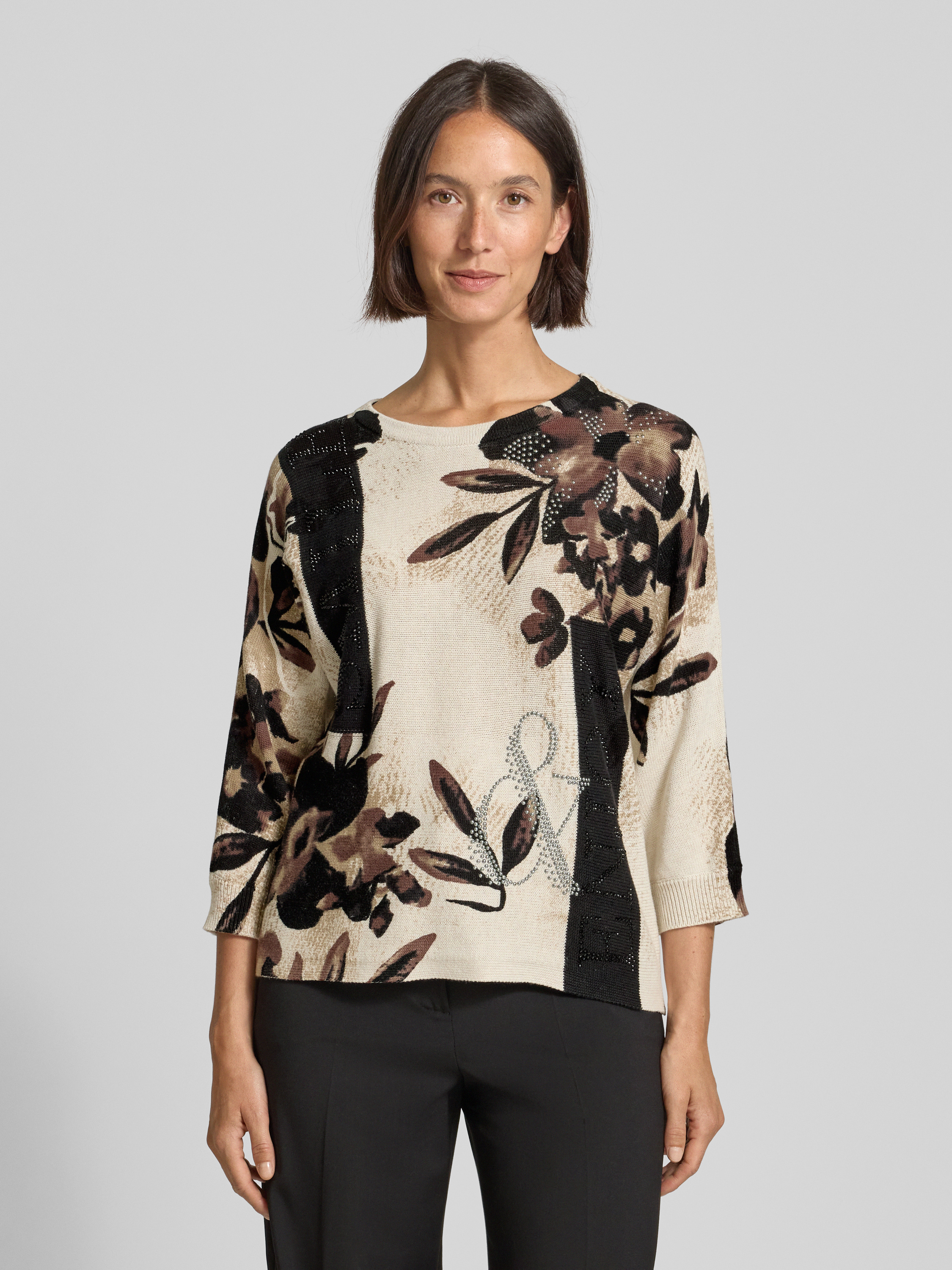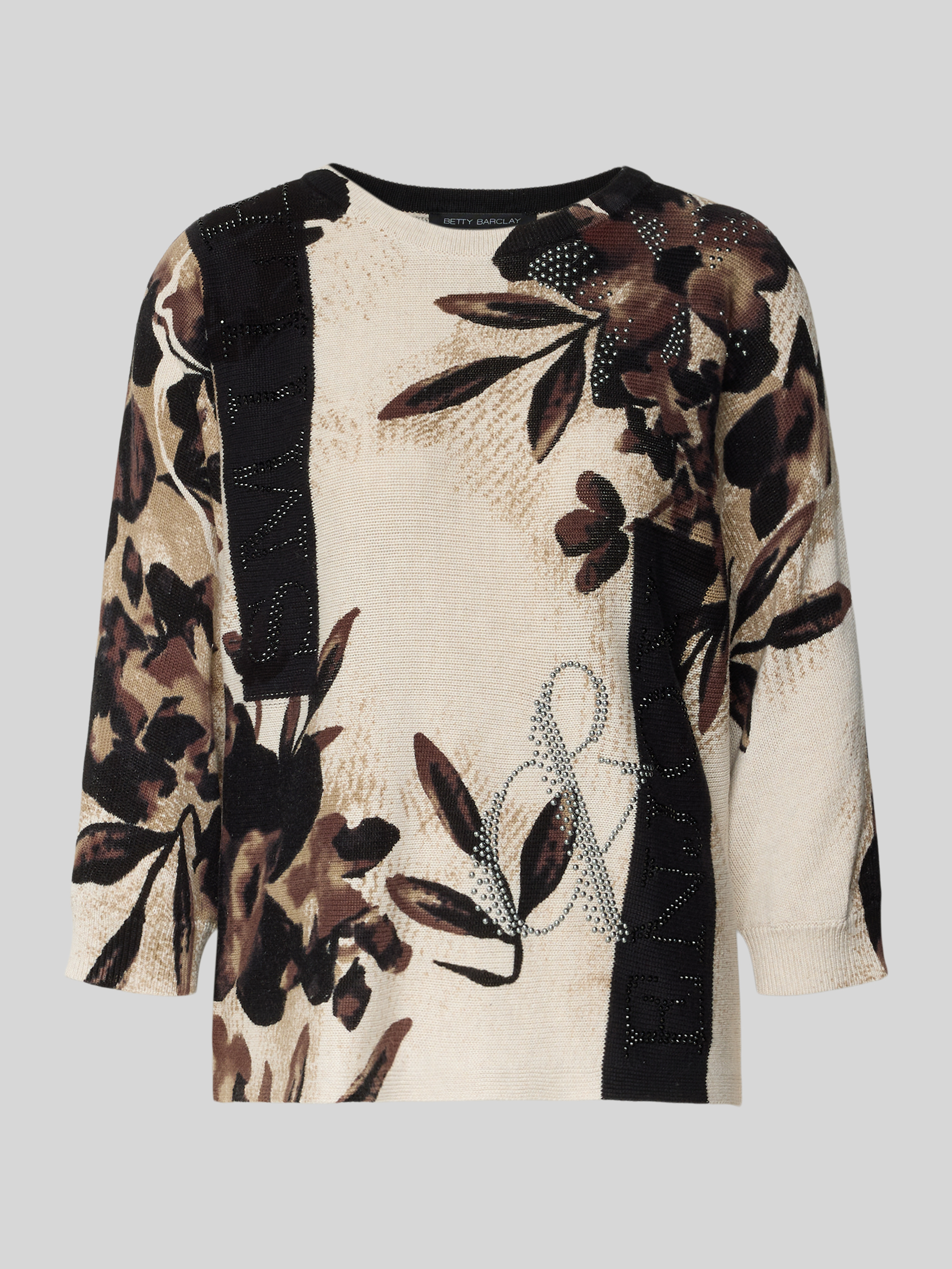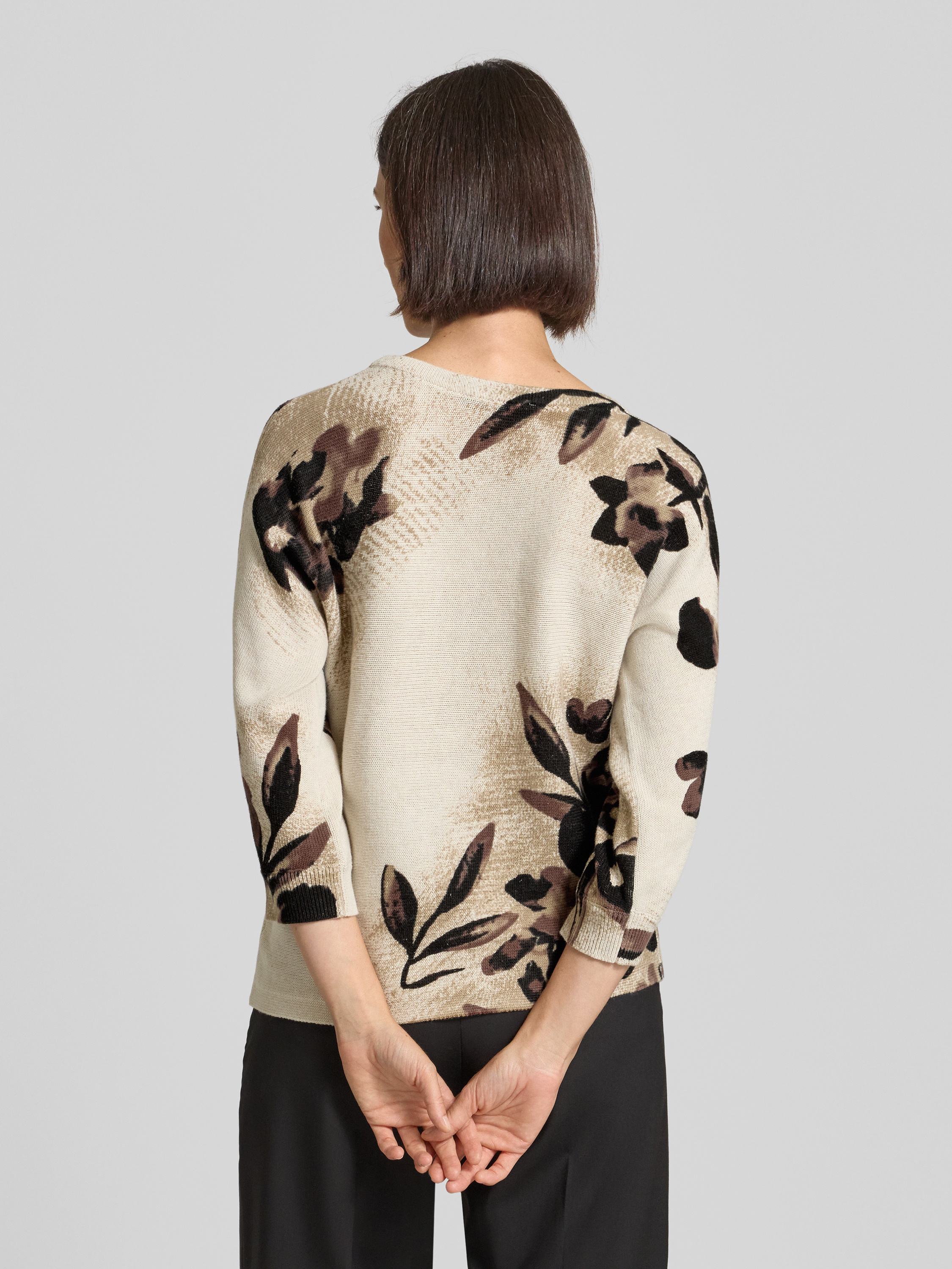 Sweter z dzianiny z okrągłym dekoltem - ciemnobrązowy