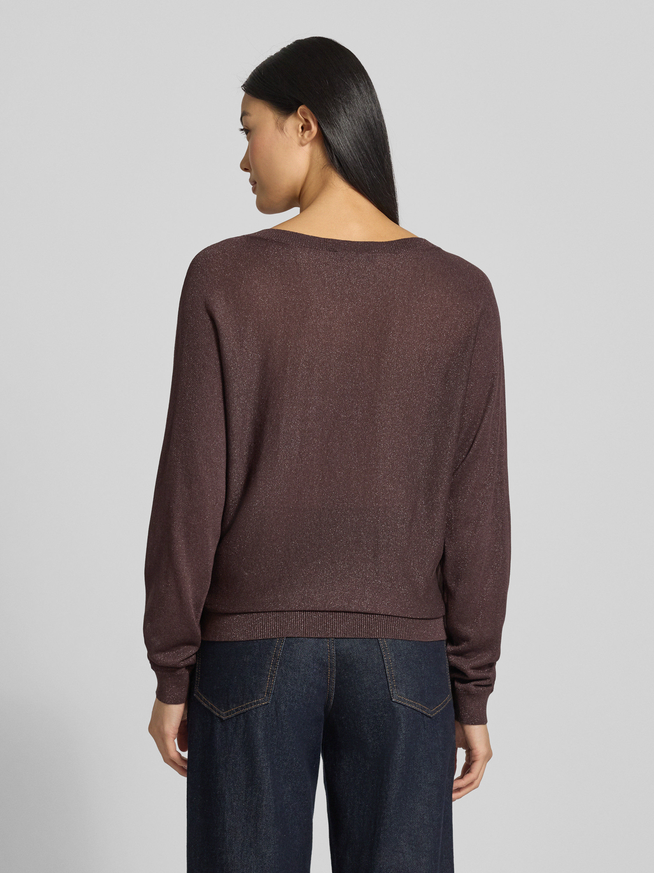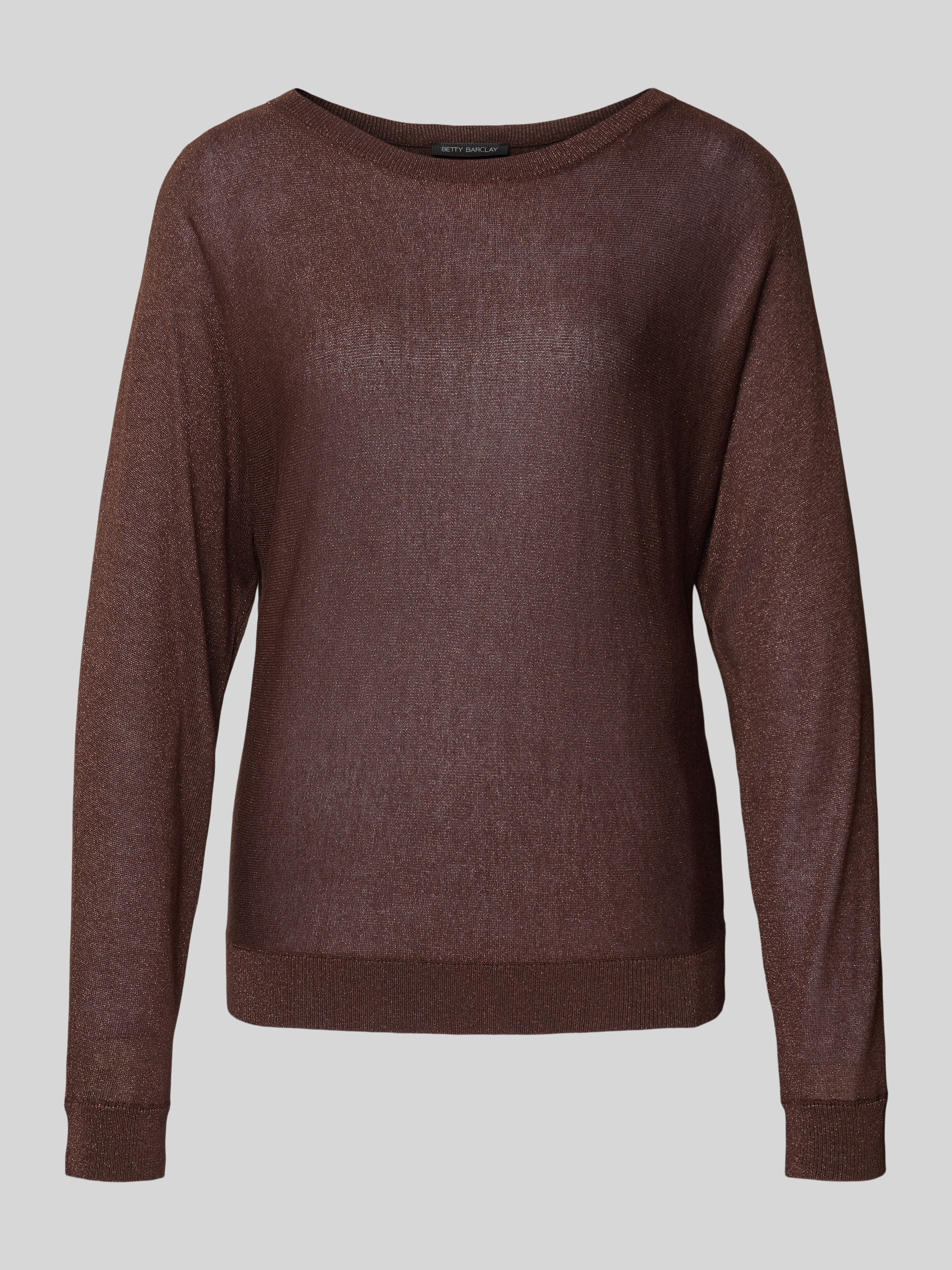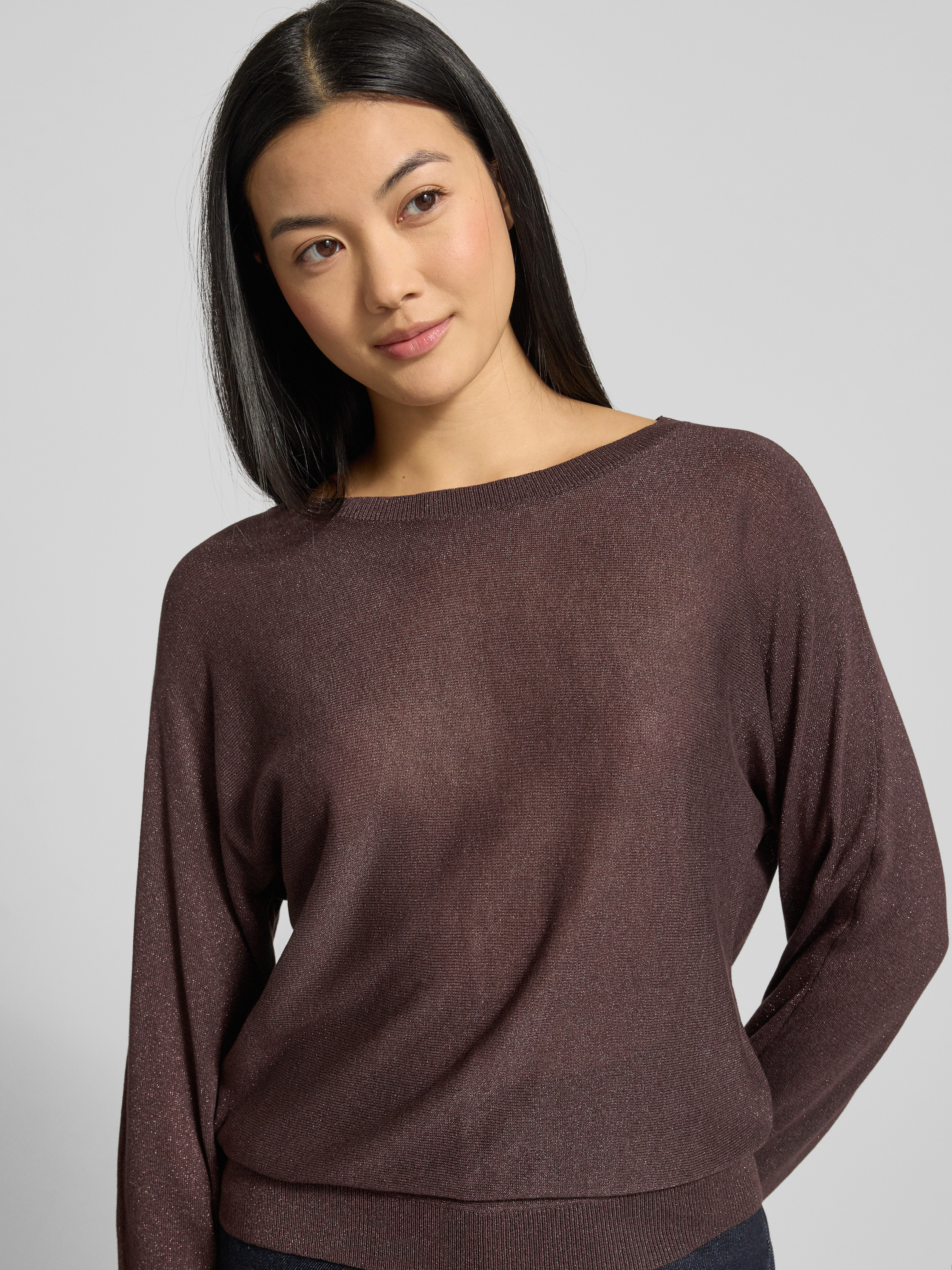 Sweter z dzianiny z prążkowanymi wykończeniami - ciemnobrązowy