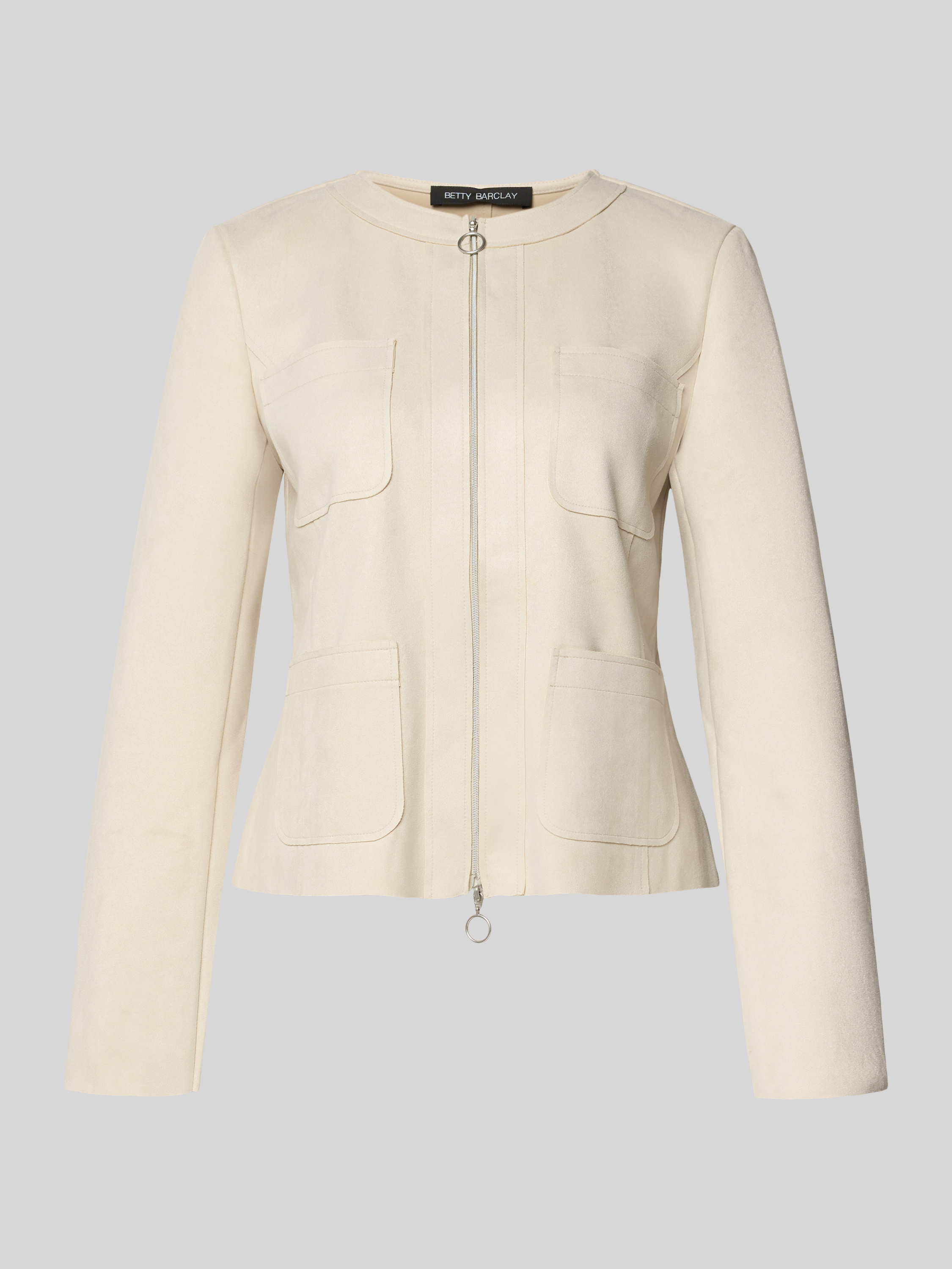 Żakiet o kroju slim fit z dwustronnym zamkiem błyskawicznym - beżowy