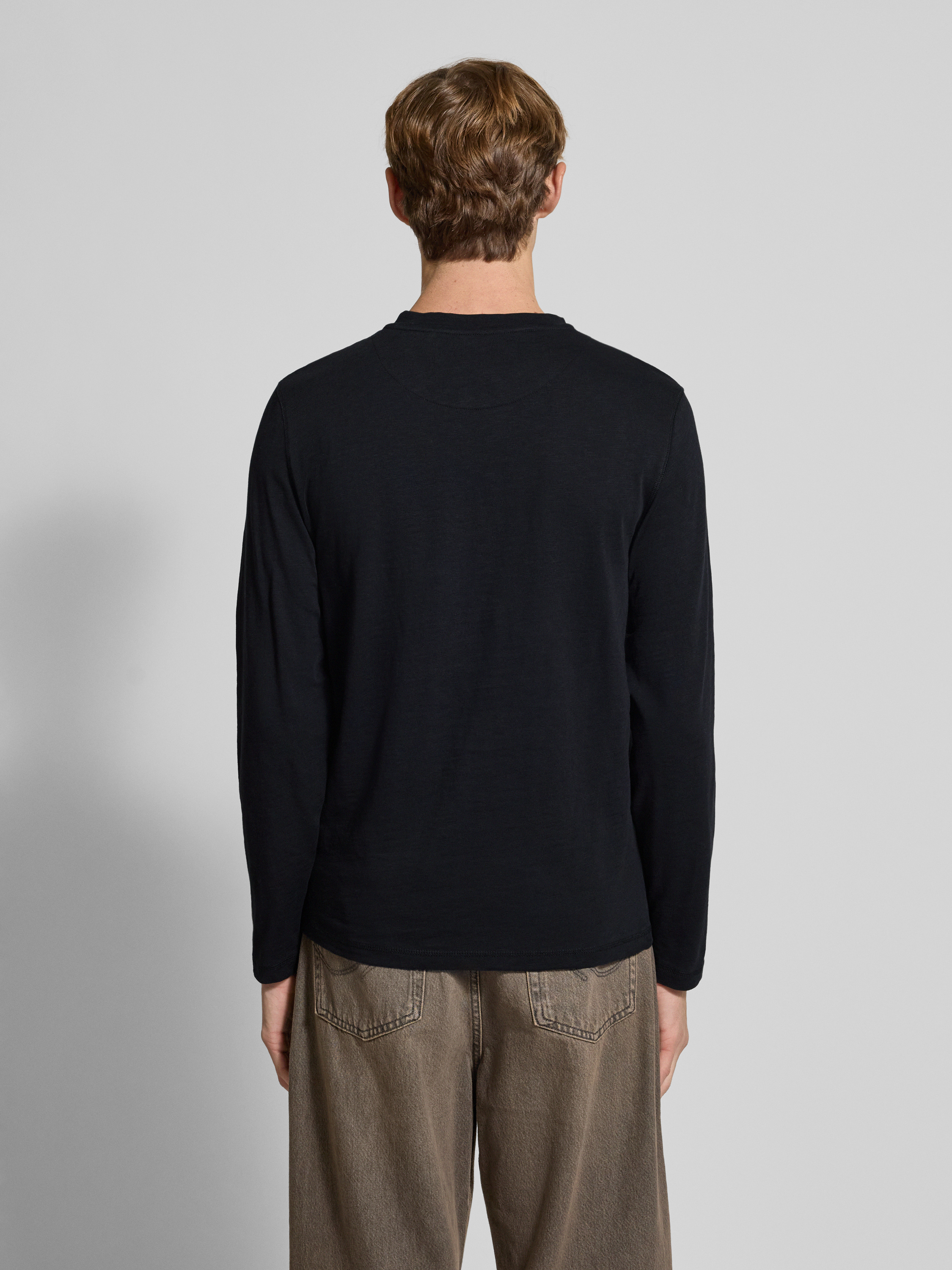 Bluzka z długim rękawem i krótką listwą guzikową model ‘BRAT’ - czarny