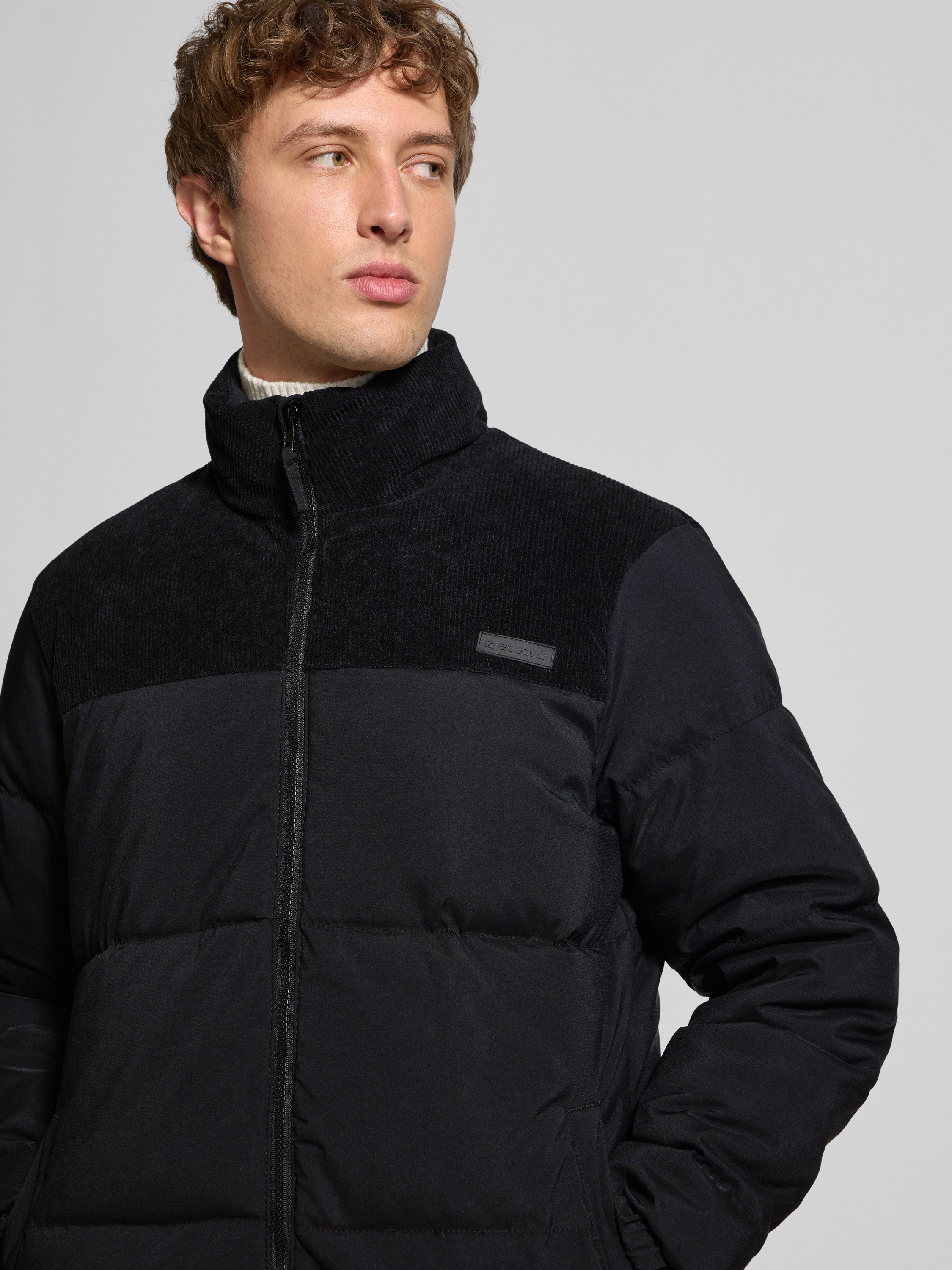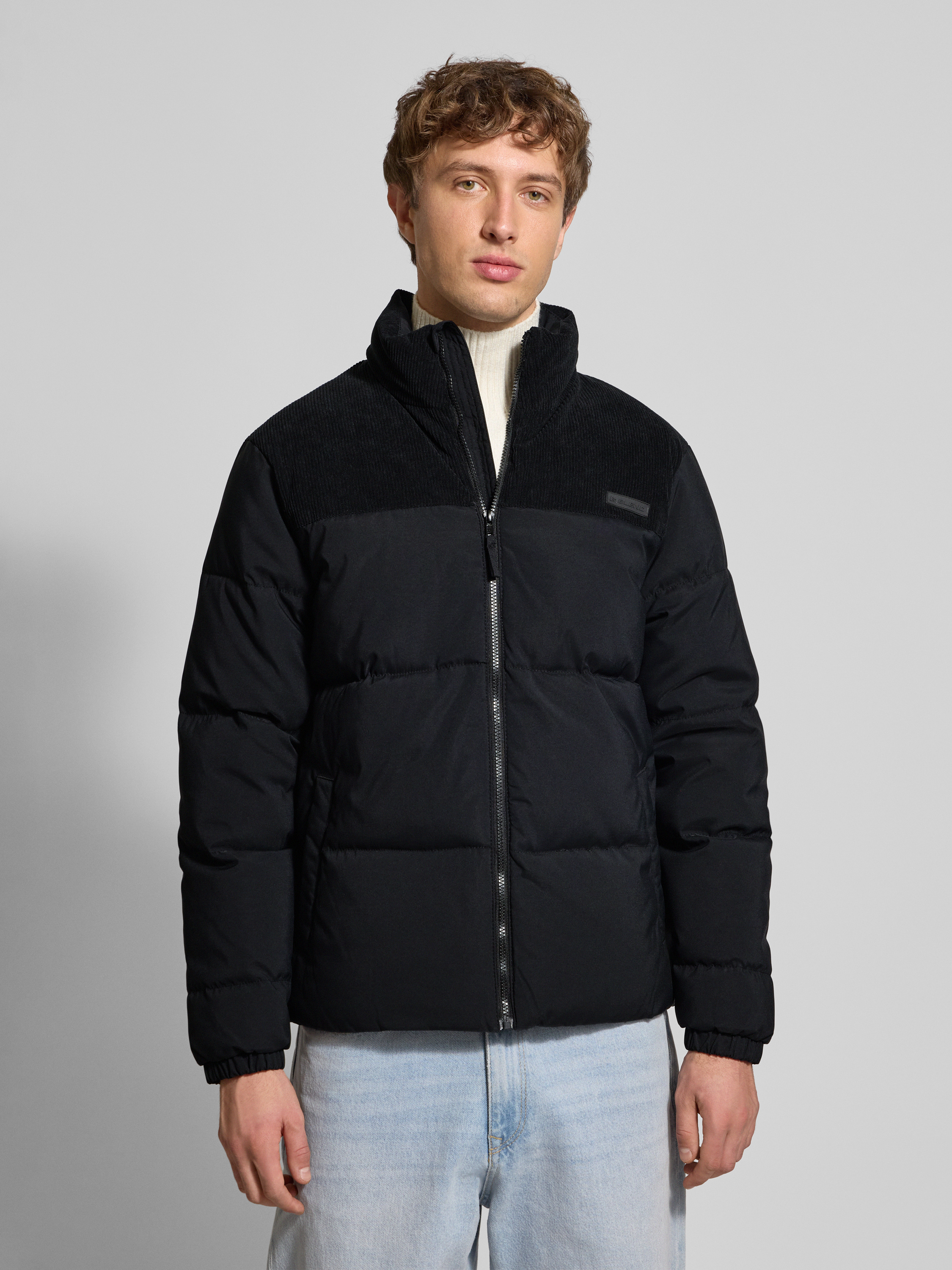 Kurtka pikowana ze stójką i wpuszczanymi rękawami - czarny