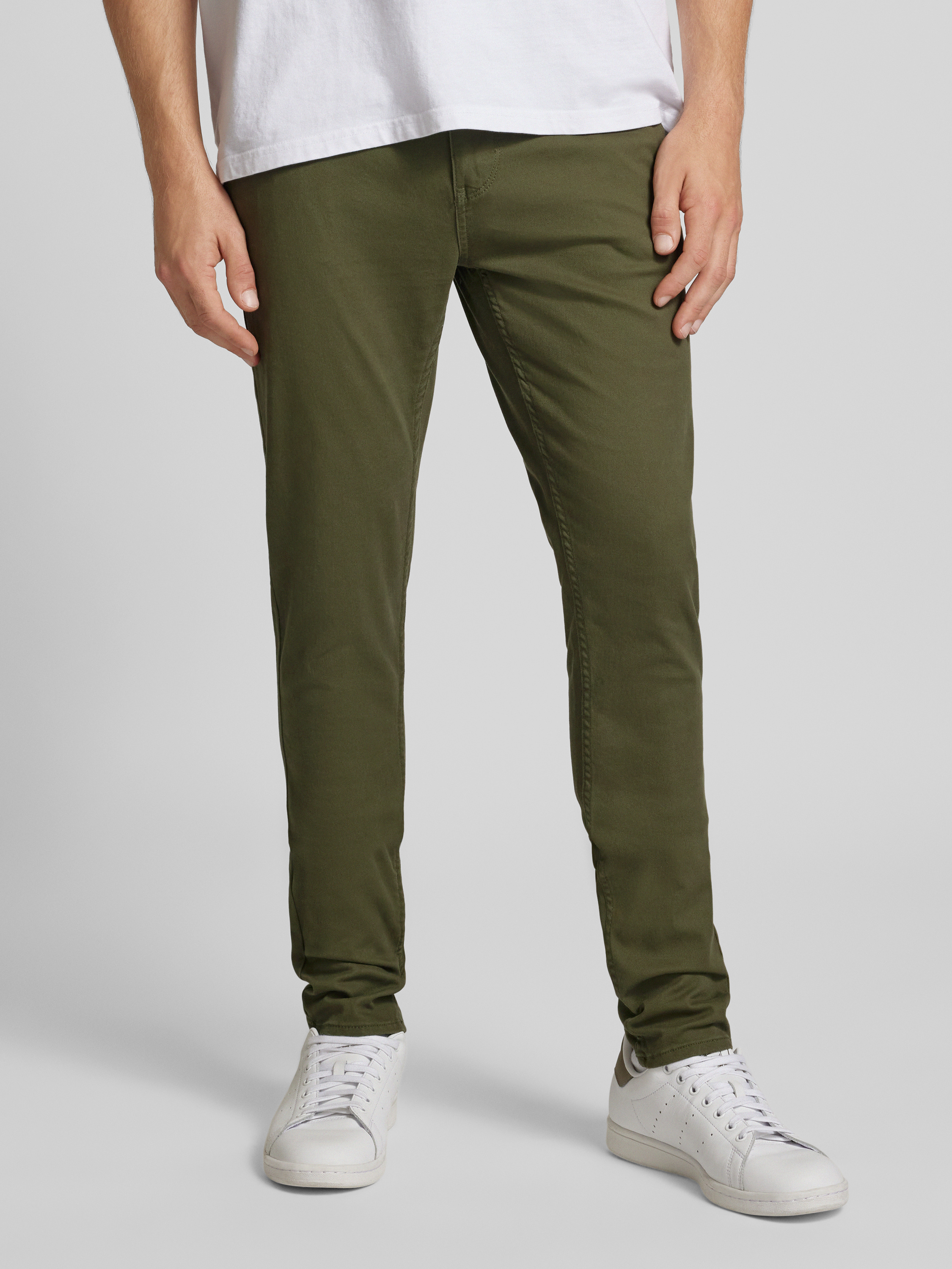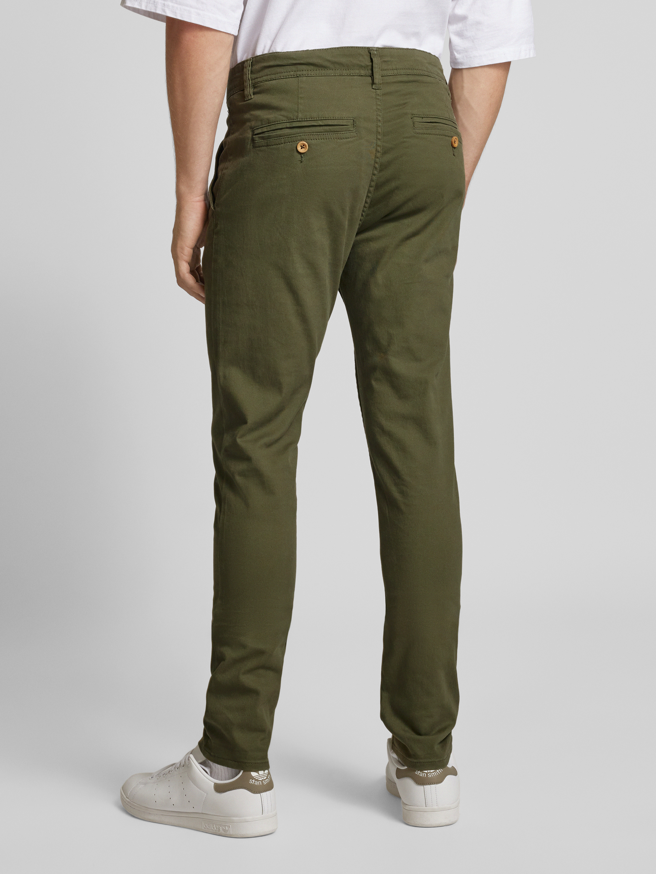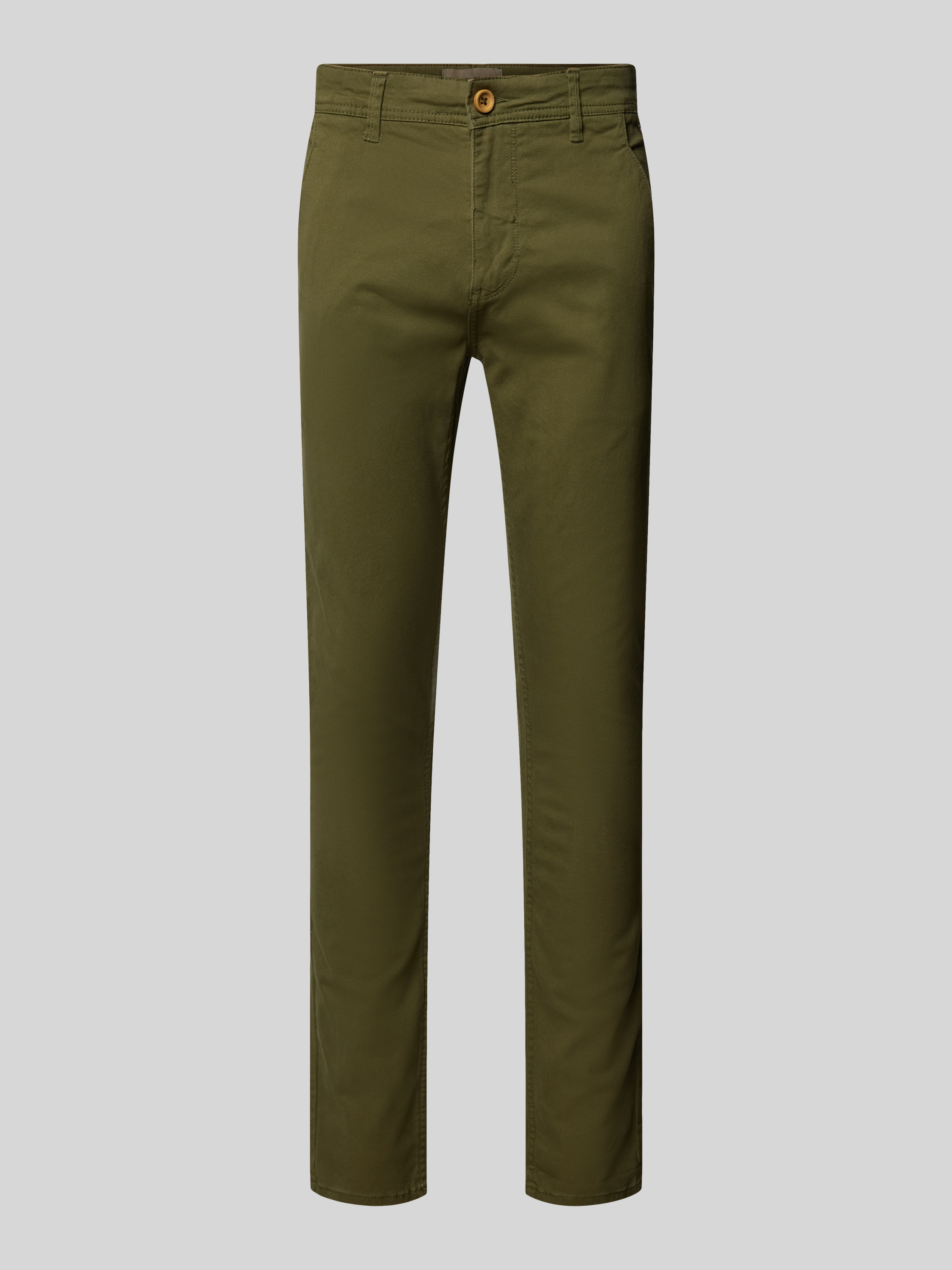 Spodnie o kroju slim fit z wpuszczanymi kieszeniami i kieszeniami z tyłu model ‘NATAN’ - oliwkowy