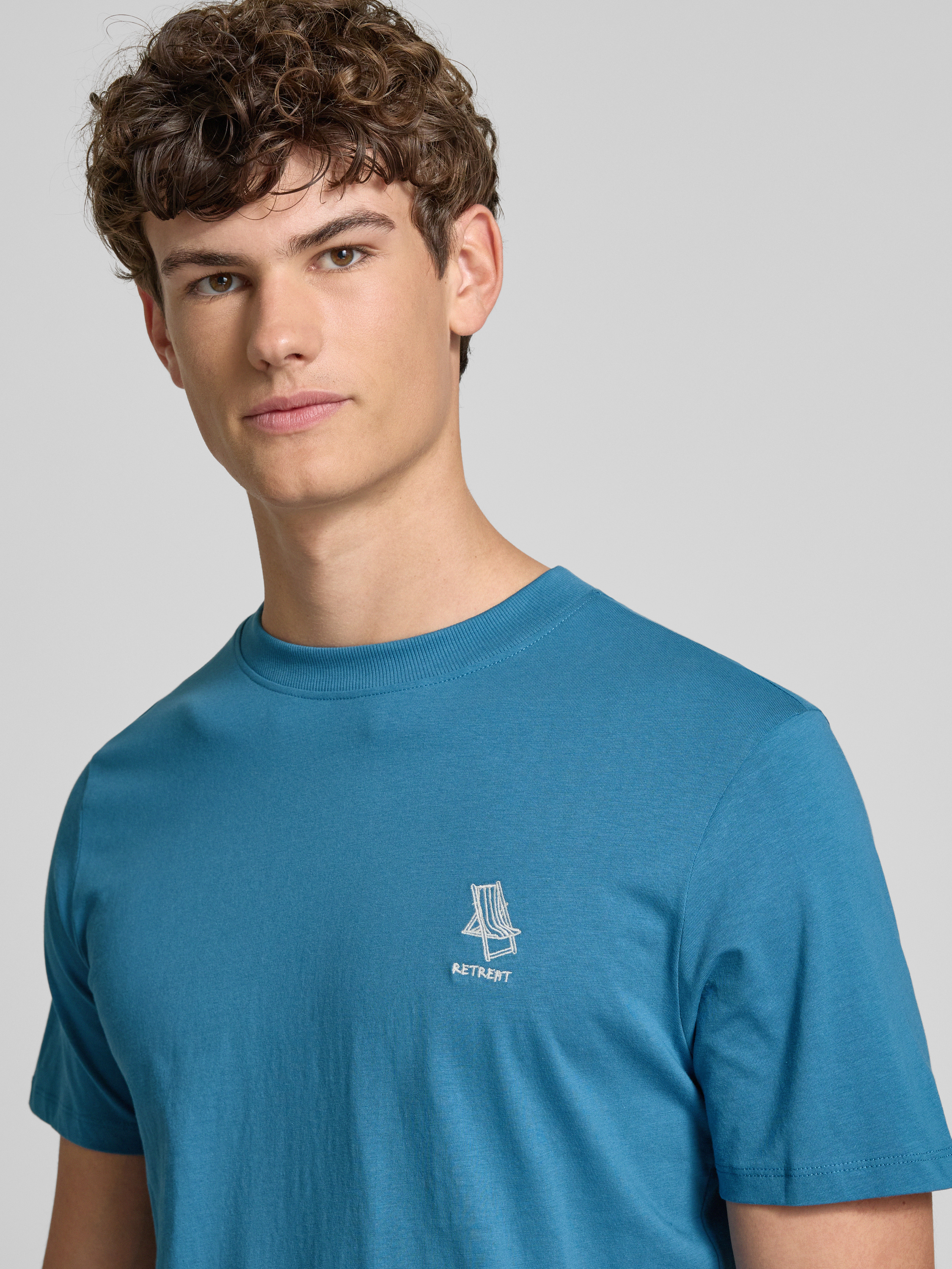 T-shirt z wyhaftowanym detalem model ‘JEPPE’ - szaroniebieski
