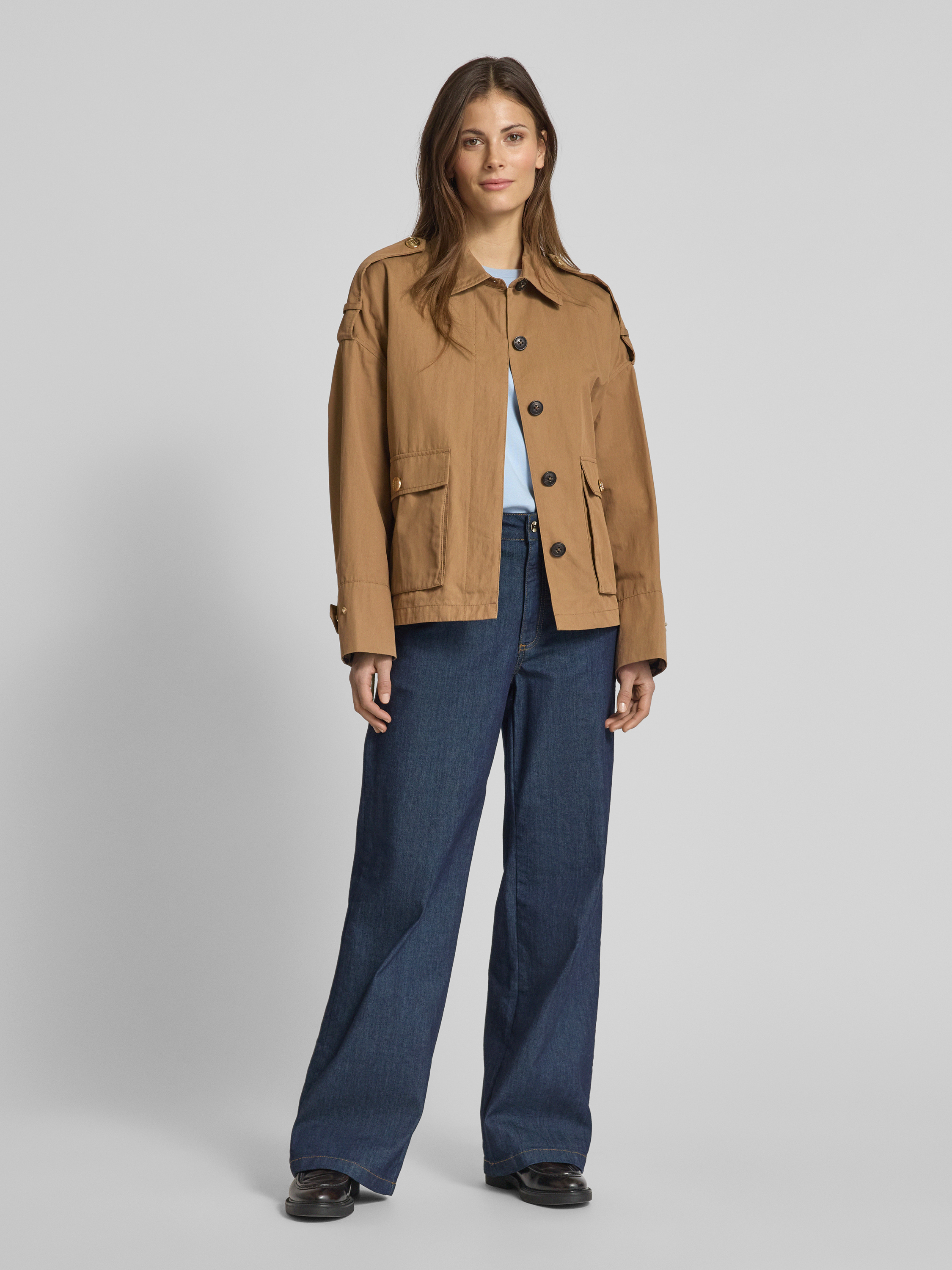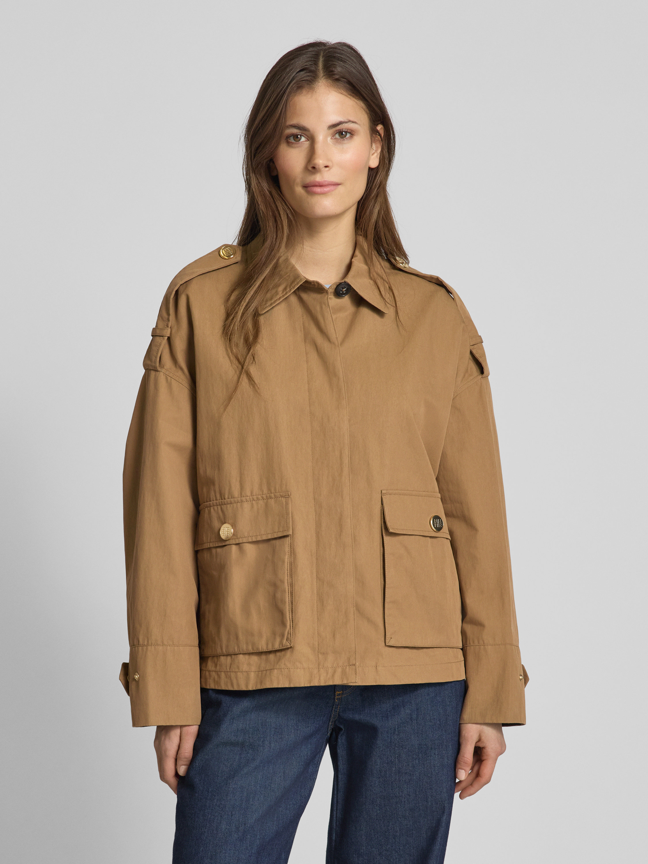 Trencz z kieszeniami z patką - camel