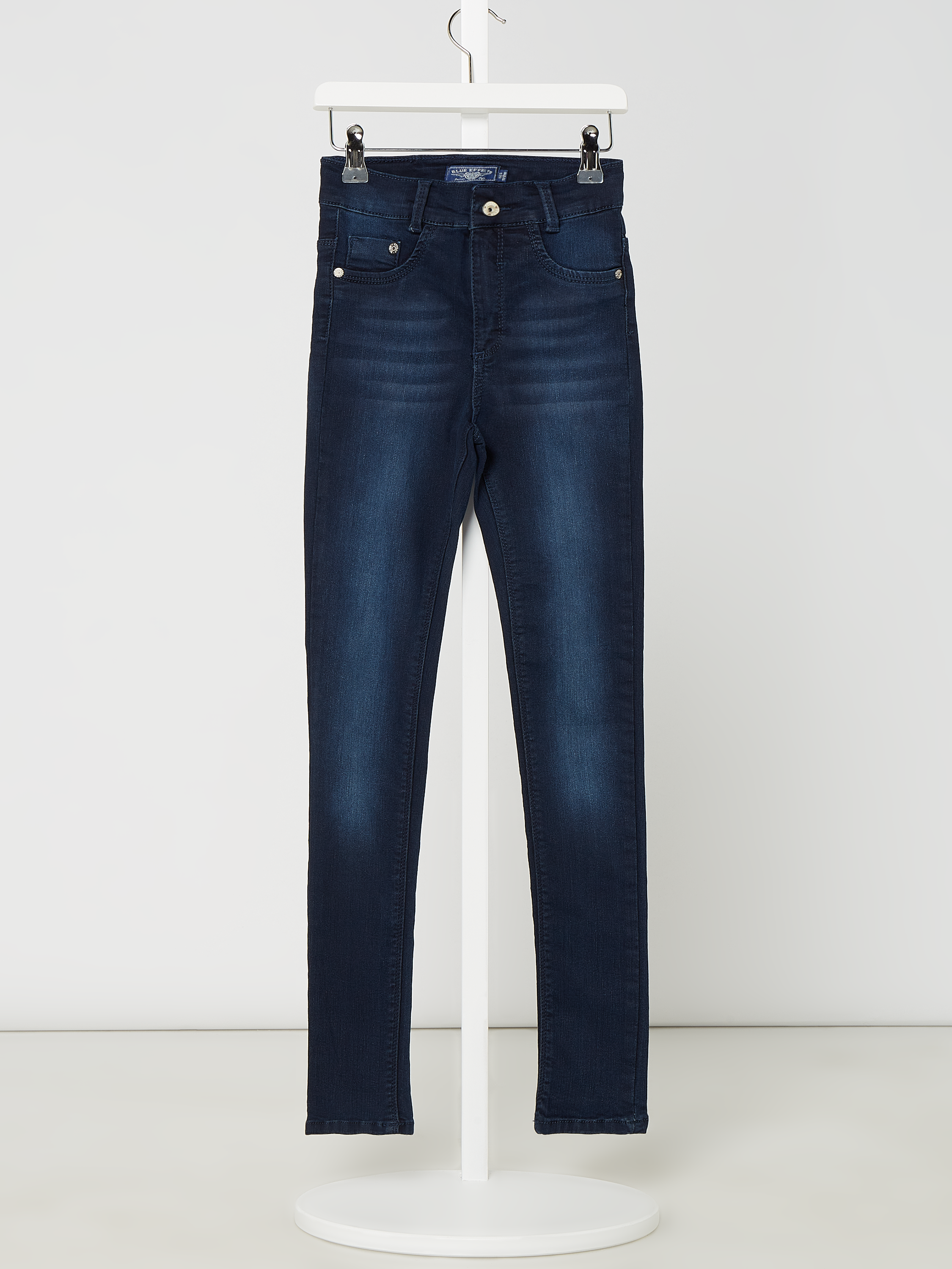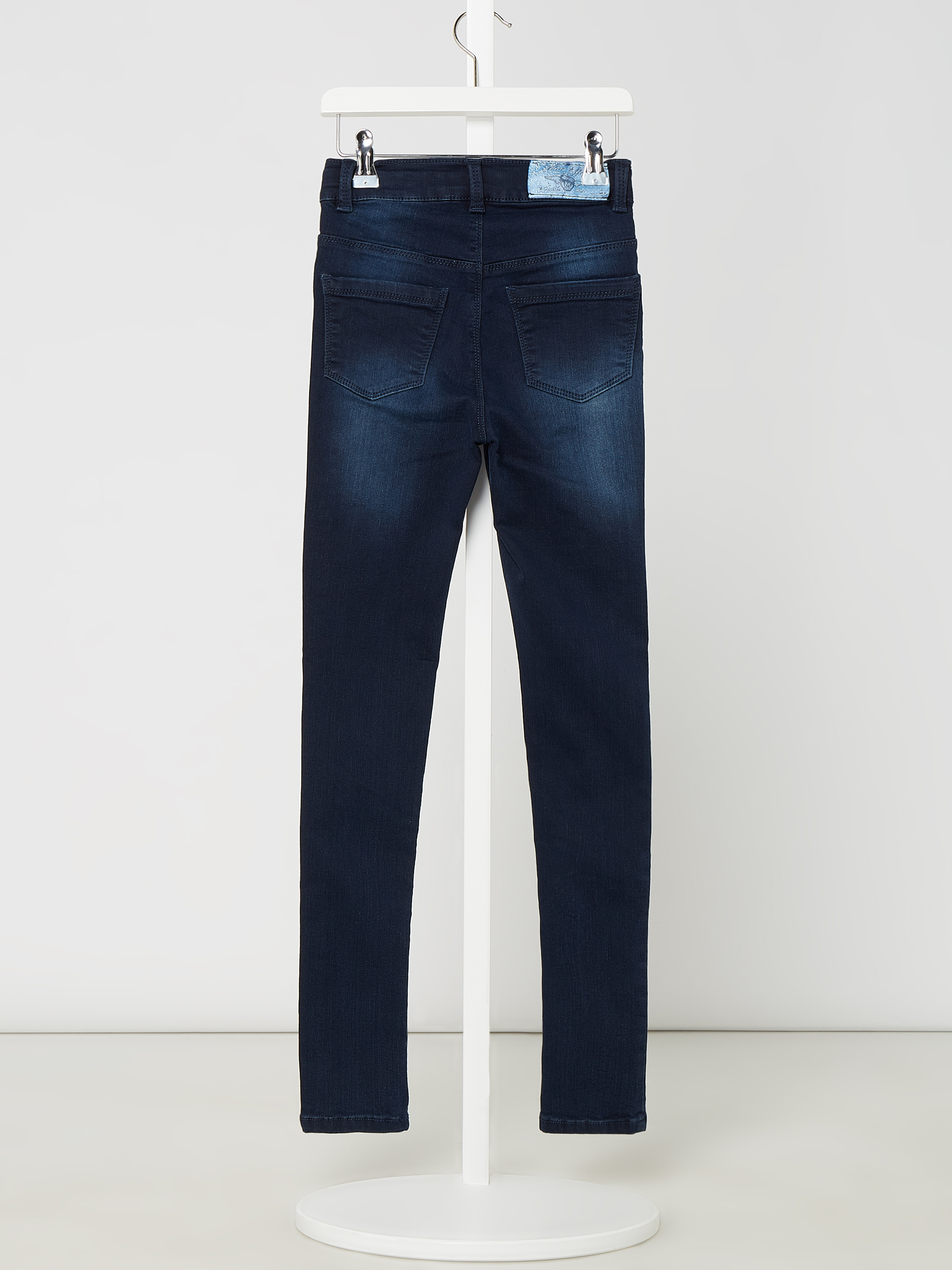 Jeansy z wysokim stanem o kroju slim fit z dodatkiem streczu - jeansowy niebieski