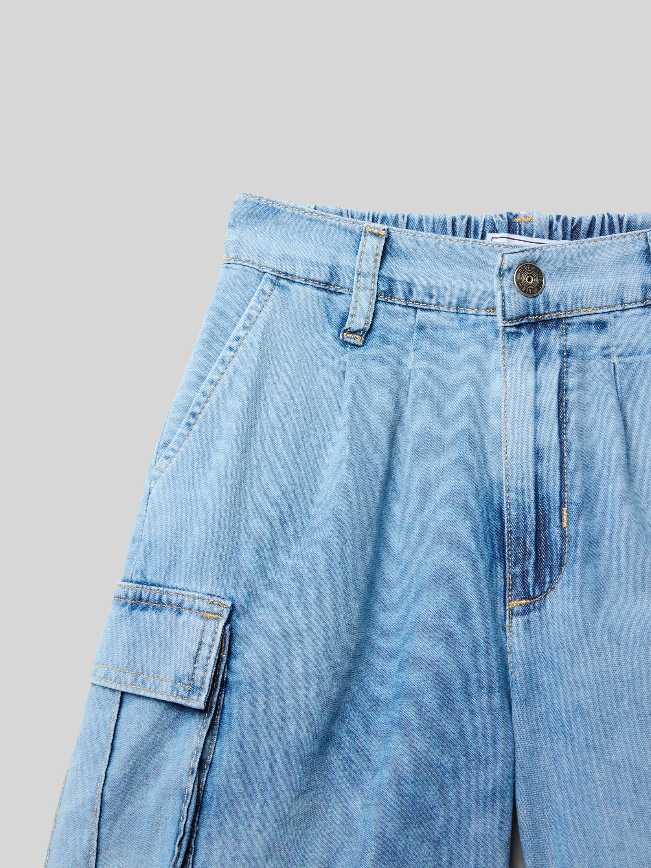 Szorty jeansowe o kroju regular fit z kieszeniami cargo - jasnoniebieski