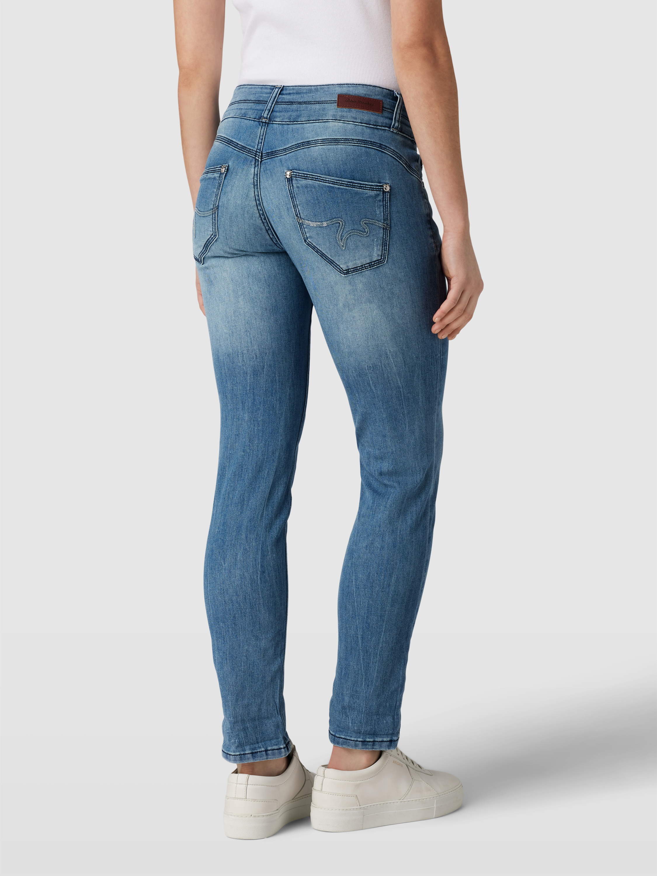 Jeansy o kroju slim fit z 5 kieszeniami model ‘TAMARA’ - niebieski