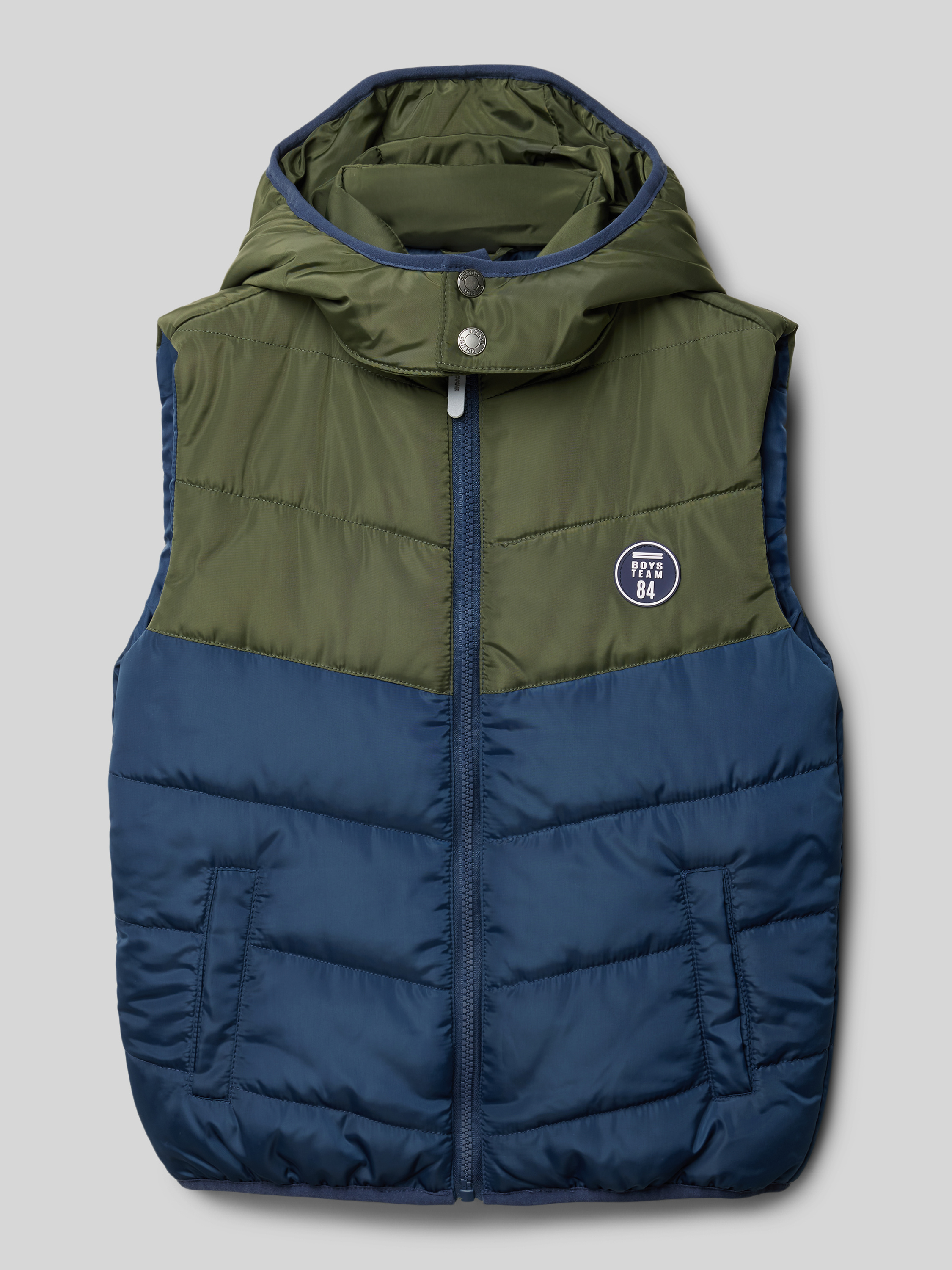 Kamizelka pikowana z kapturem - szaroniebieski