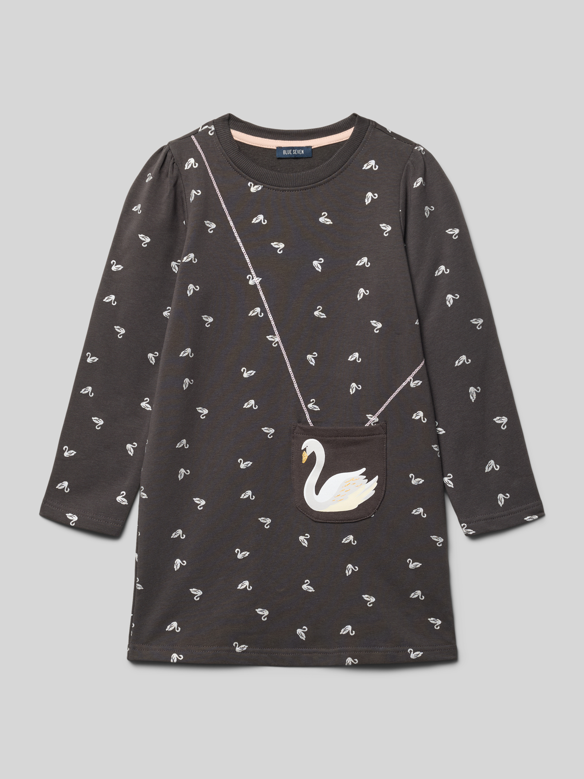 Blue SevenSukienka mini z prążkowanym, okrągłym dekoltem - grafitowy