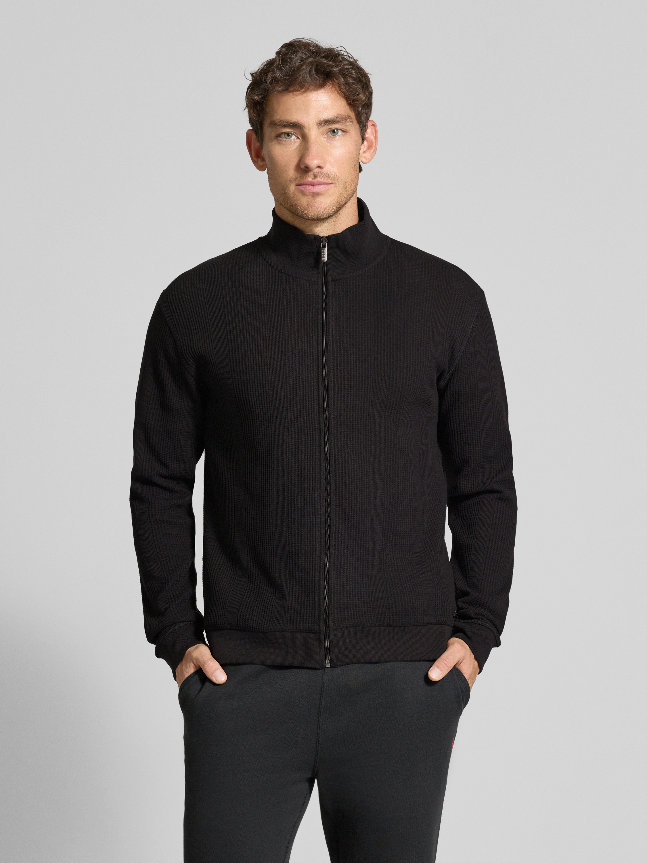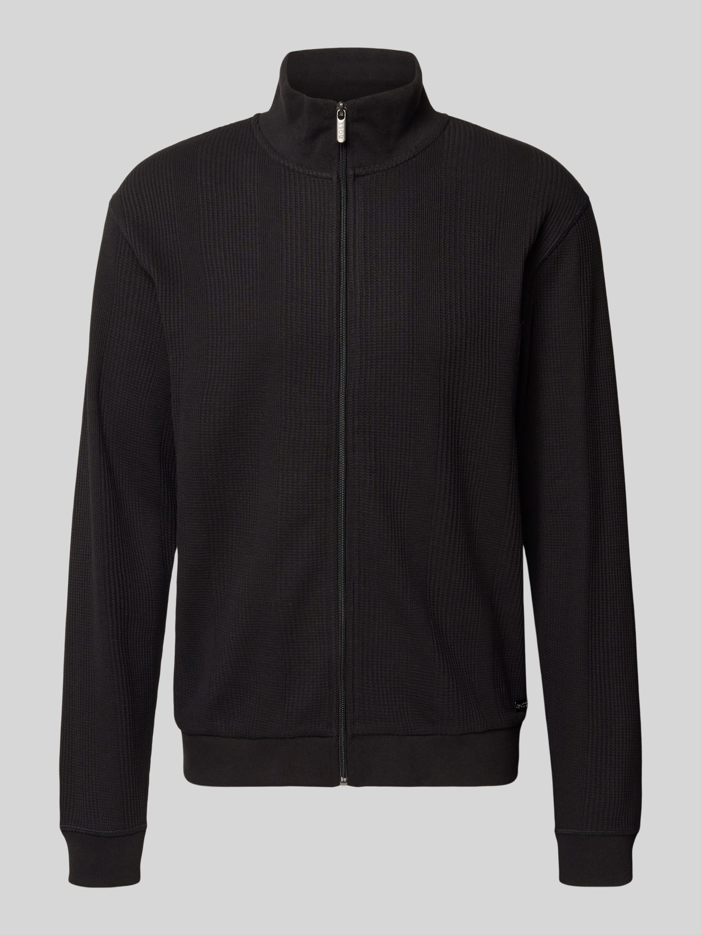 Bluza rozpinana o kroju regular fit z piki bawełnianej - czarny