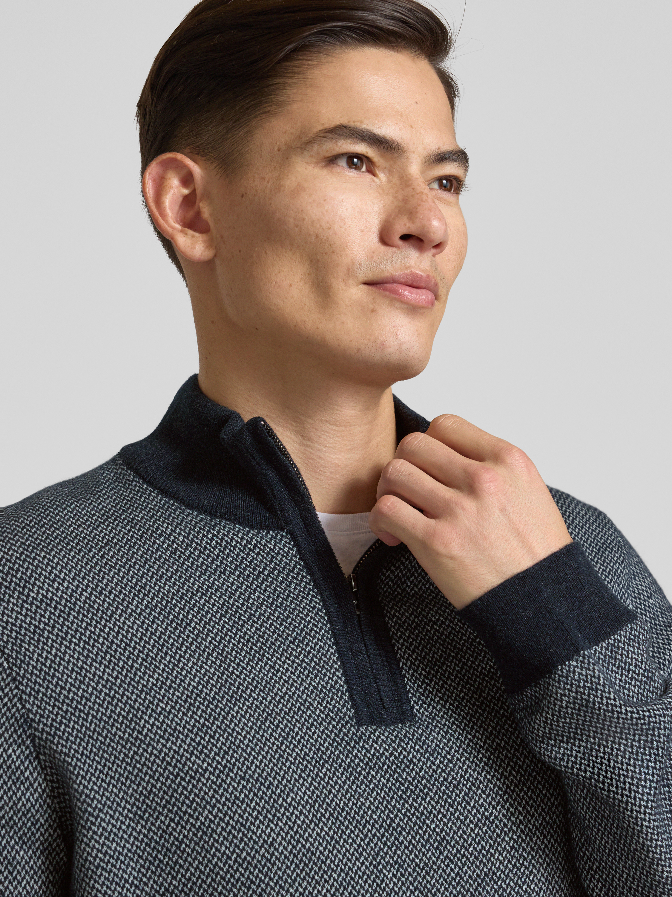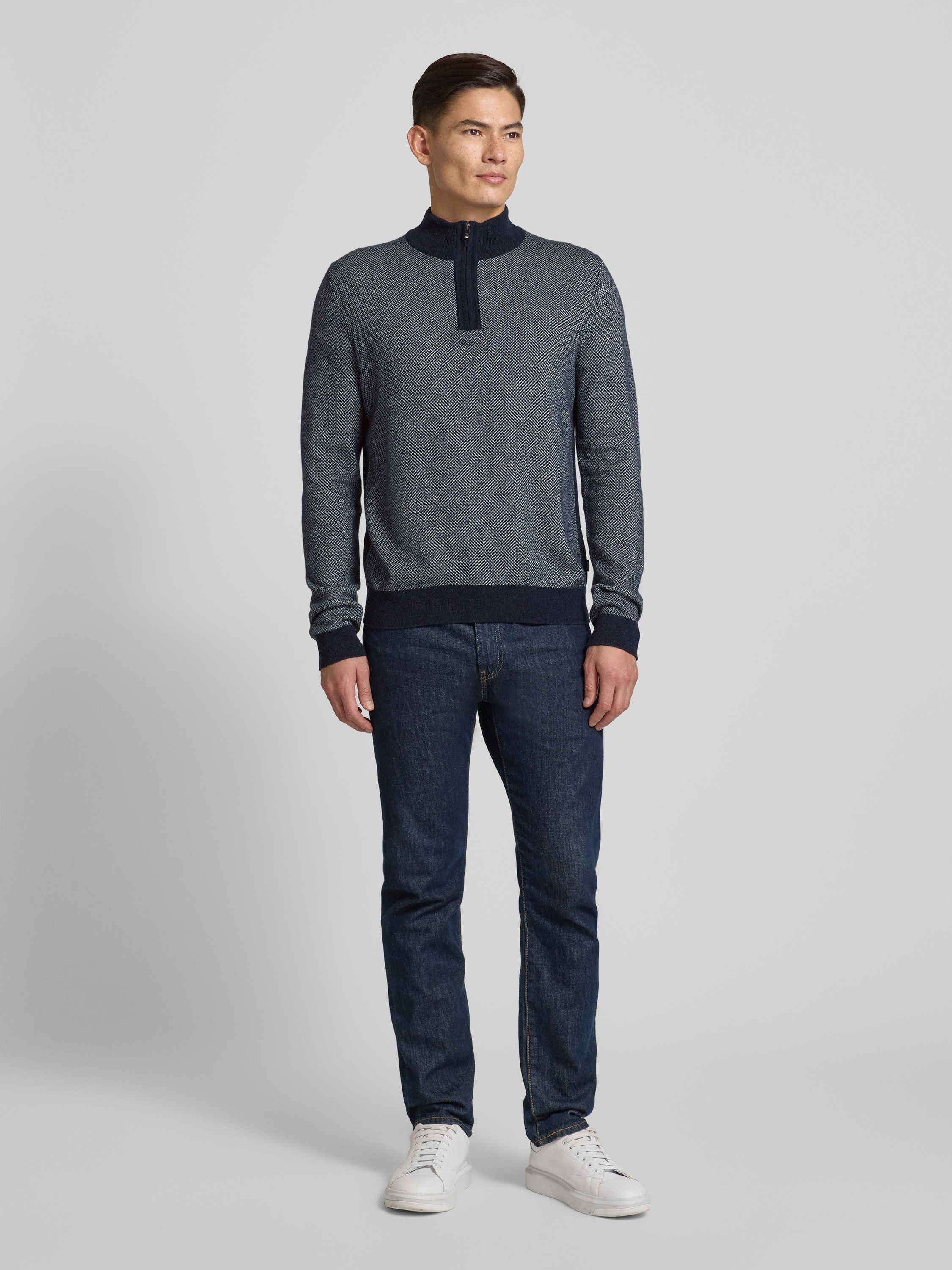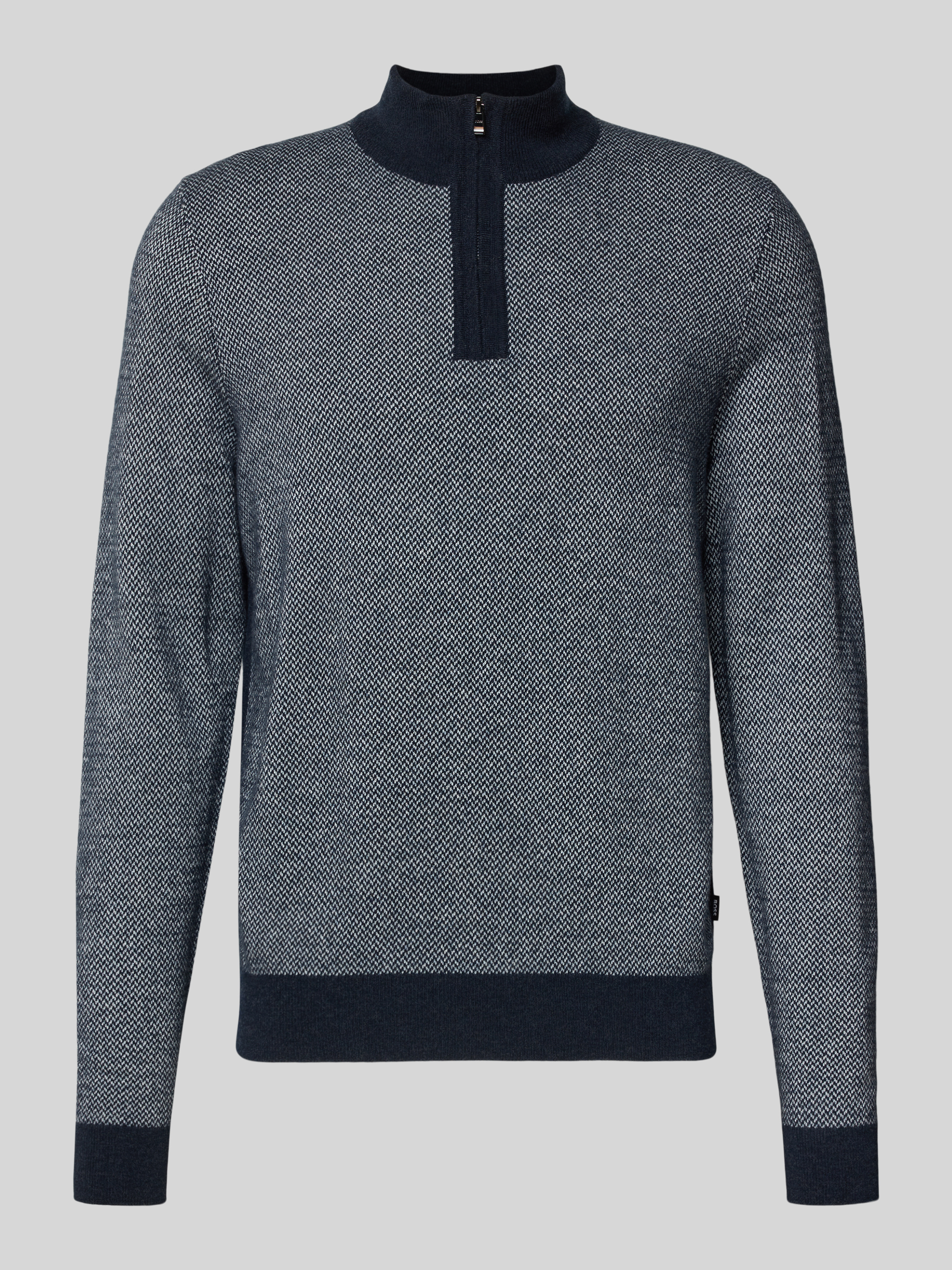 Bluza z kołnierzem o kroju regular fit z mieszanki żywej wełny i bawełny model ‘HETTORE’ - granatowy