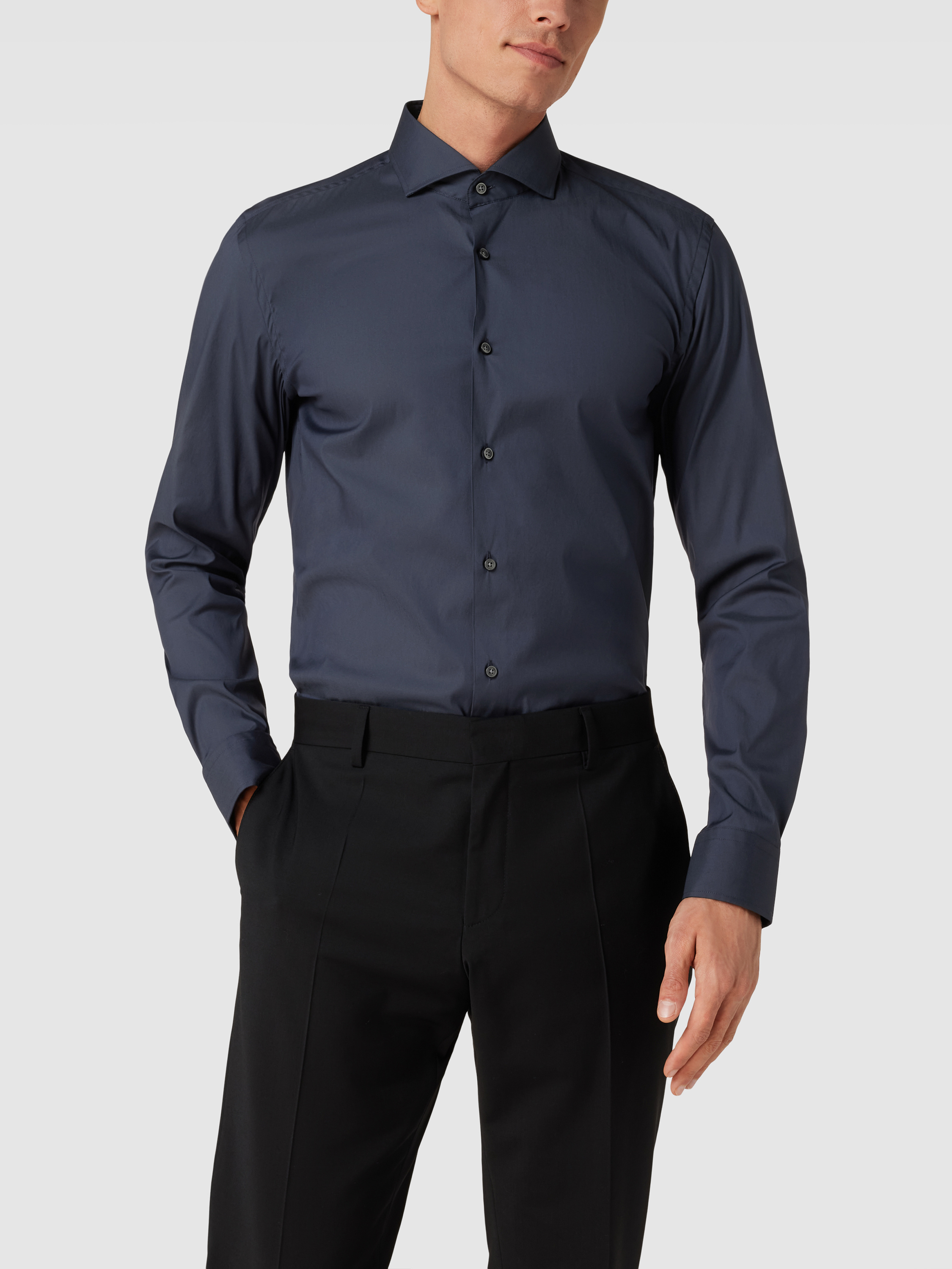 Koszula biznesowa o kroju slim fit z dodatkiem streczu model ‘Hank Hai’ - granatowy