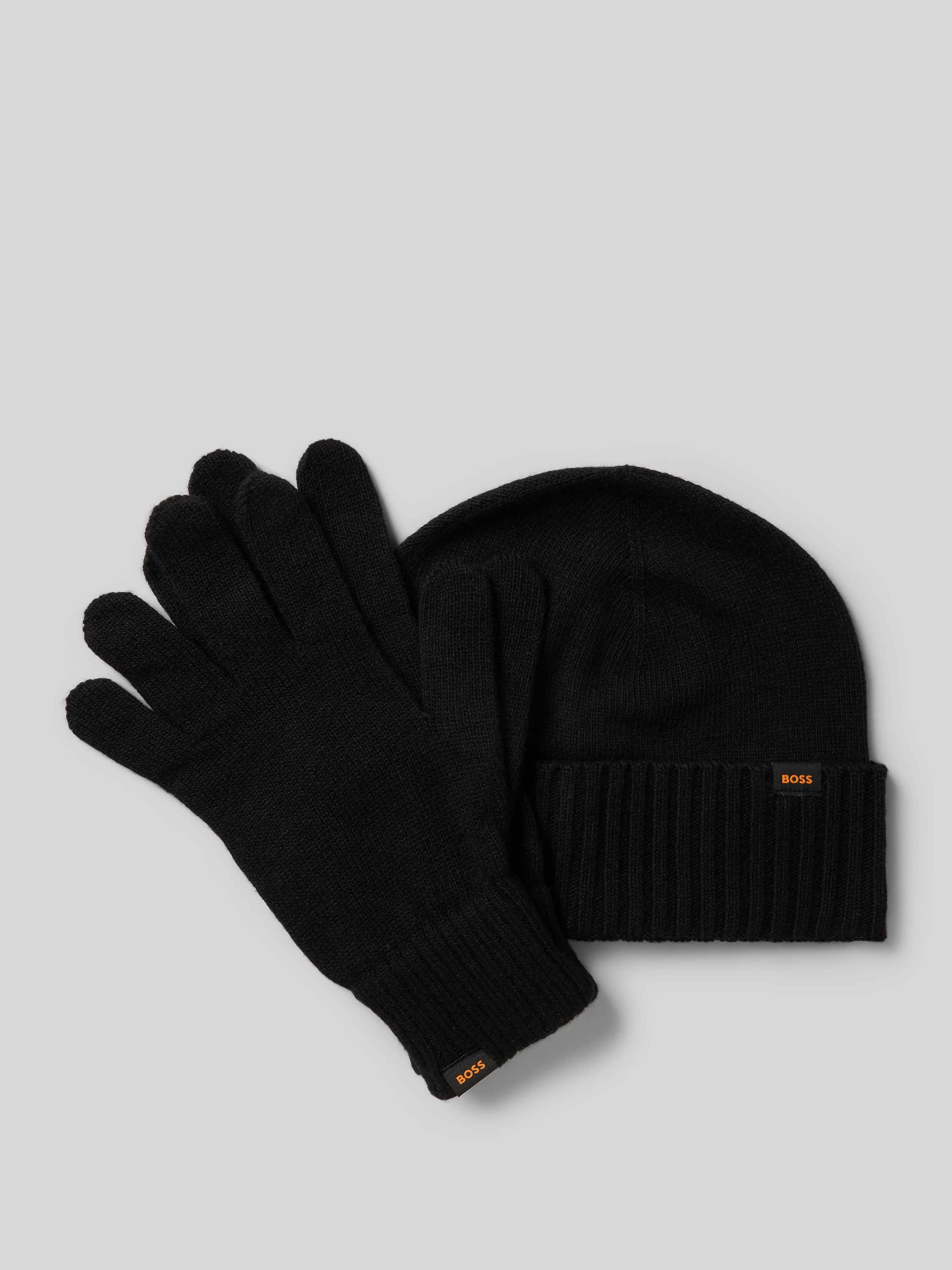 Rękawiczki i szal z mieszanki wełny w zestawie model ‘KALIPSO’ - czarny