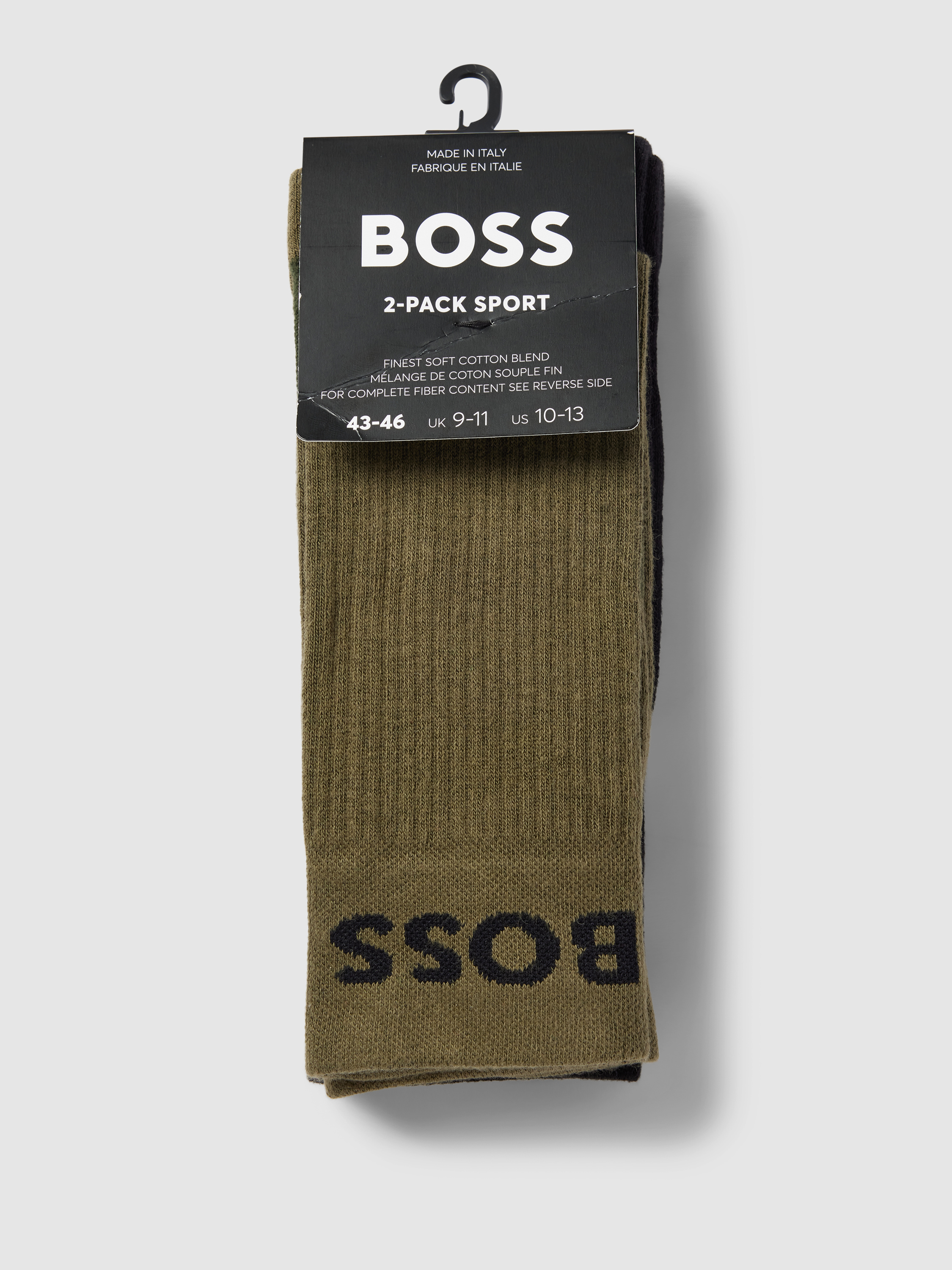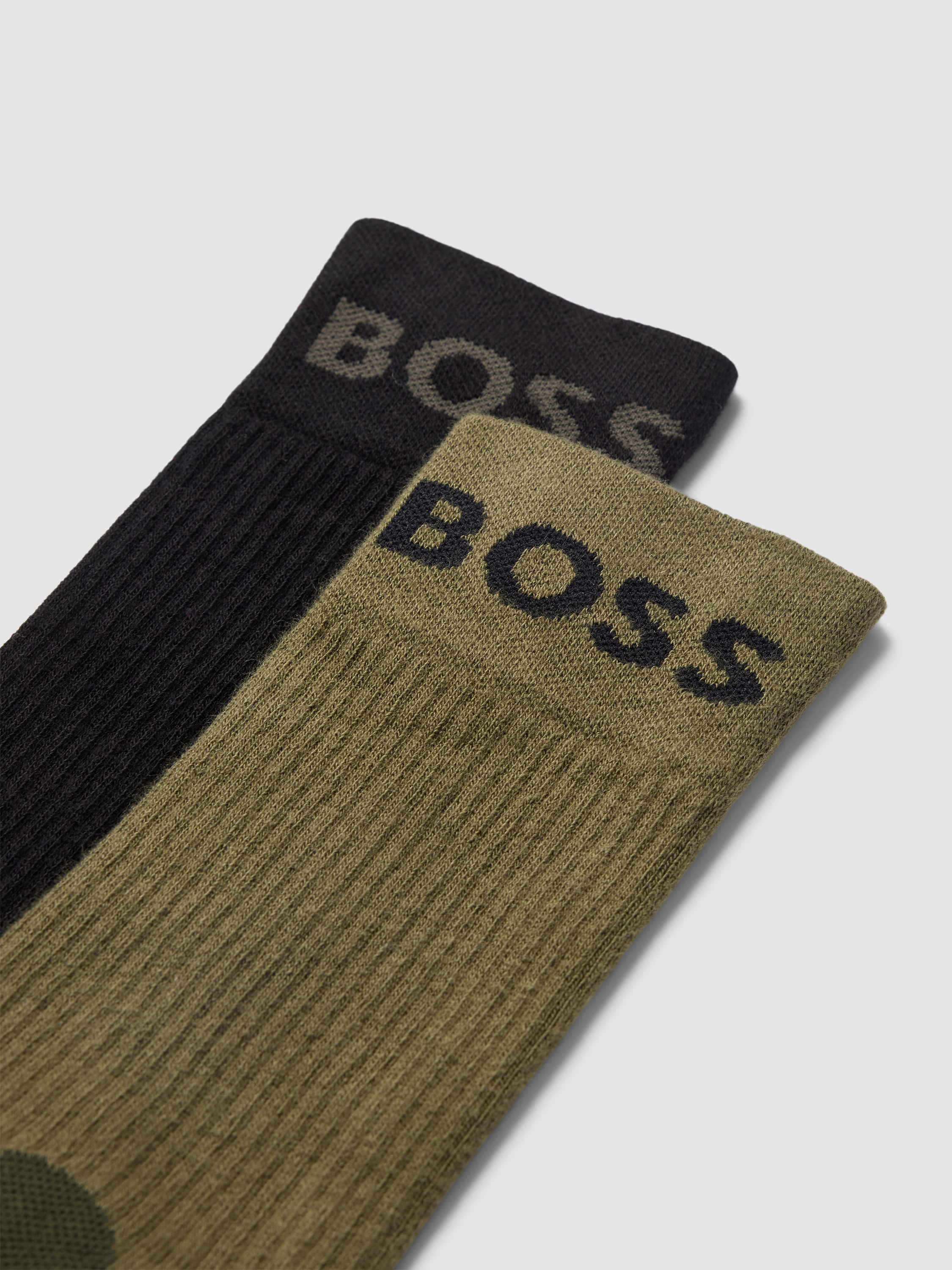 Skarpety z napisem z logo w zestawie 2 szt. model ‘Sport’ - oliwkowy