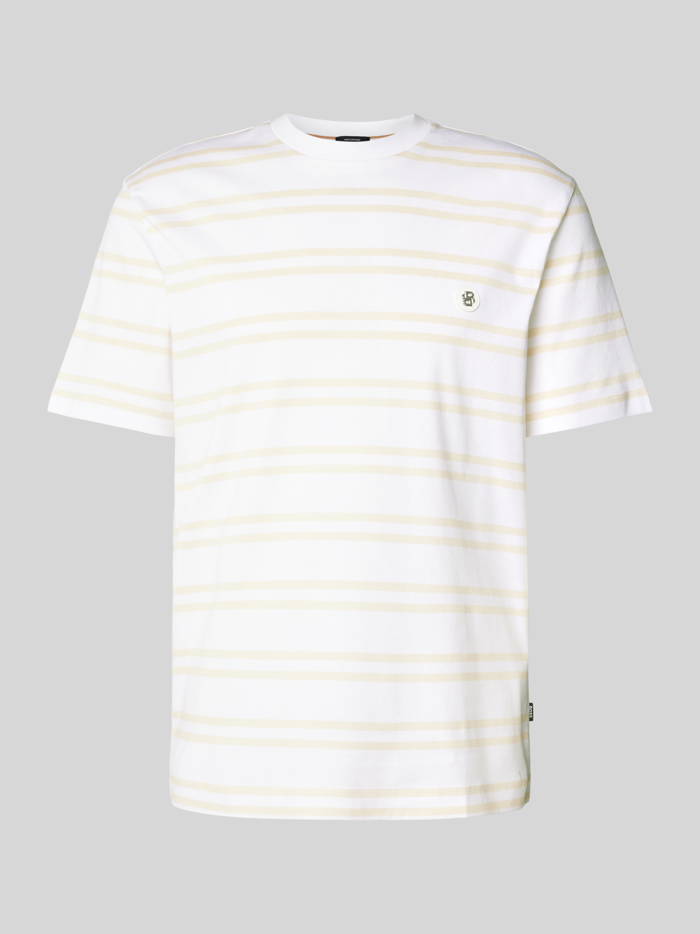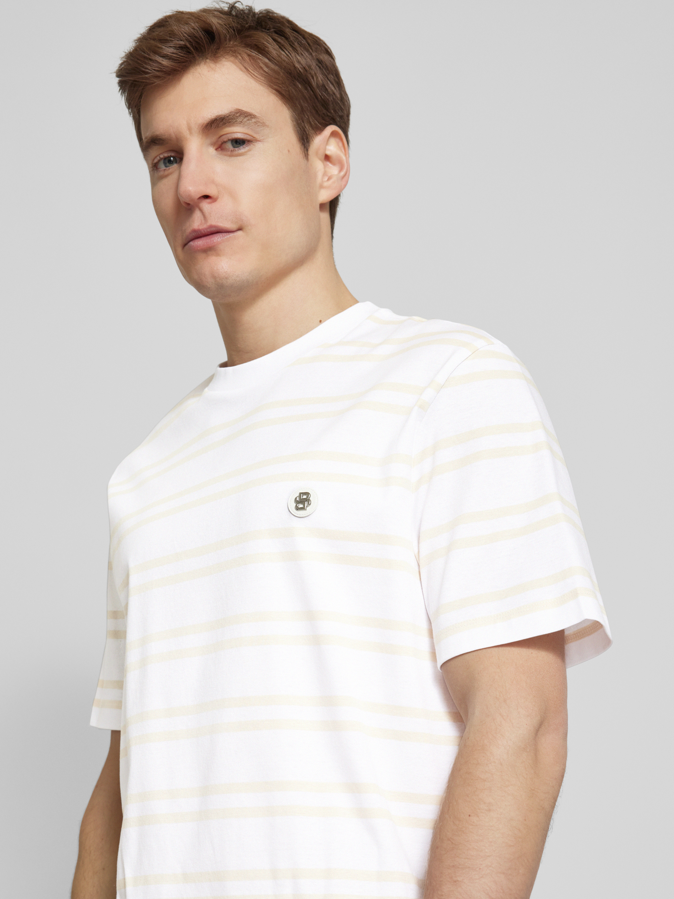 T-shirt z detalem z logo model ‘Taut’ - złamany biały