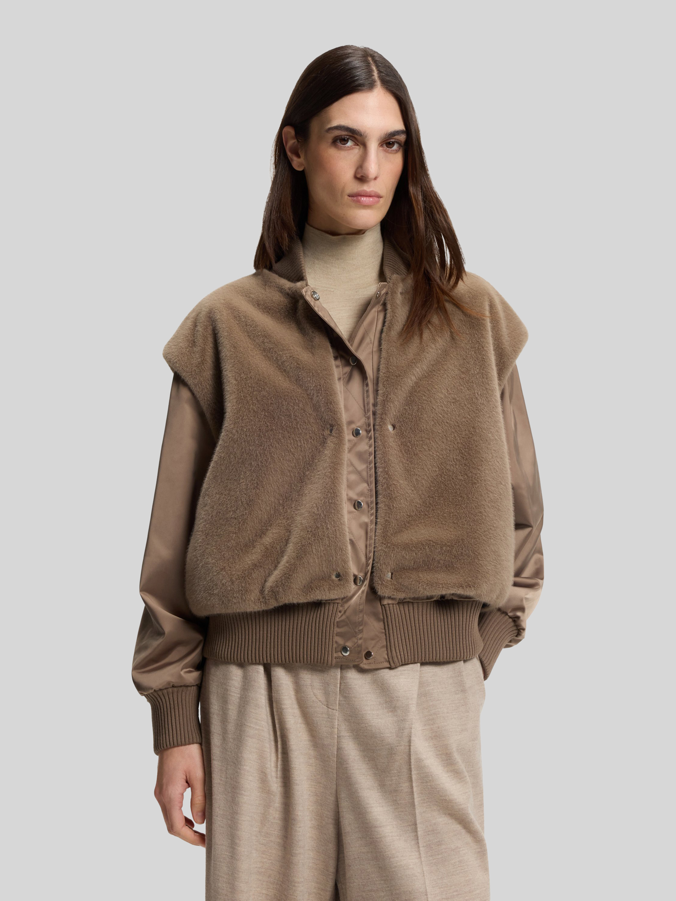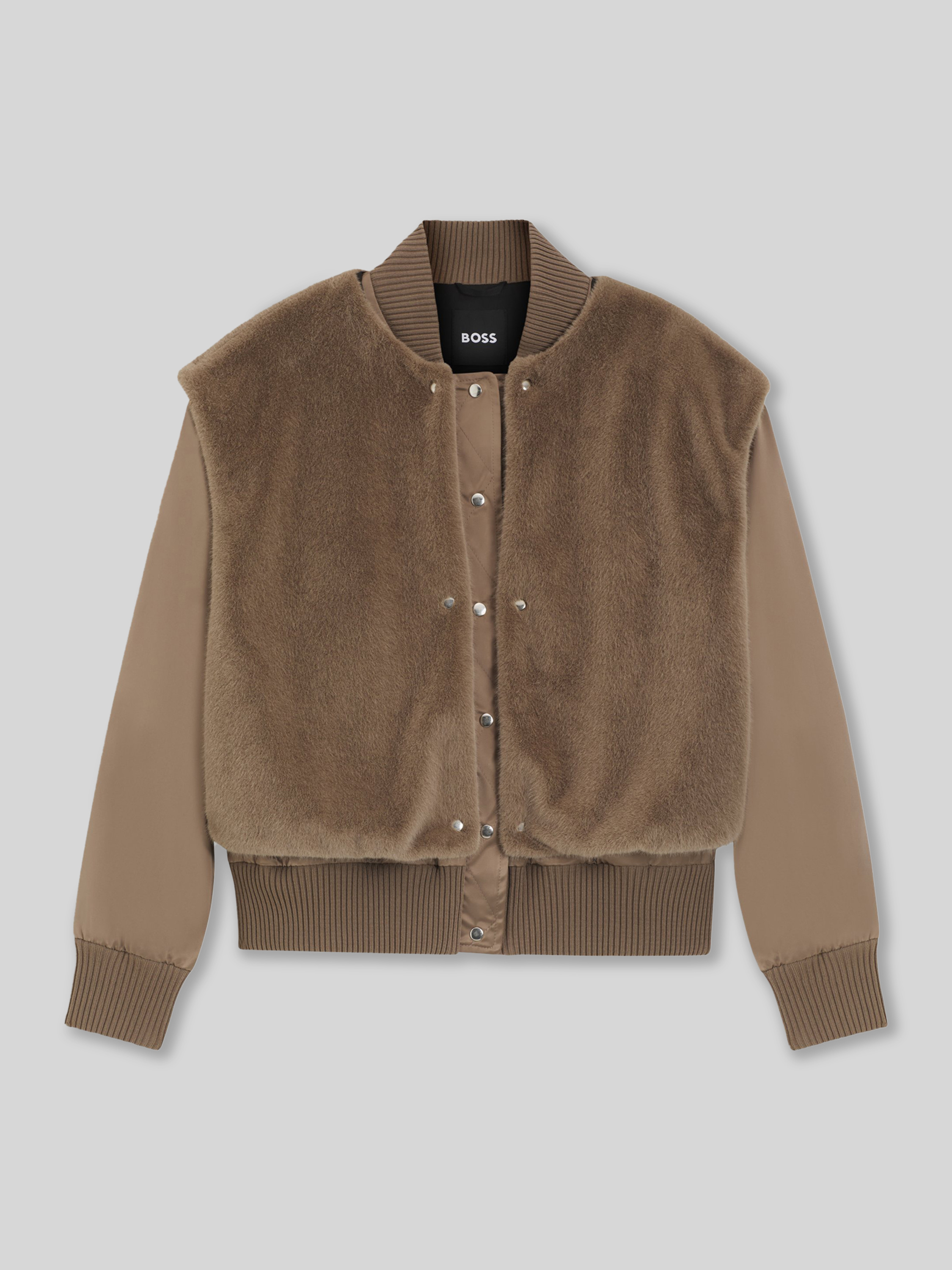 Bomberka o kroju regular fit z odpinaną kamizelką z imitacji futra - ziemisty brązowy