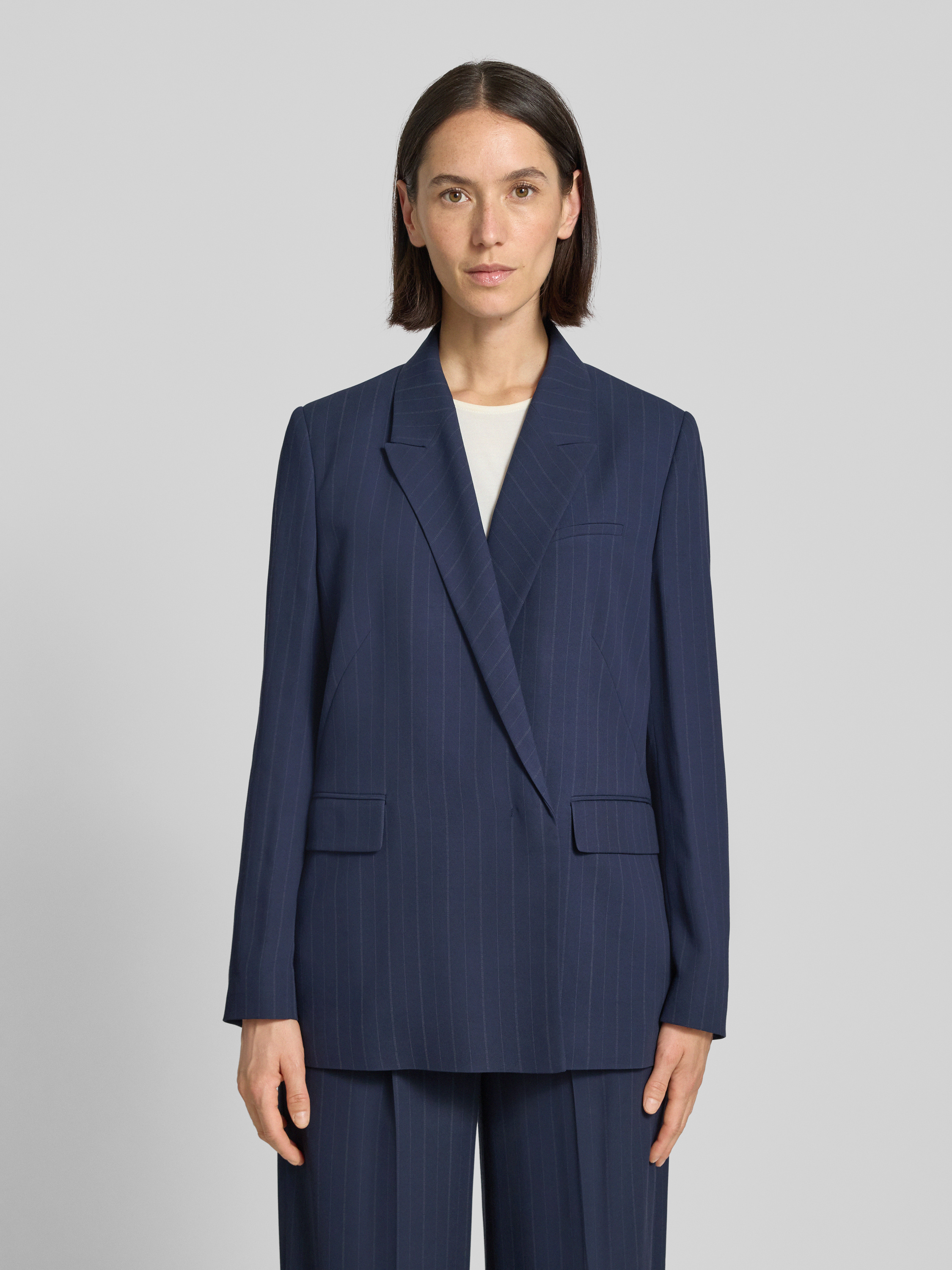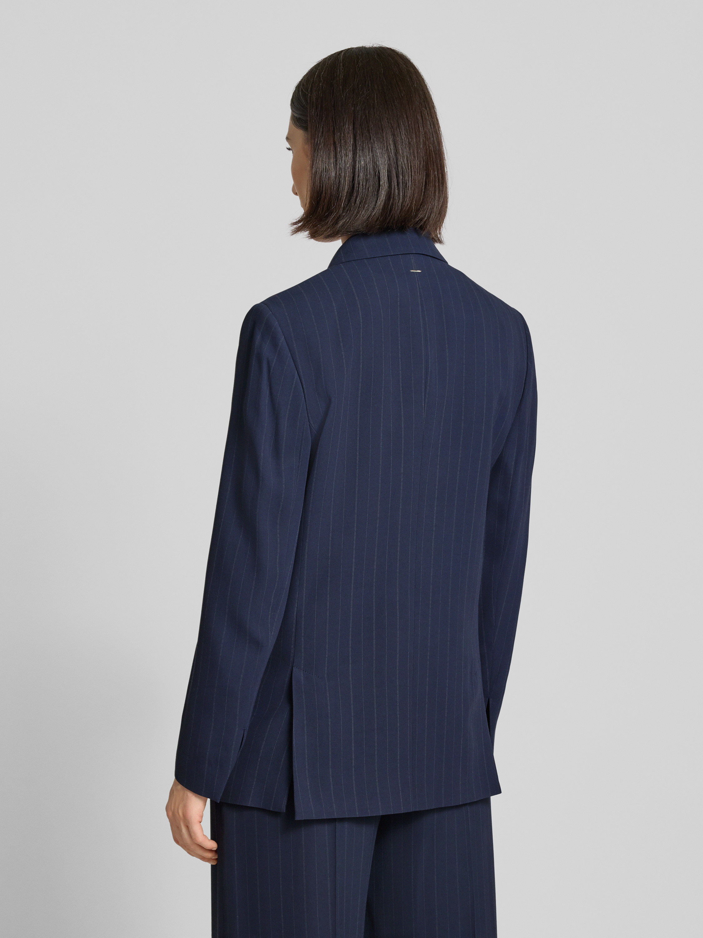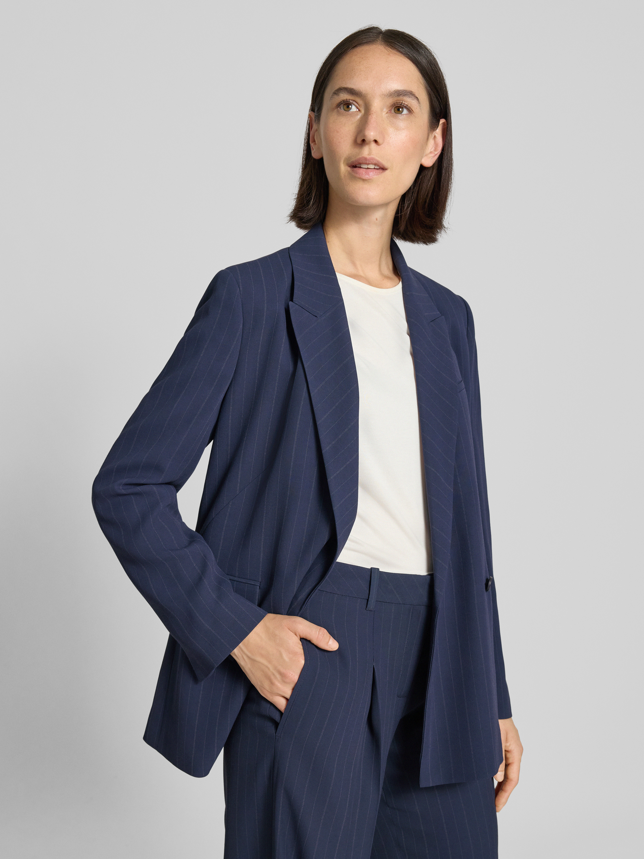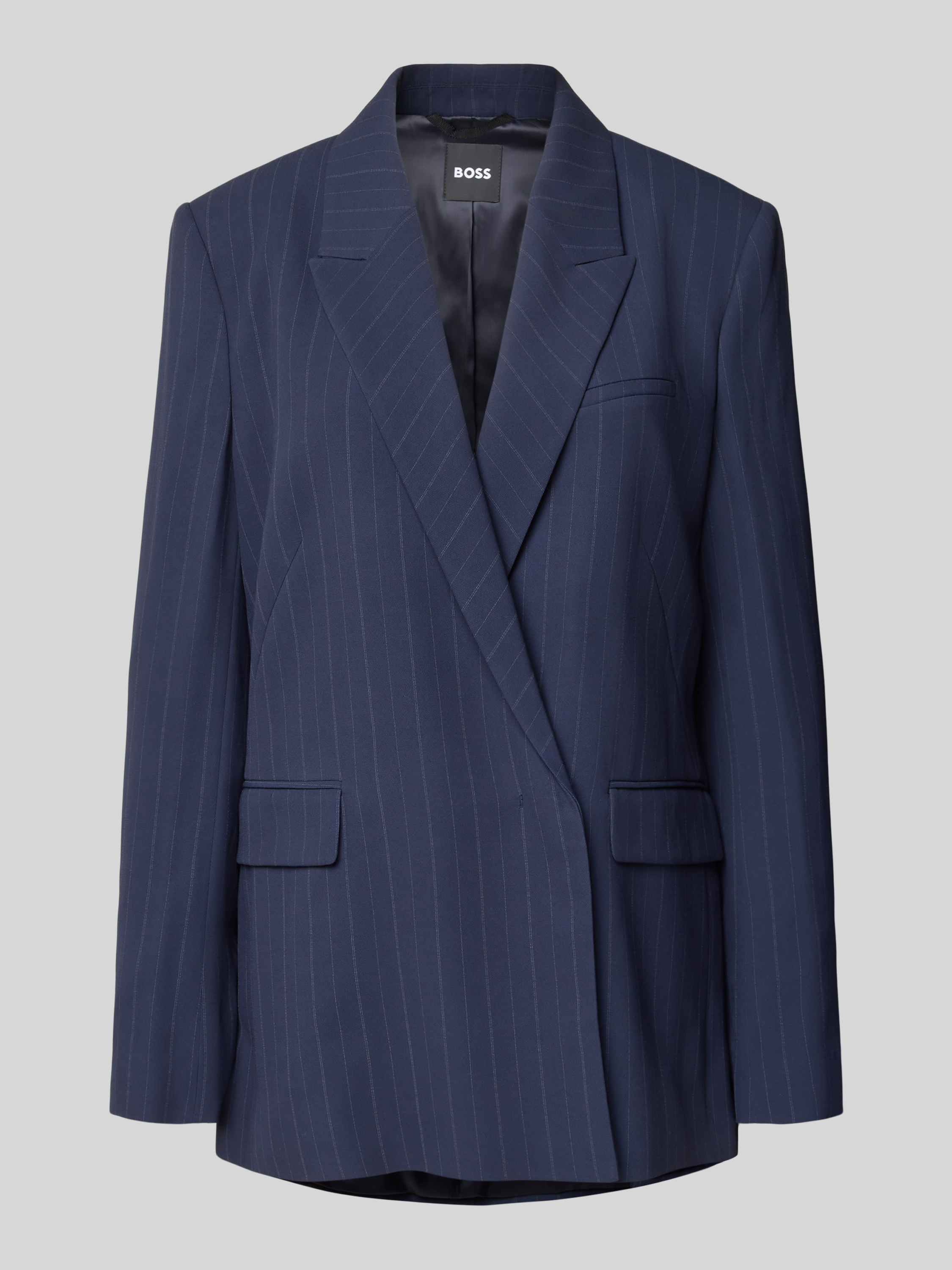 Długi żakiet o kroju relaxed fit w cienkie prążki - granatowy