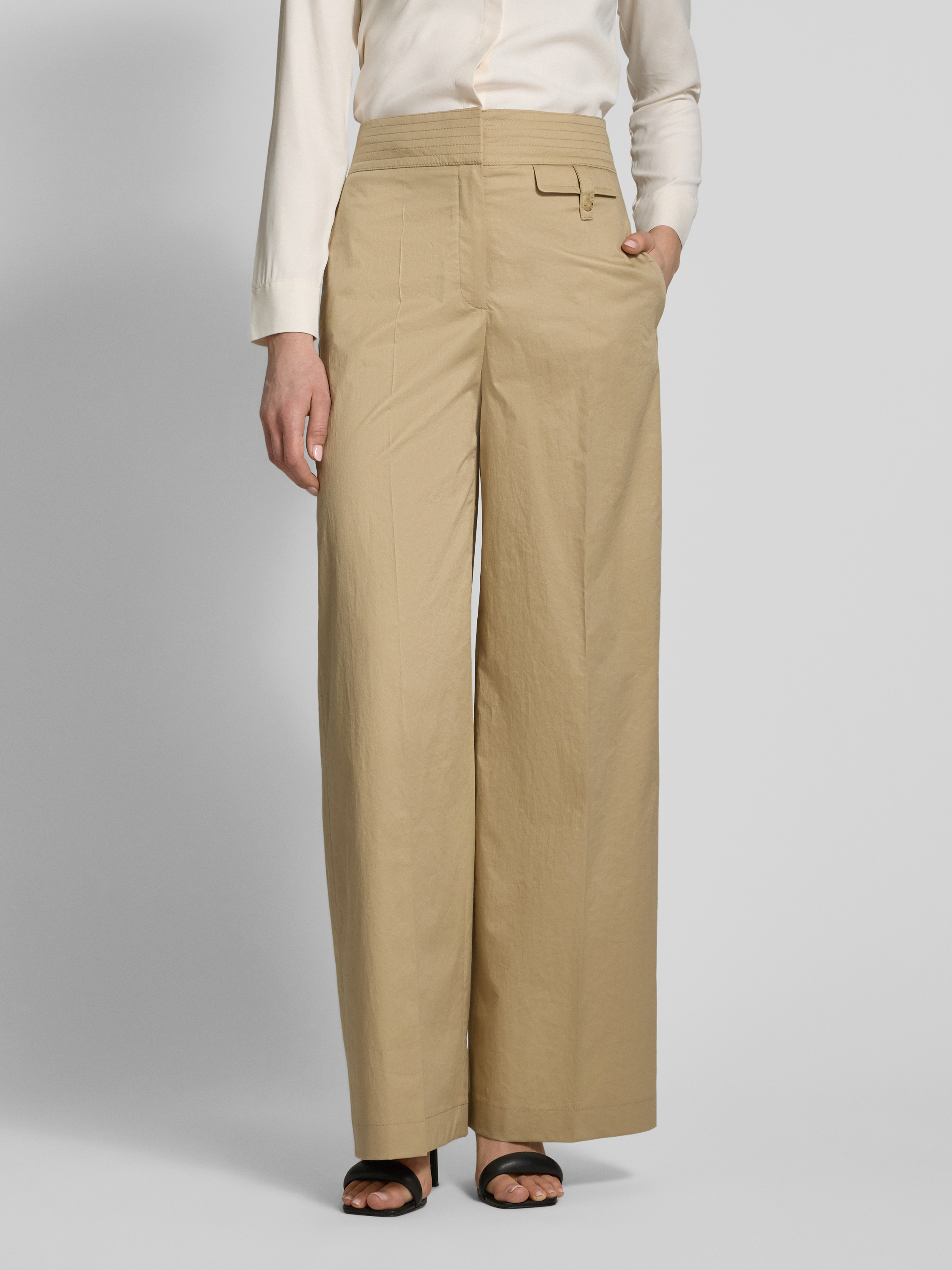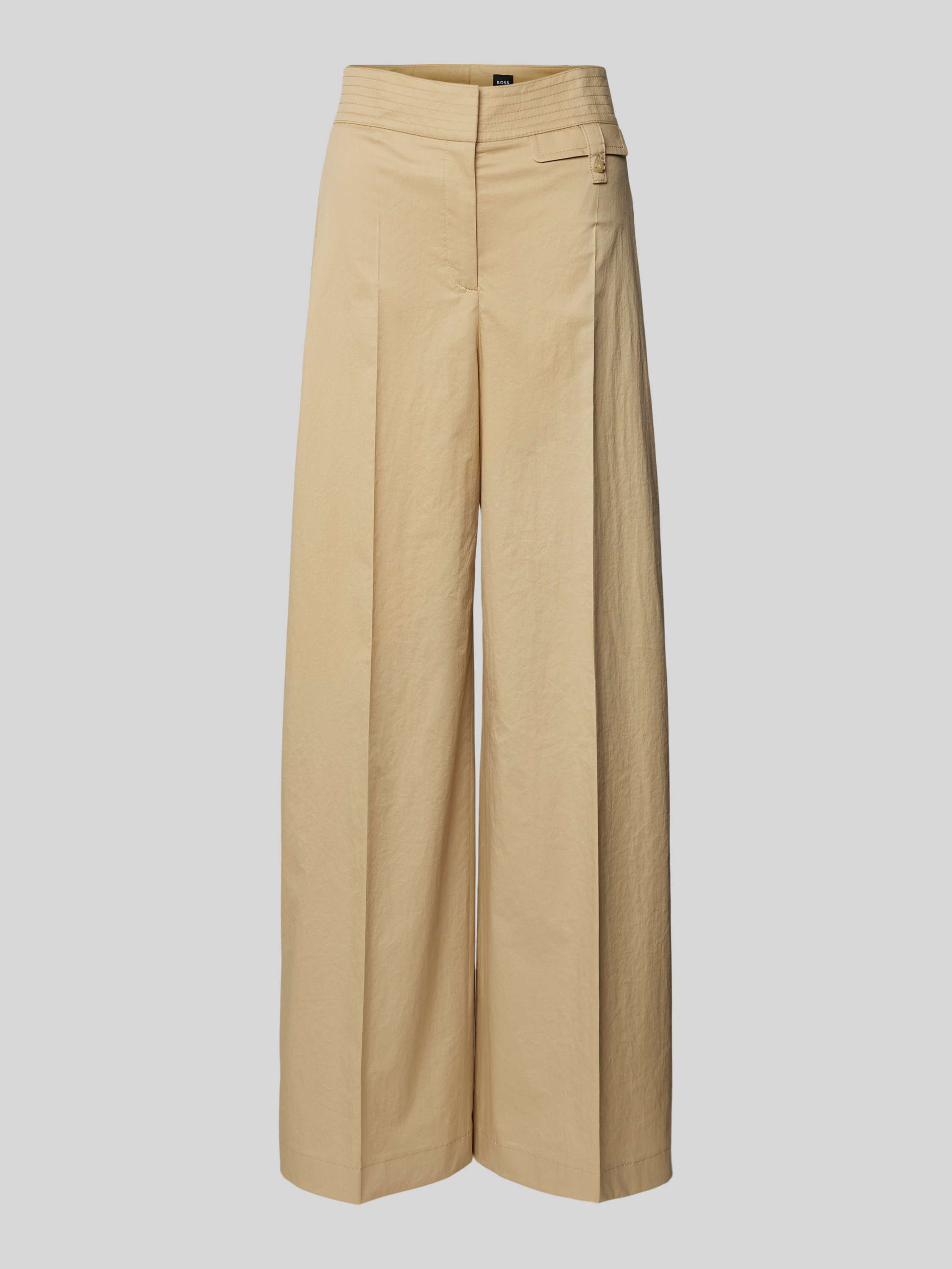 Spodnie materiałowe z szeroką nogawką w kant model ‘Tiana’ - beżowy