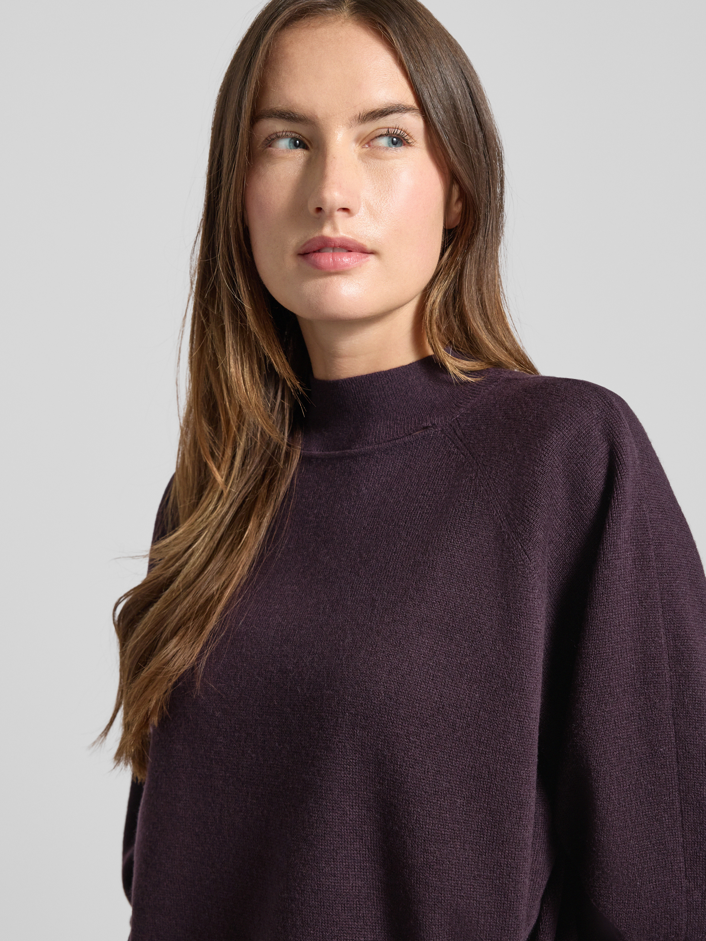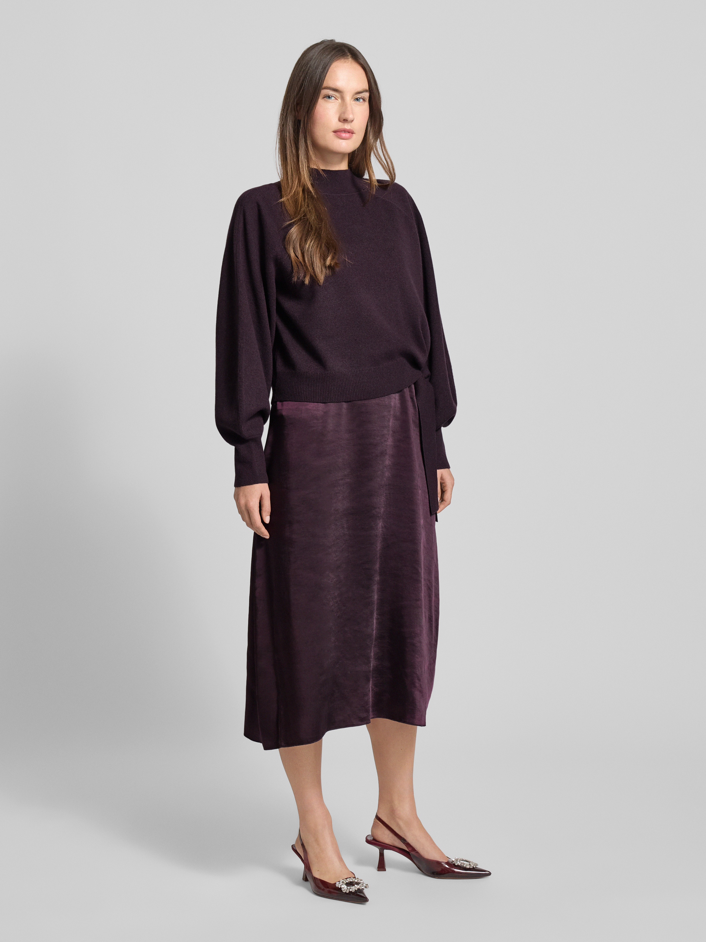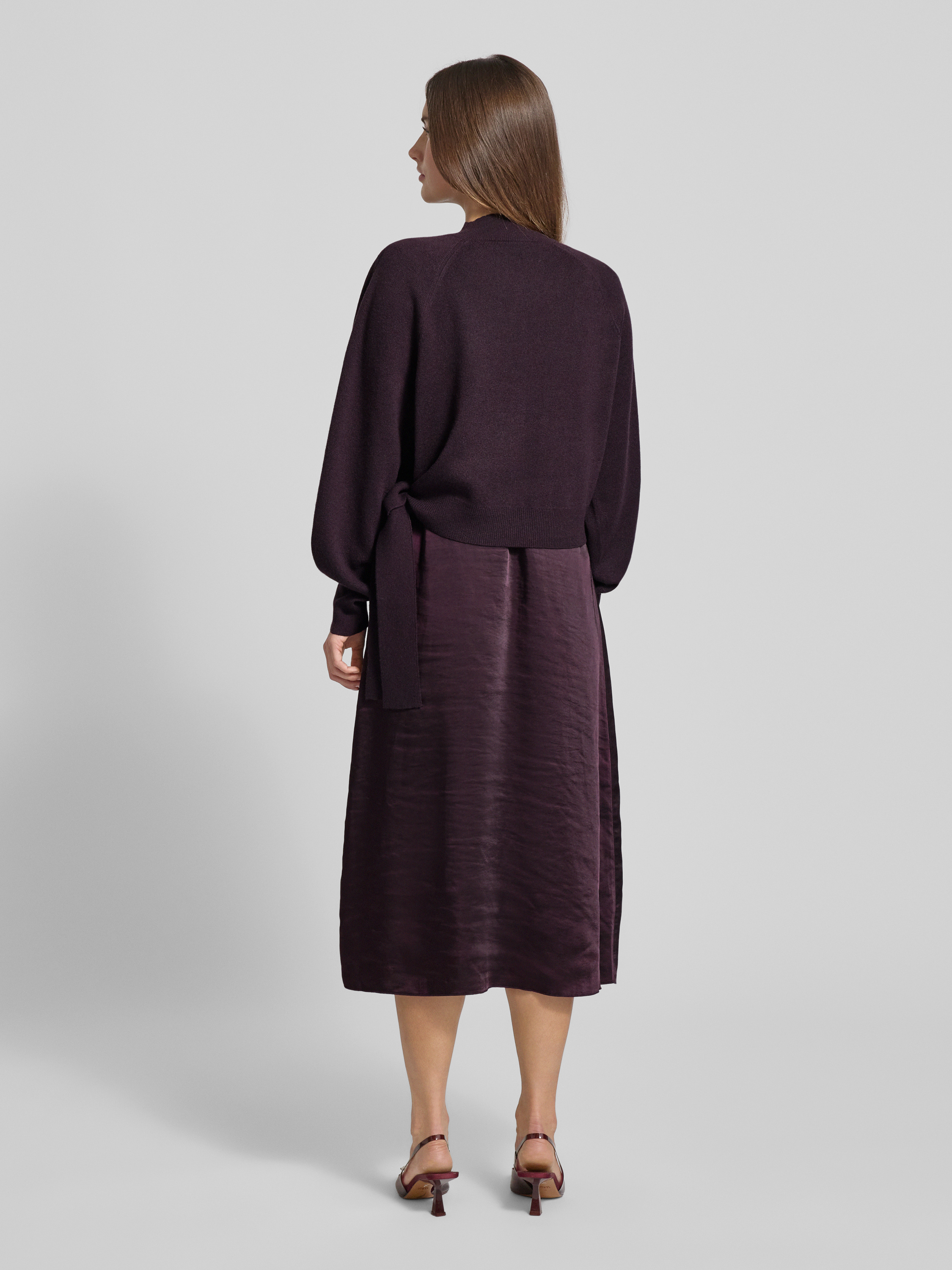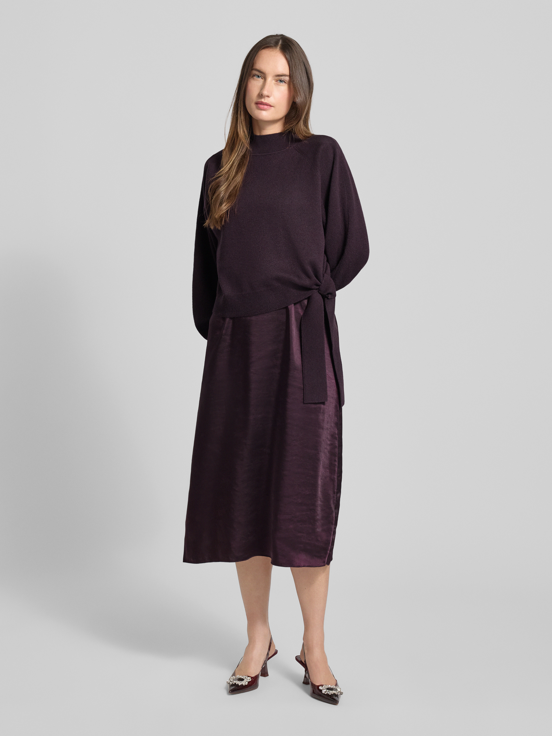 Sukienka casualowa o dopasowanym kroju z mieszanki żywej wełny i kaszmiru model ‘FIALINA’ - oberżynowy