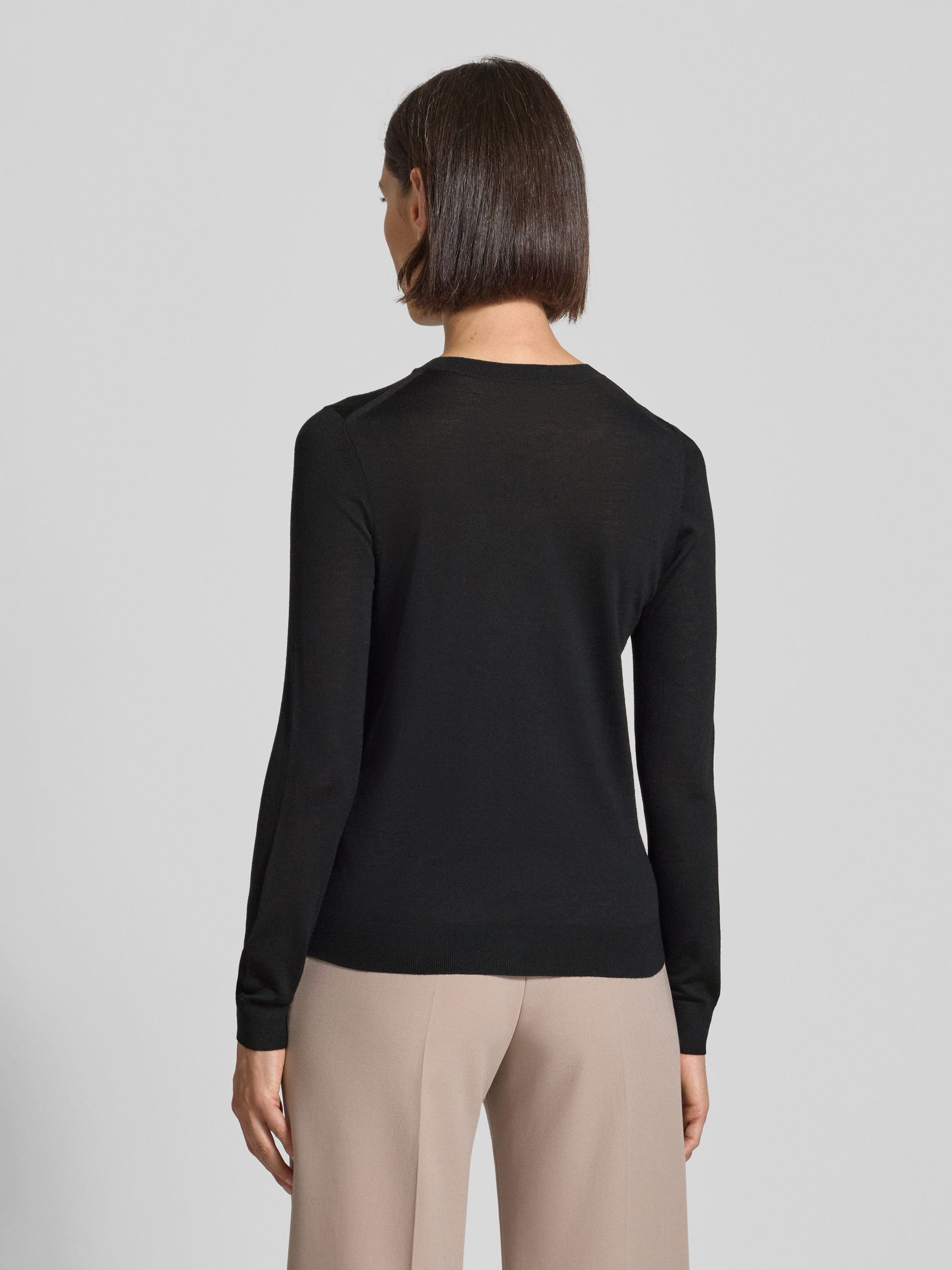 Sweter o kroju regular fit z czystej, żywej wełny model ‘FERPINA’ - czarny