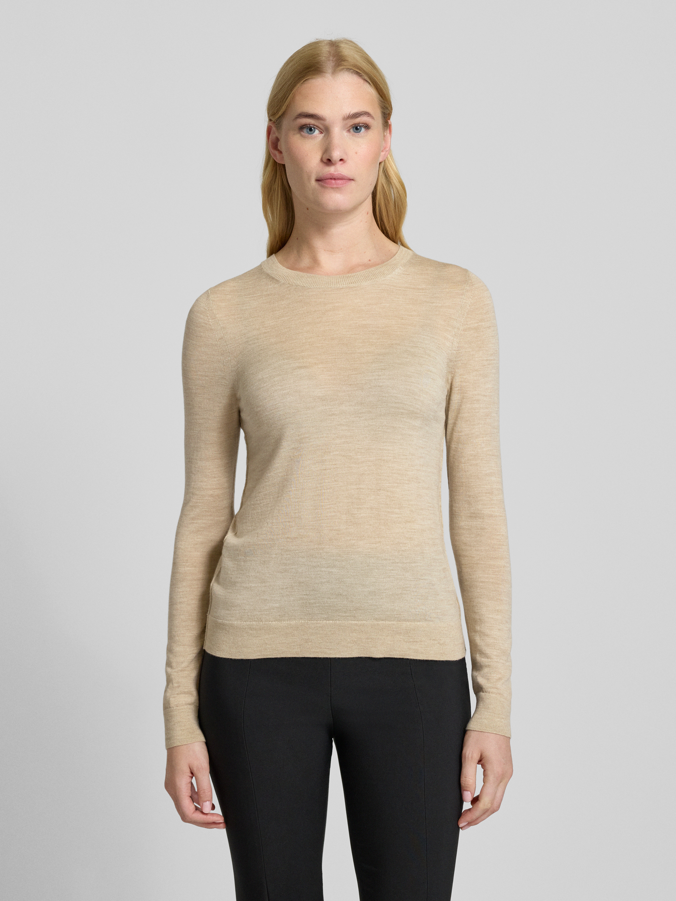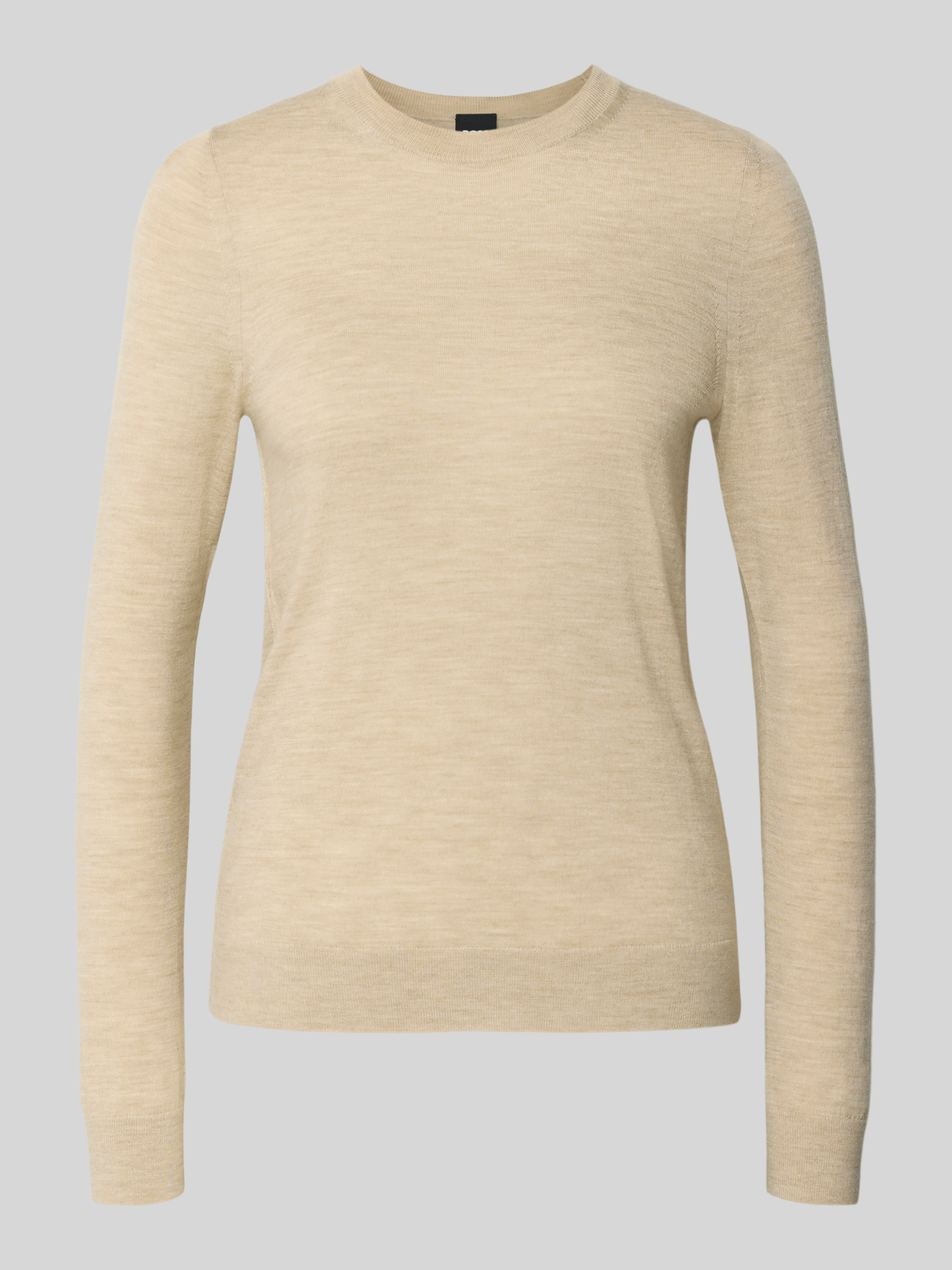 Sweter o kroju regular fit z dzianiny z czystej, żywej wełny model ‘FERPINA’ - beżowy melanż