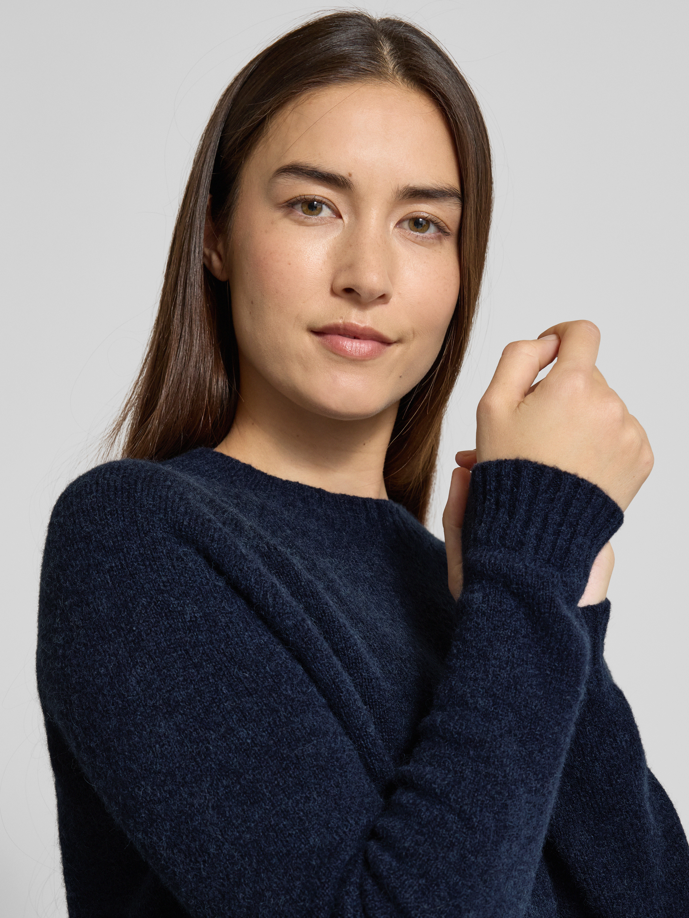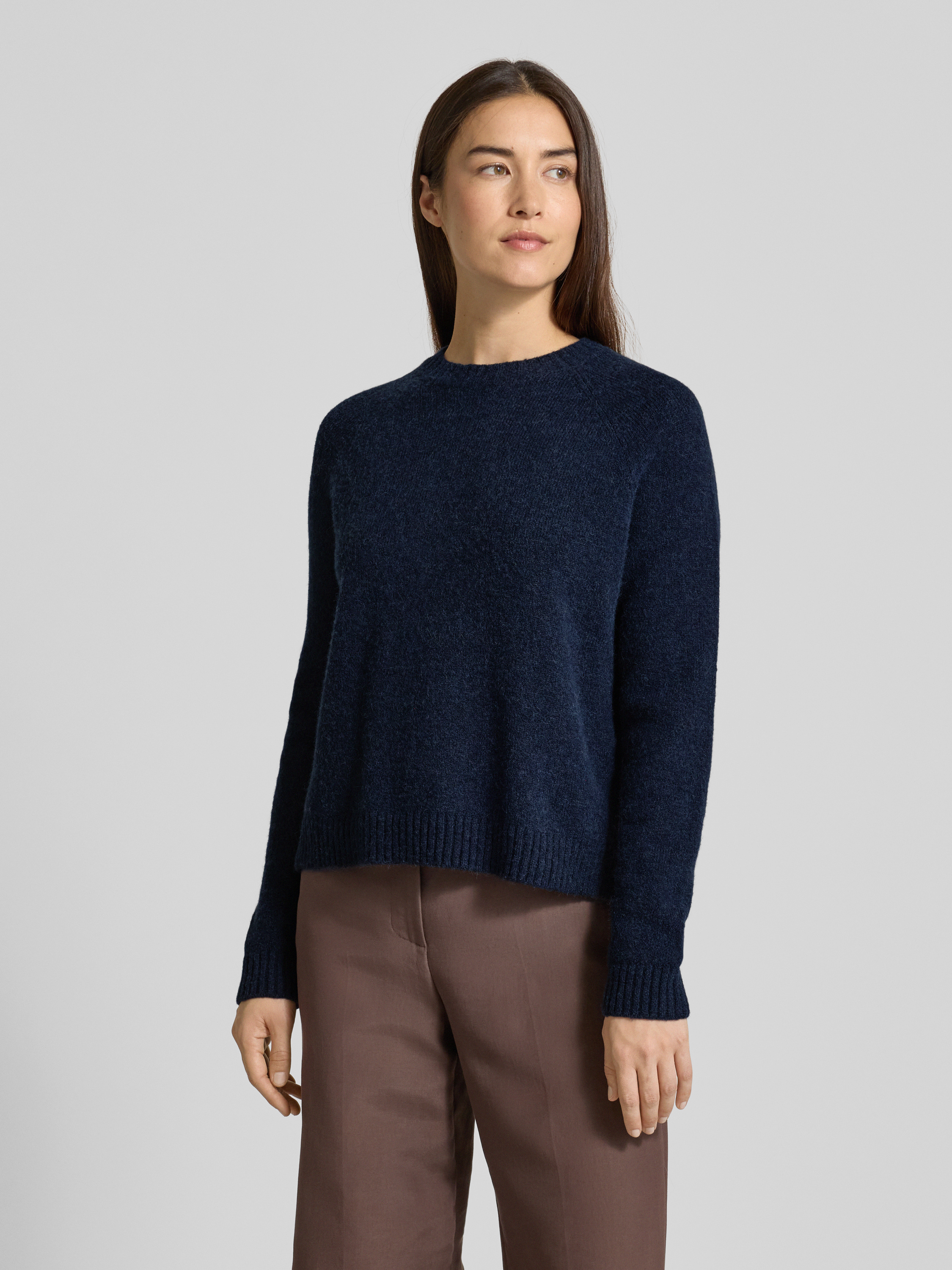 Sweter z dzianiny o kroju regular fit z mieszanki wełny z alpaki model ‘FEBISAN’ - granatowy