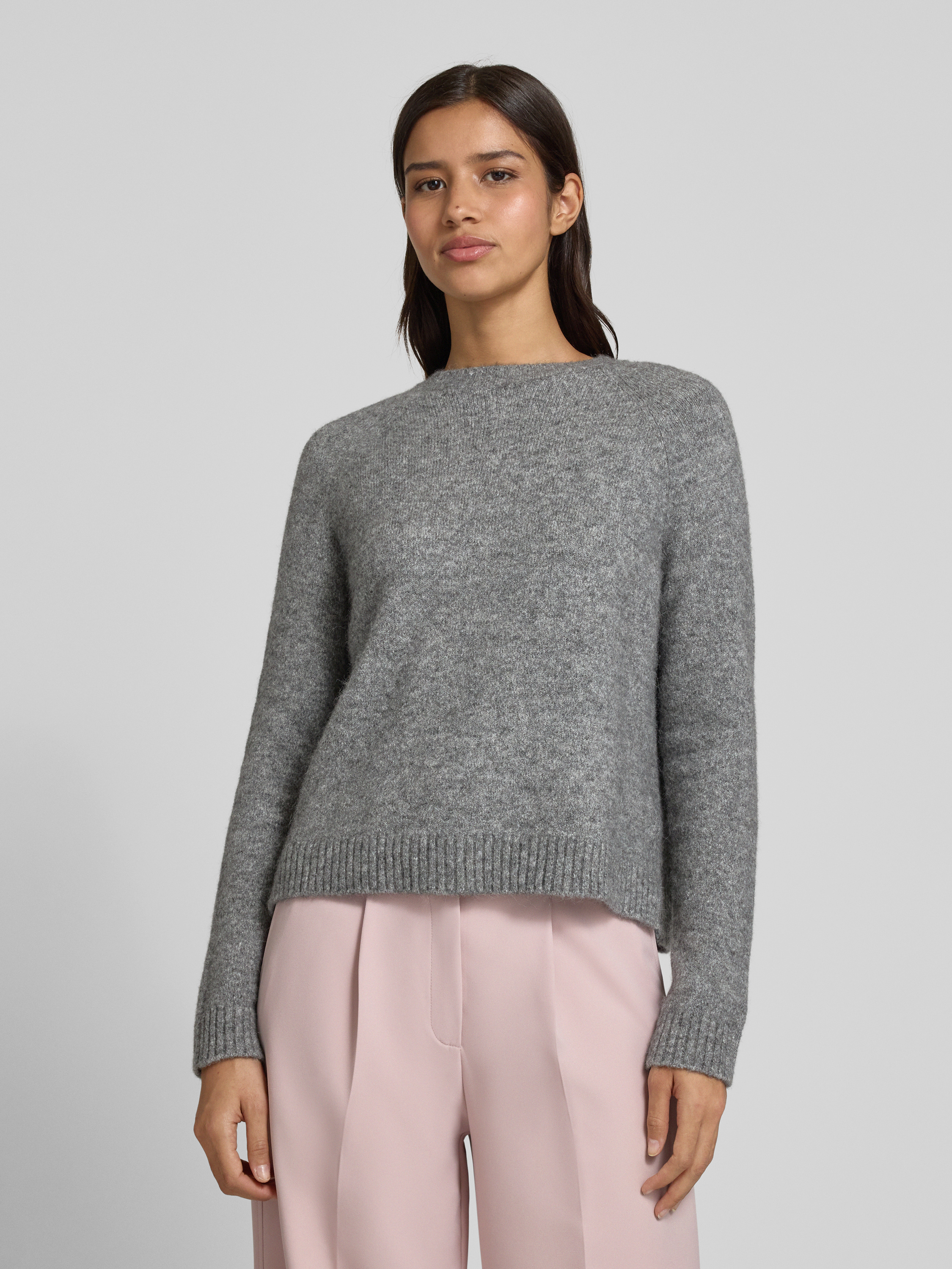 Sweter z dzianiny o kroju regular fit z mieszanki wełny z alpaki model ‘FEBISAN’ - jasnoszary melanż
