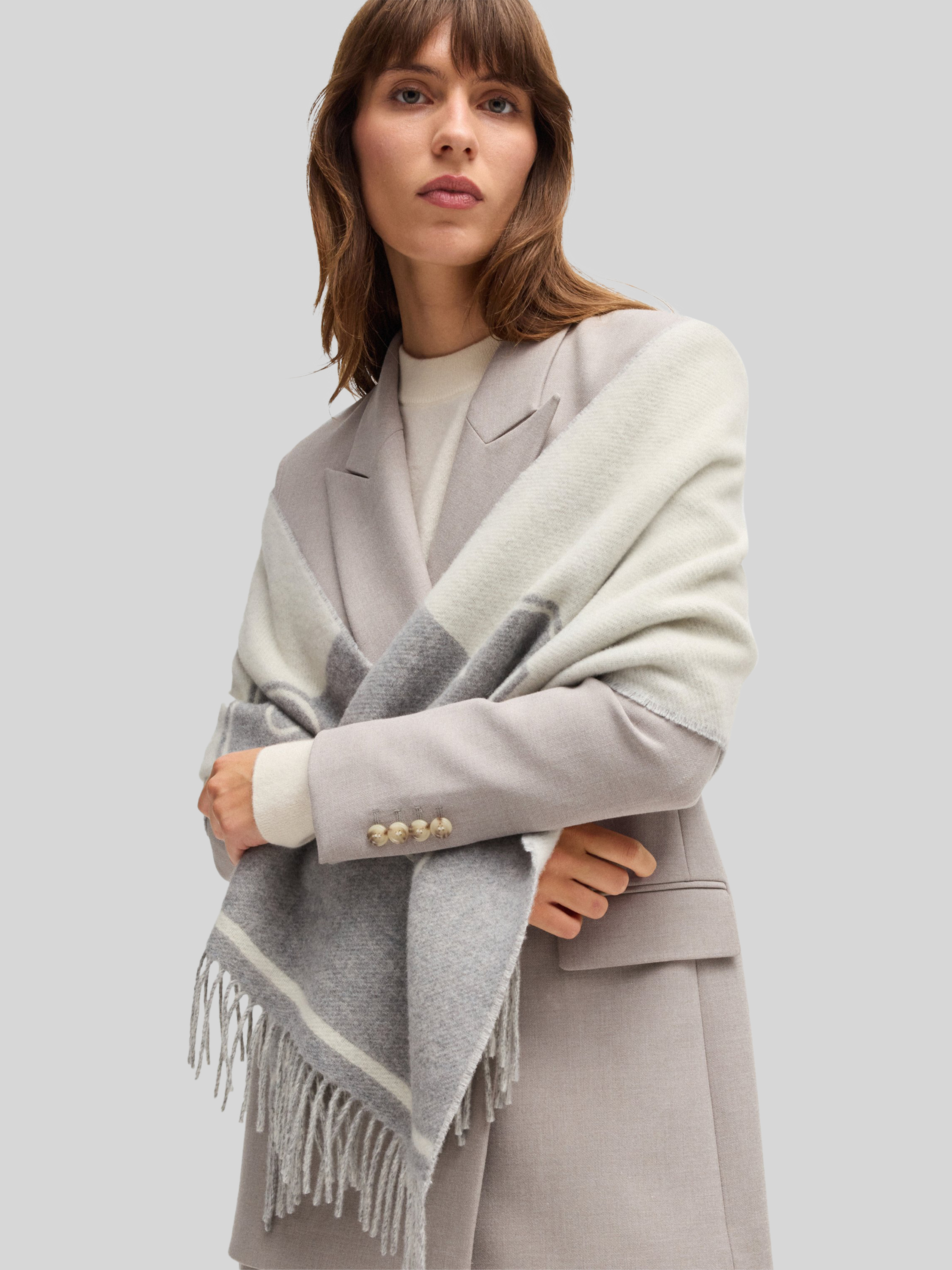 Szal z mieszanki wełny model ‘VIANNA’ - jasnoszary