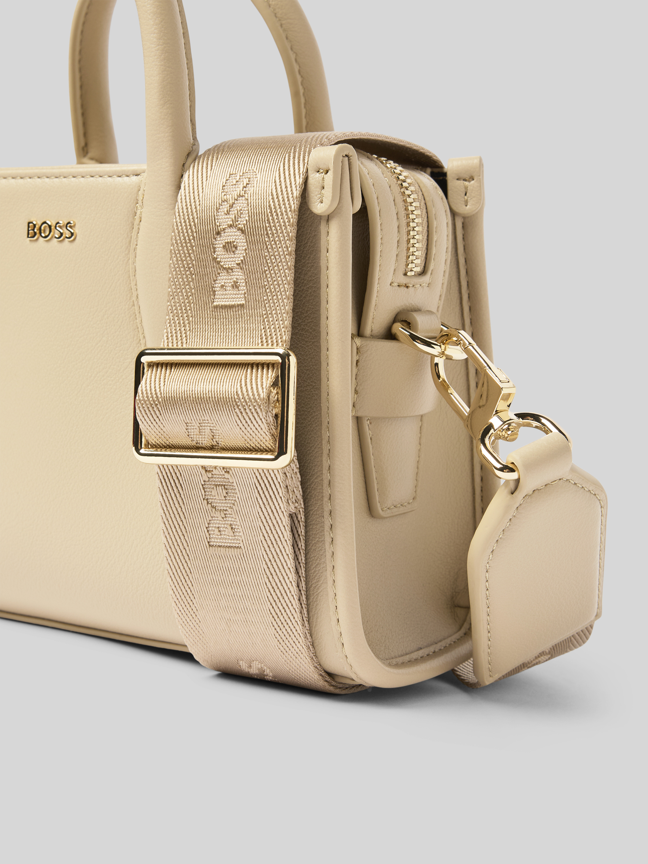 Torba tote mini z aplikacją z logo z metalu model ‘SANDY’ - szarobrązowy