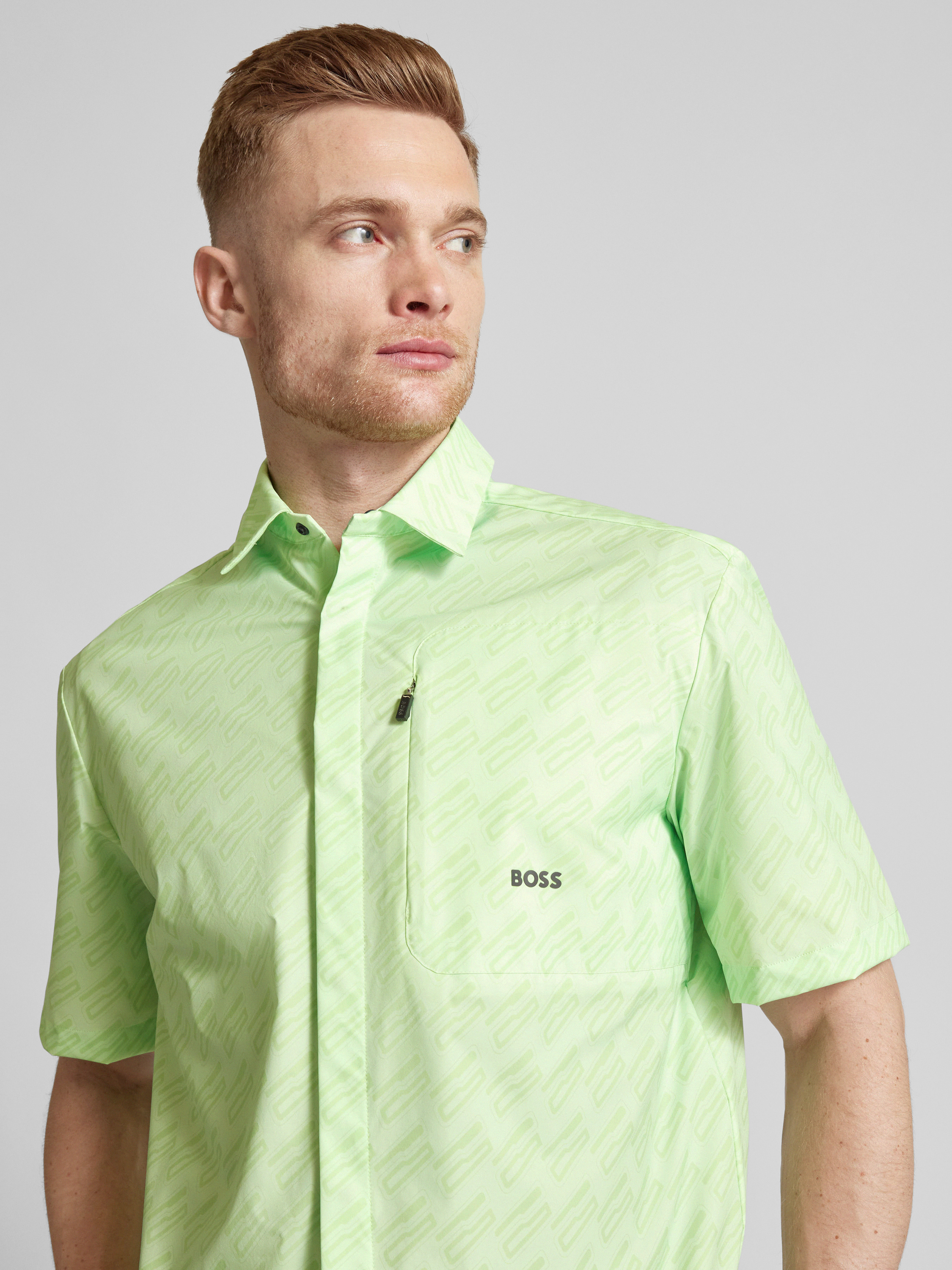 Koszula casualowa o kroju regular fit z nadrukiem na całej powierzchni model ‘Bechno’ - jasnozielony