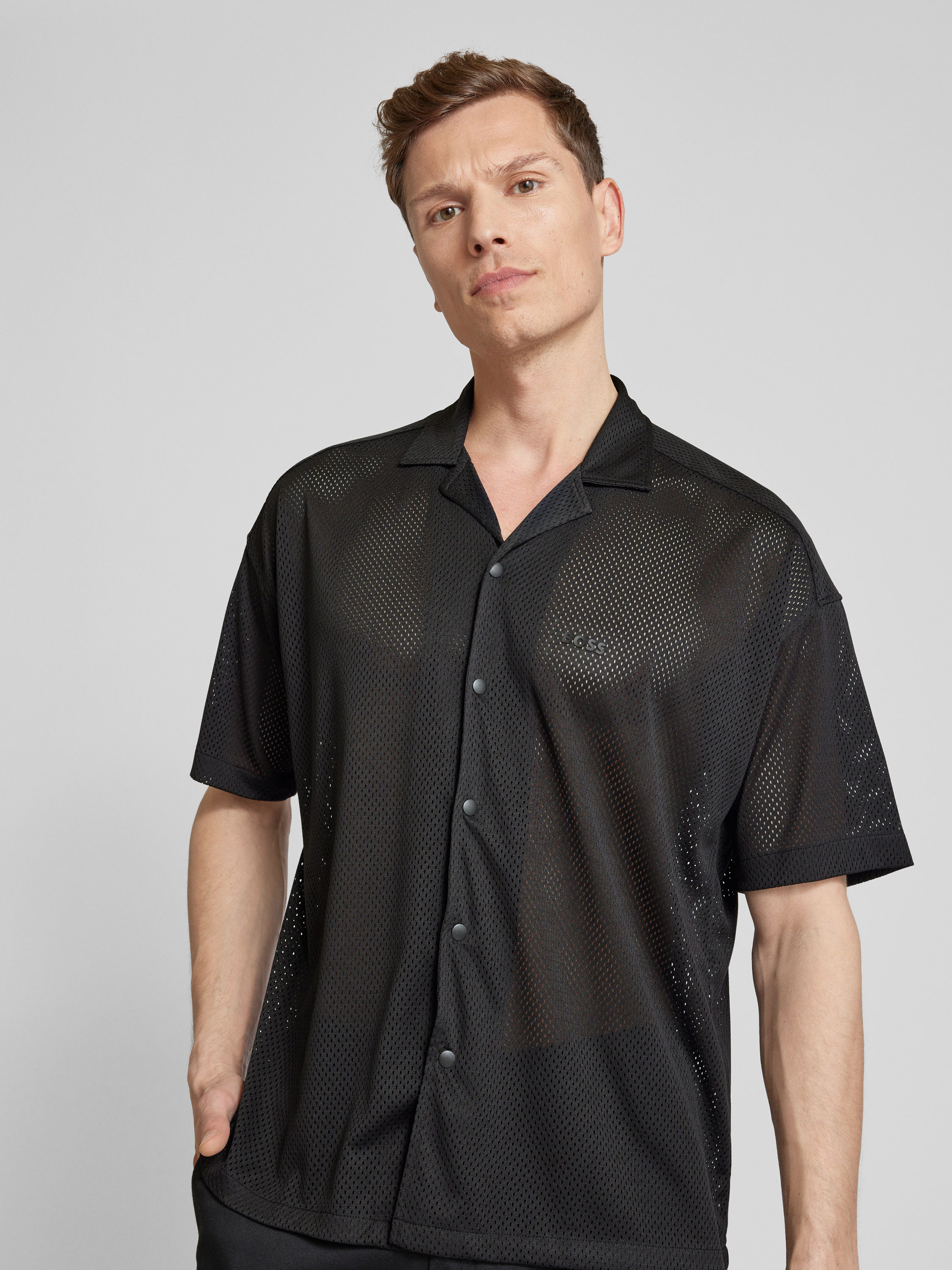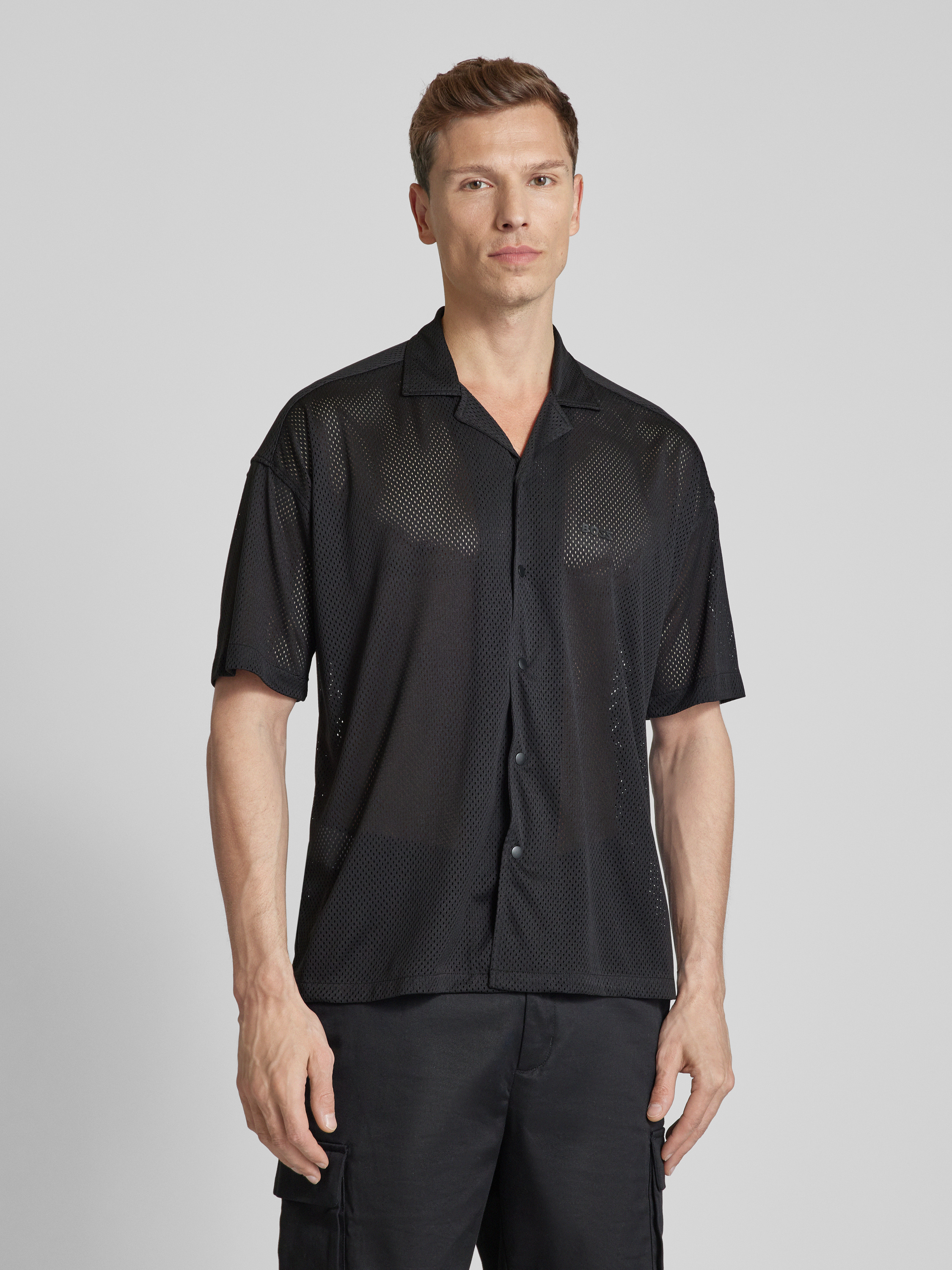 Koszula casualowa o kroju relaxed fit z kołnierzem z połami model ‘Balbero’ - czarny