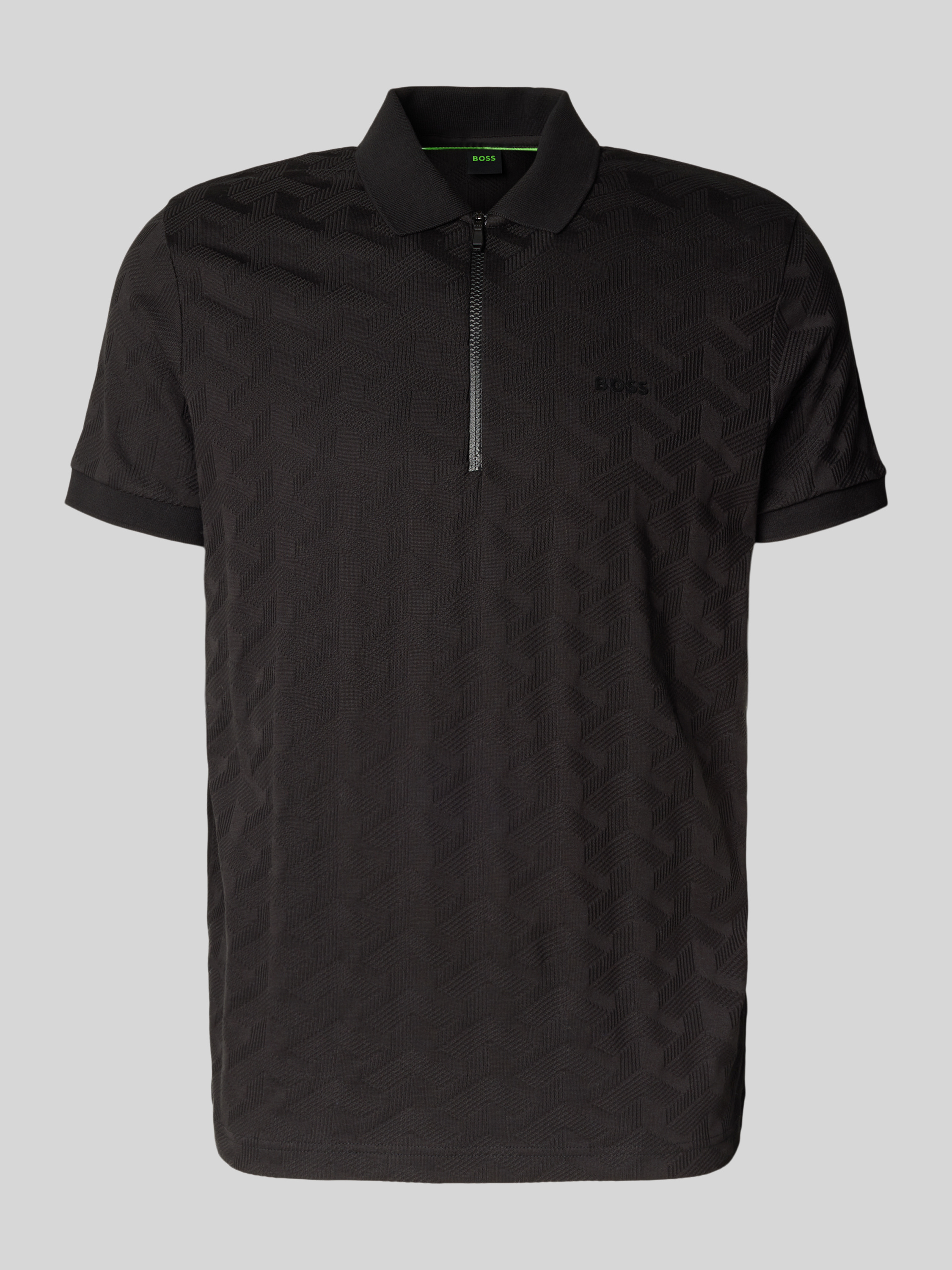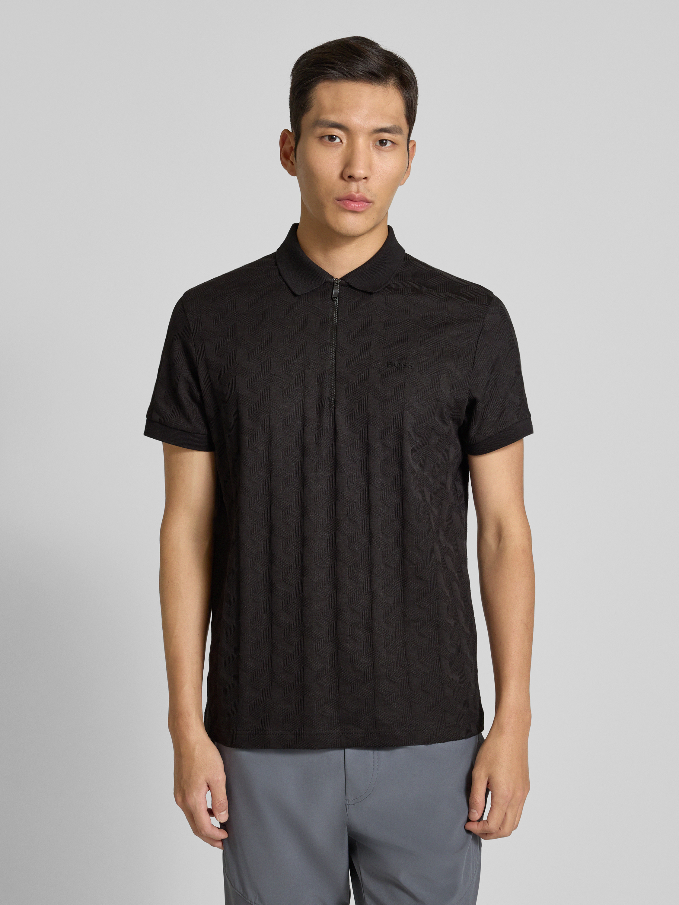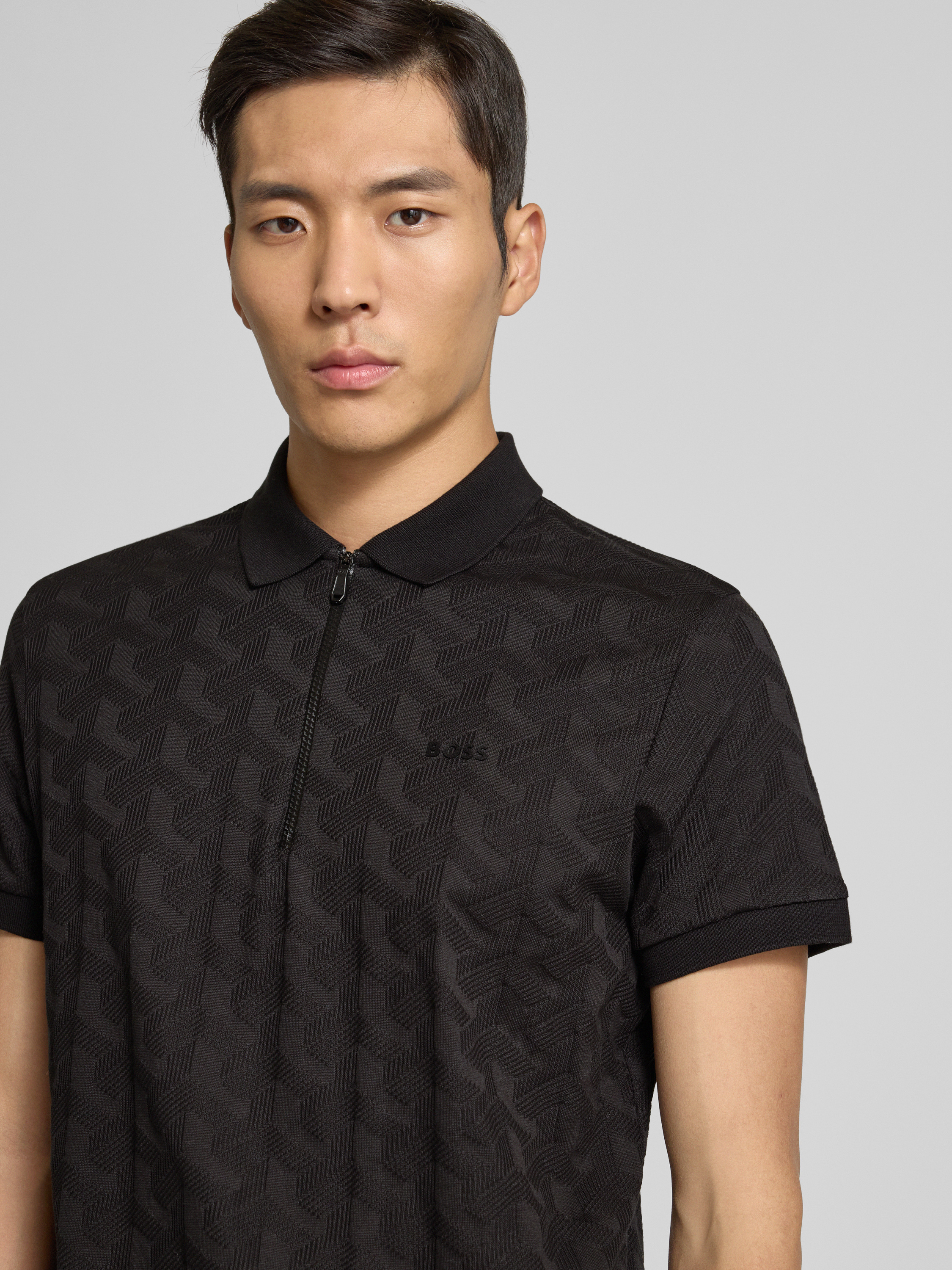 Koszulka polo kroju relaxed fit z fakturowanym wzorem model ‘MIRROR’ - czarny