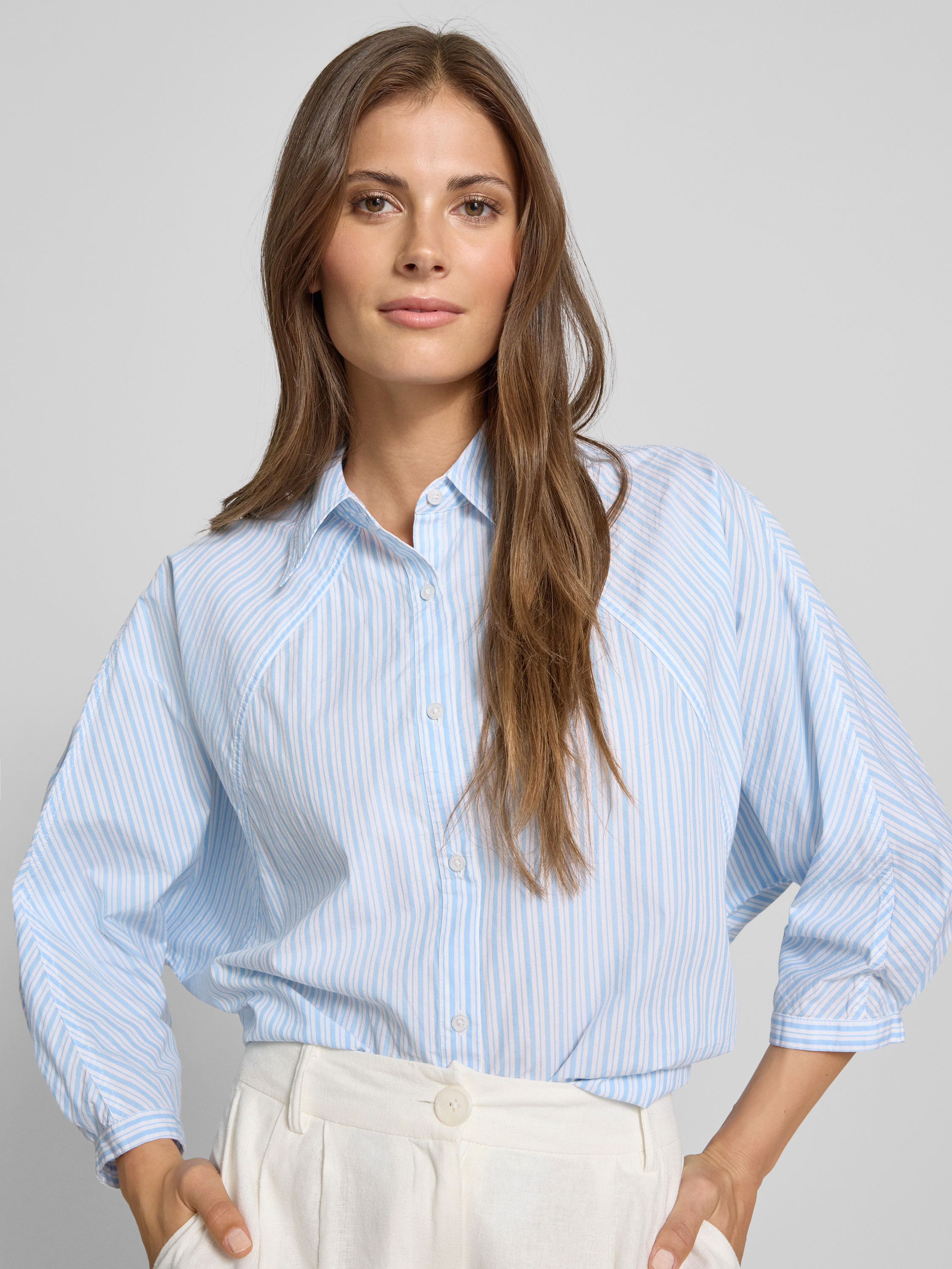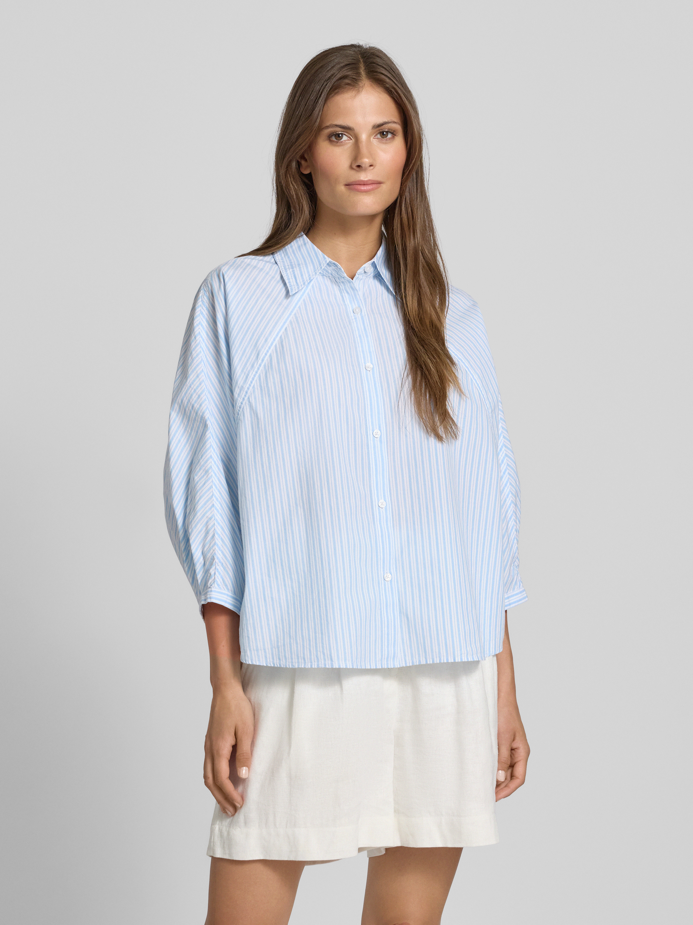 Bluzka koszulowa o pudełkowym kroju z czystej bawełny - jasnoniebieski